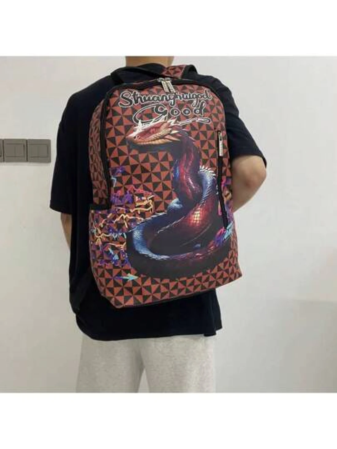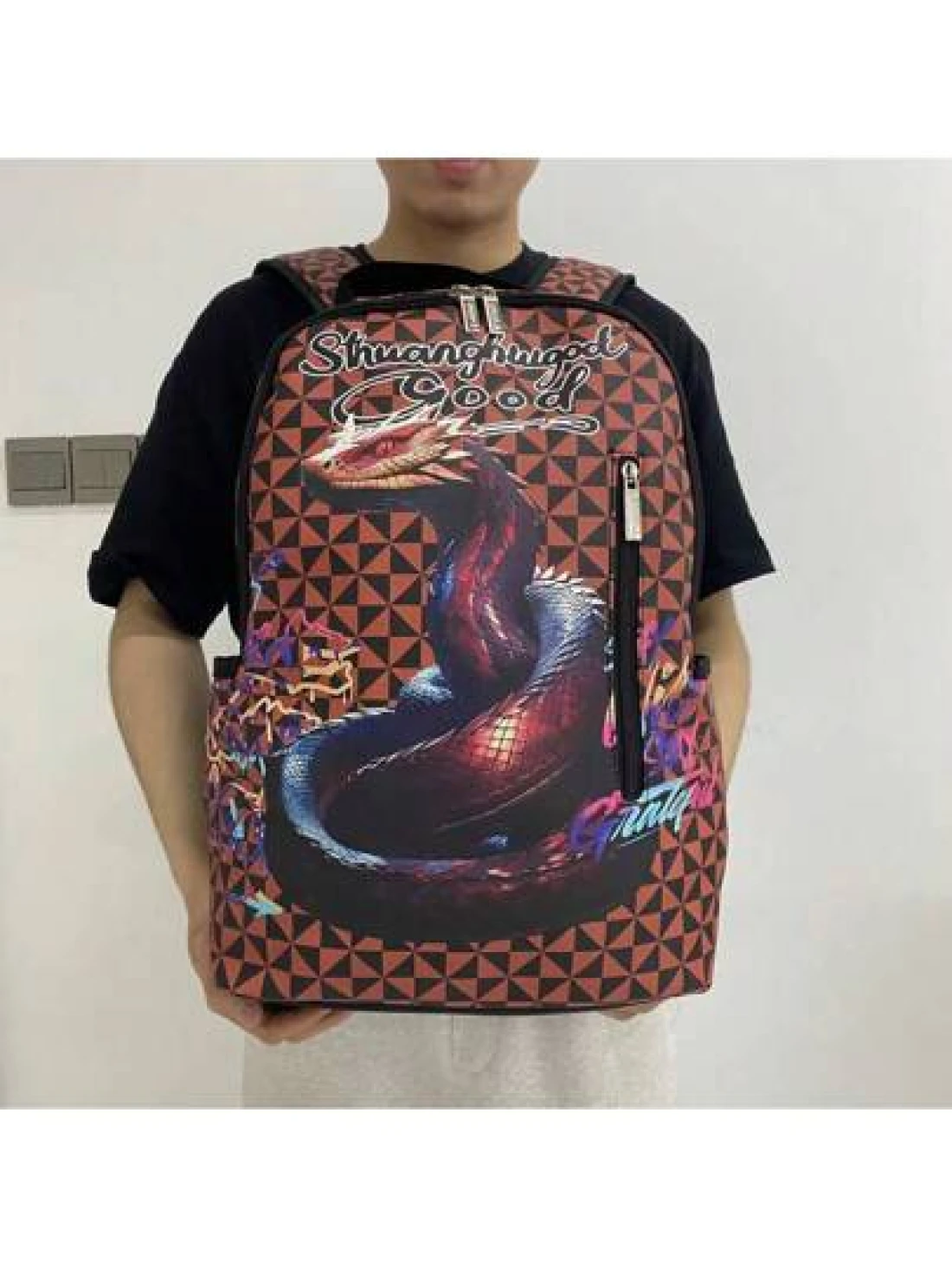 حقيبة ظهر رجالية ذات نمط جلد الثعبان، سعة كبيرة، تعتبر احتياجات عيد الحب والشتاء، حقيبة سفر سوداء، حقيبة احتياجات المناسبات والسفر للرجال، حقيبة طلاب وتخييم وسفر، حقيبة شاطئ ودفتر أعمال، هدية عطلة رياضية، حقيبة ظهر احتياجات السفر، حقيبة كبيرة لفصل الربيع والطبعات الرجعية