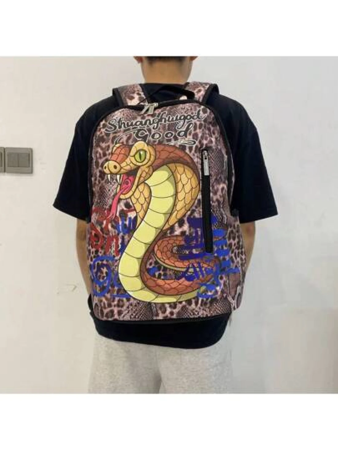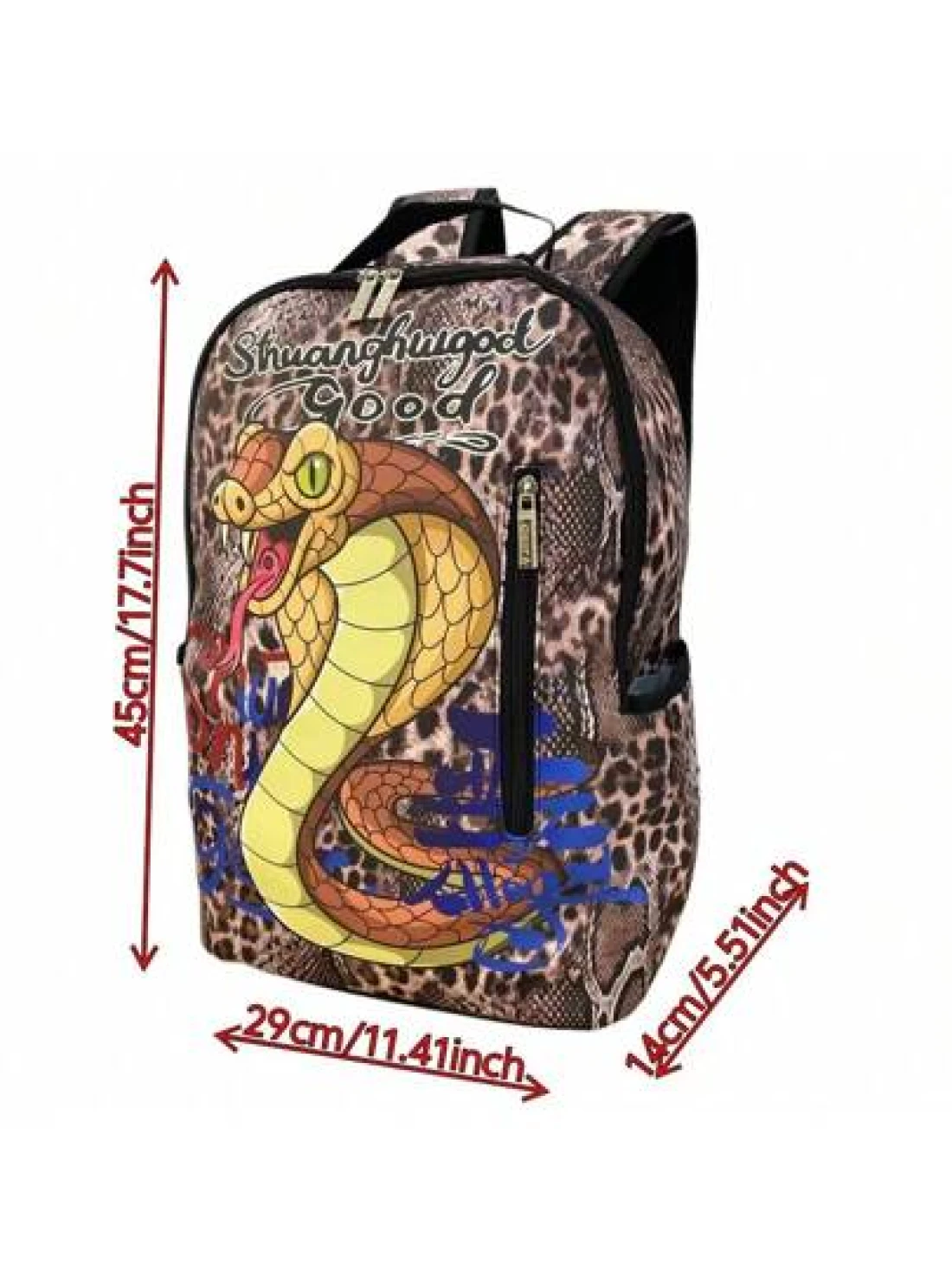Fashionable Snake Print Backpack Large Capacity With Pockets Unisex Essential For Valentine s Day Autumn Winter Travel And Holiday