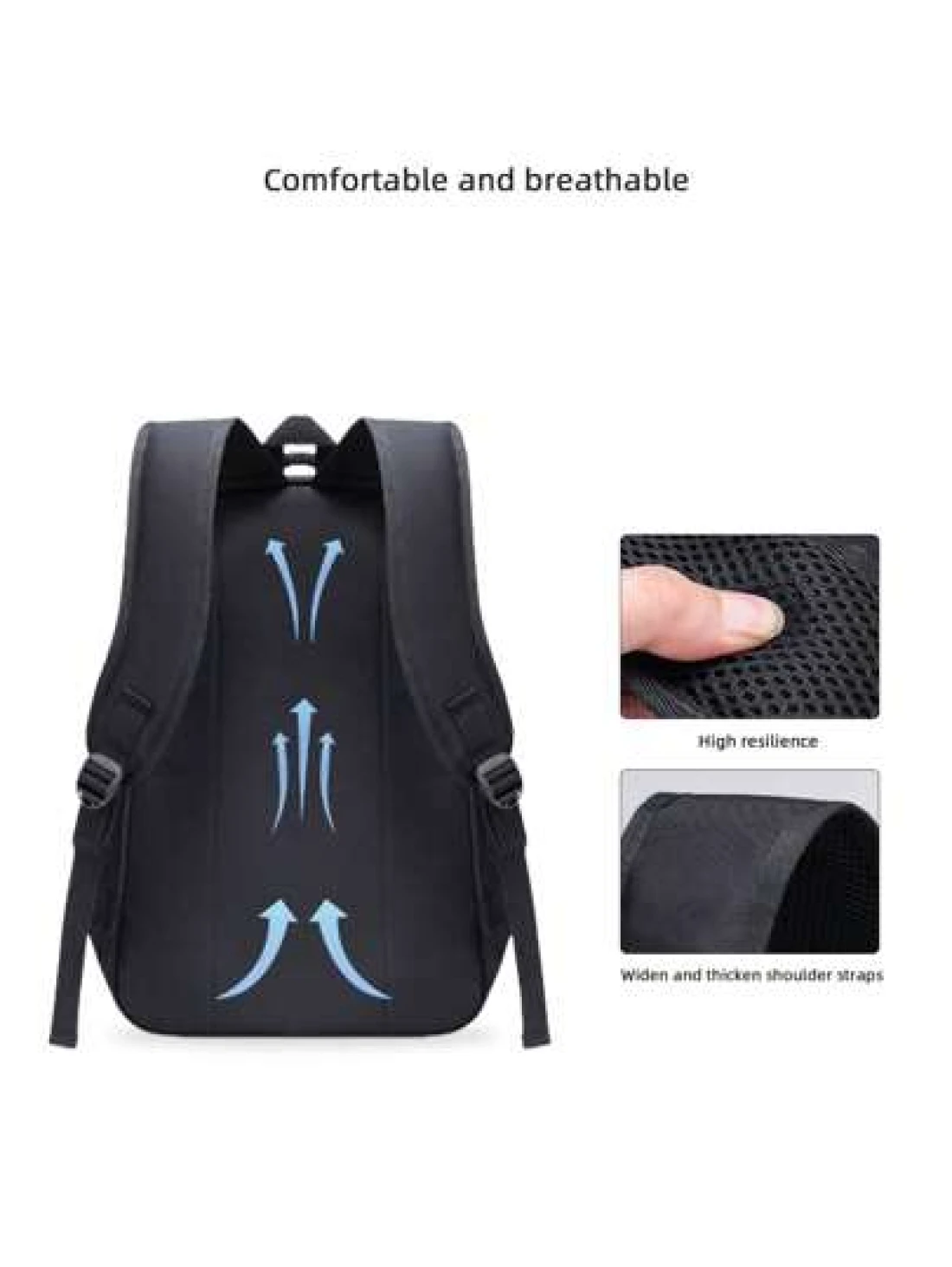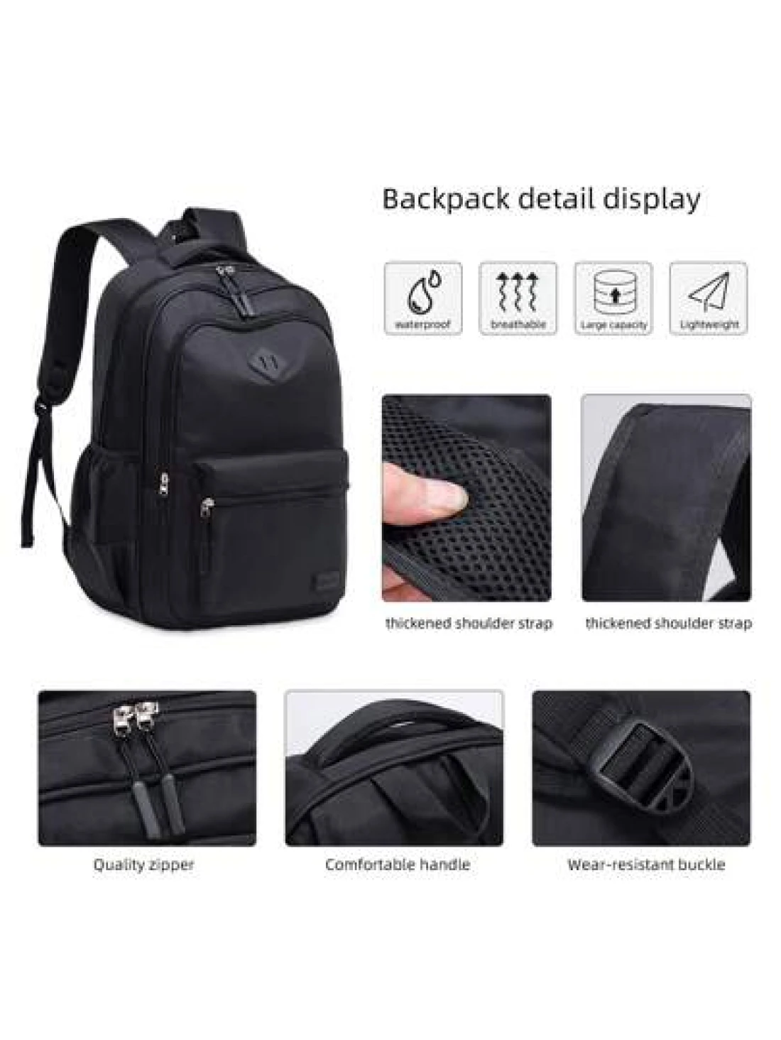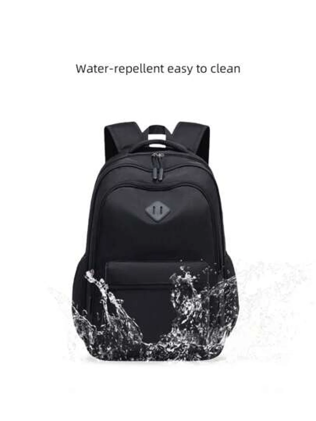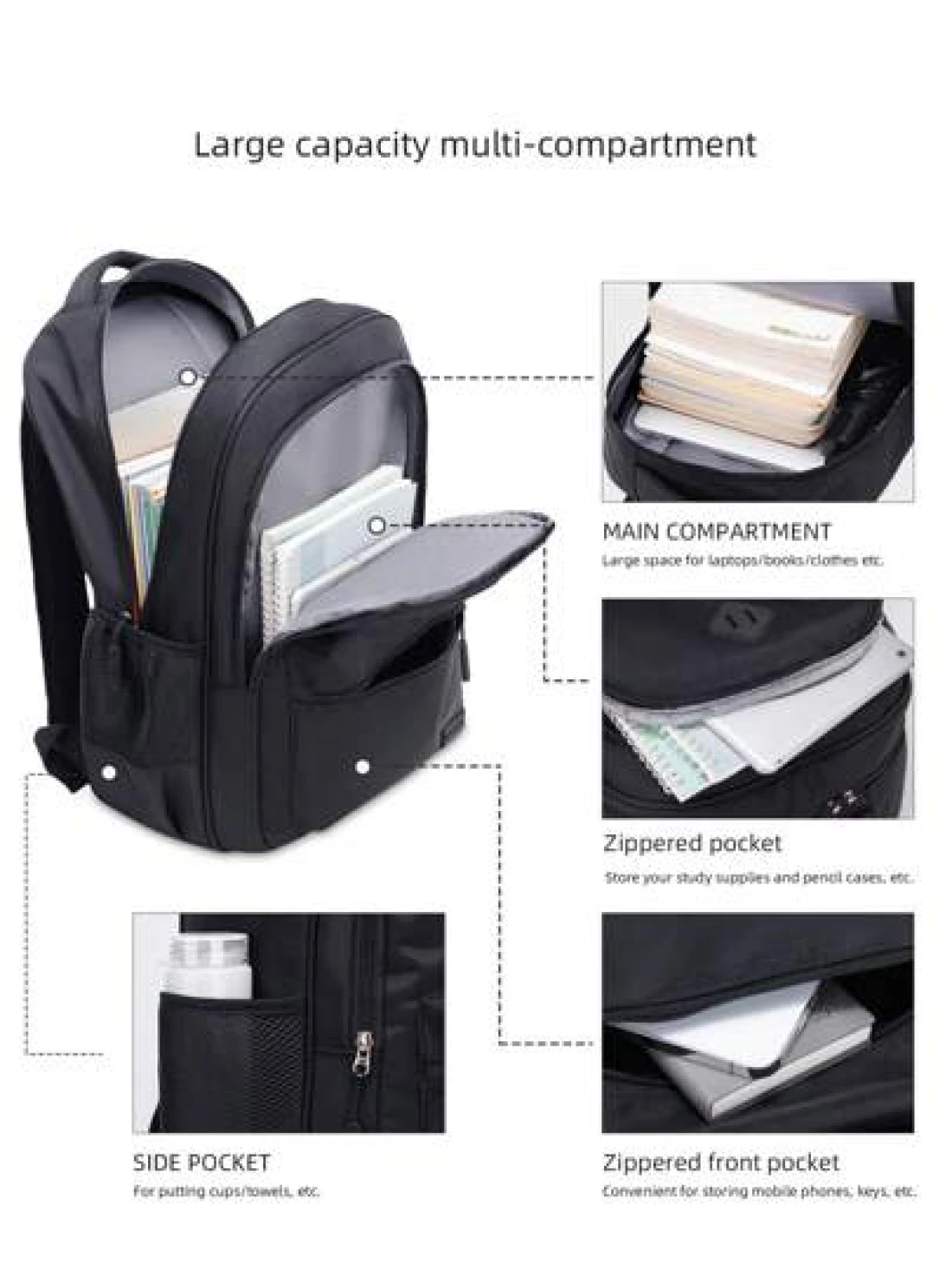 1pc Classic Black Backpack For Men Large Capacity Multi Layer Design Adjustable Shoulder Strap Polyester Lining Zipper Closure Side Water Bottle Holder Suitable For School And Travel Casual Style Back