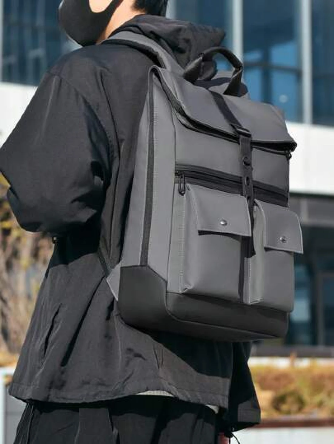 peach tree Large Capacity Business Backpack Travel Backpack School Backpack Laptop Backpack PU Leather Streamlined Fashion Suitable For Back To School And Travel Black Outdoor Multi Function Leisure B