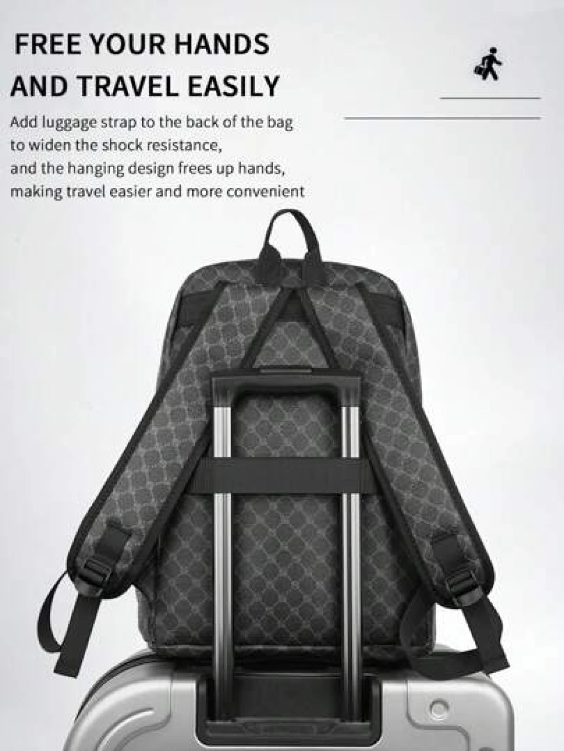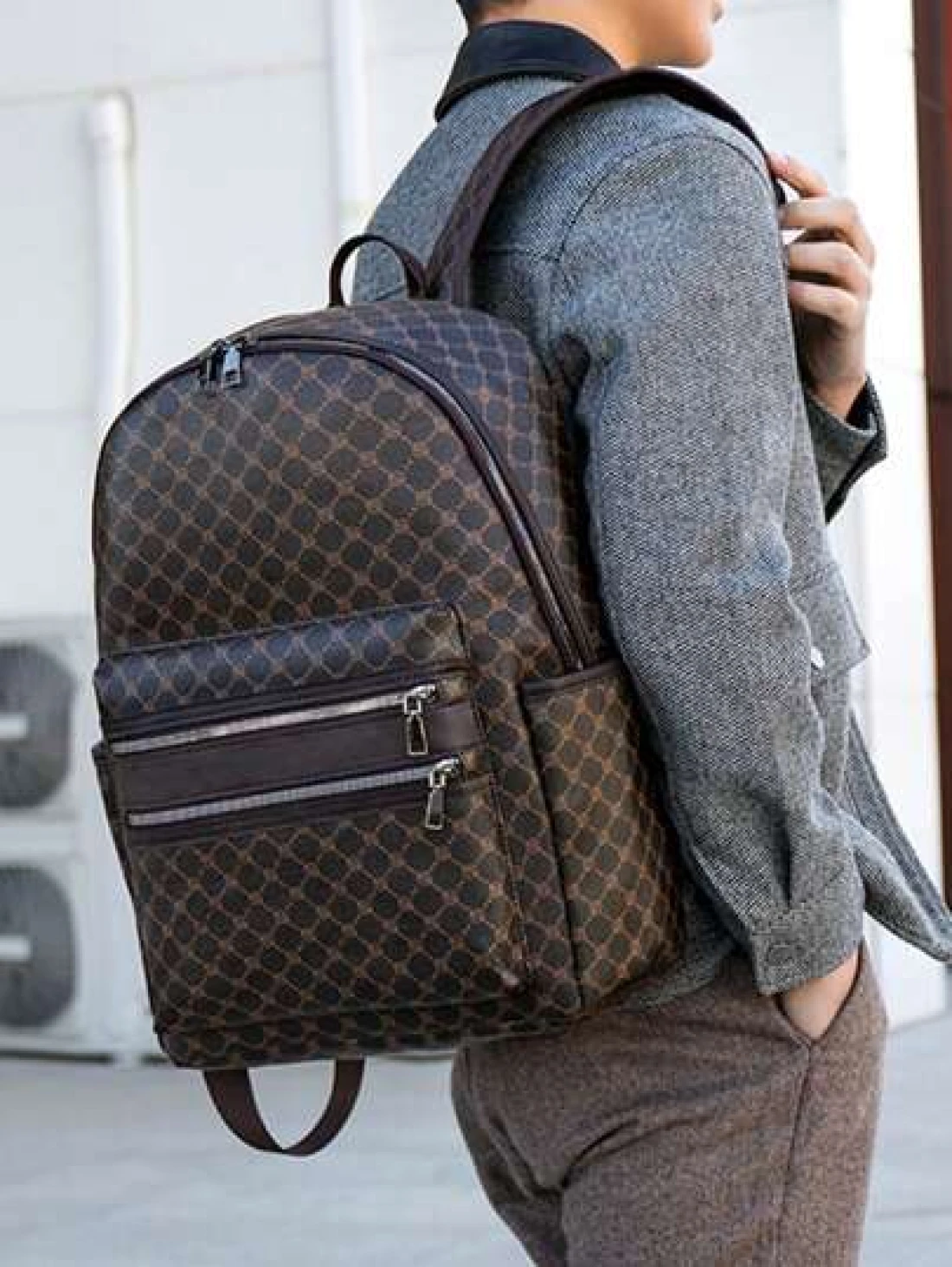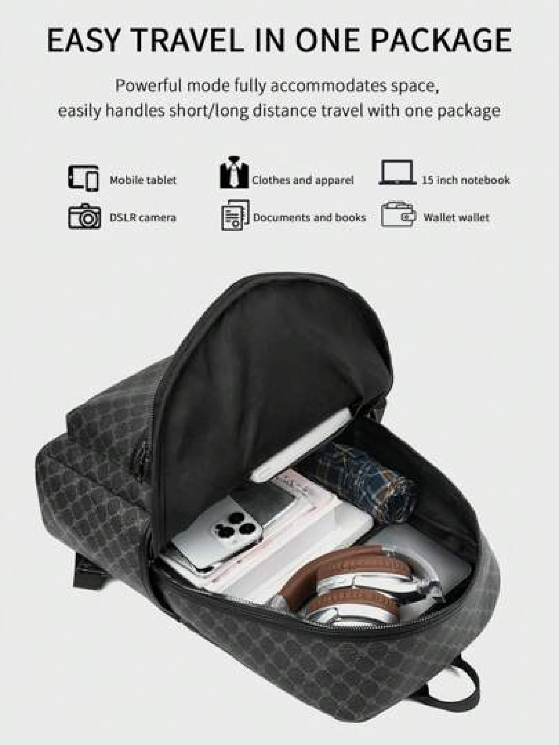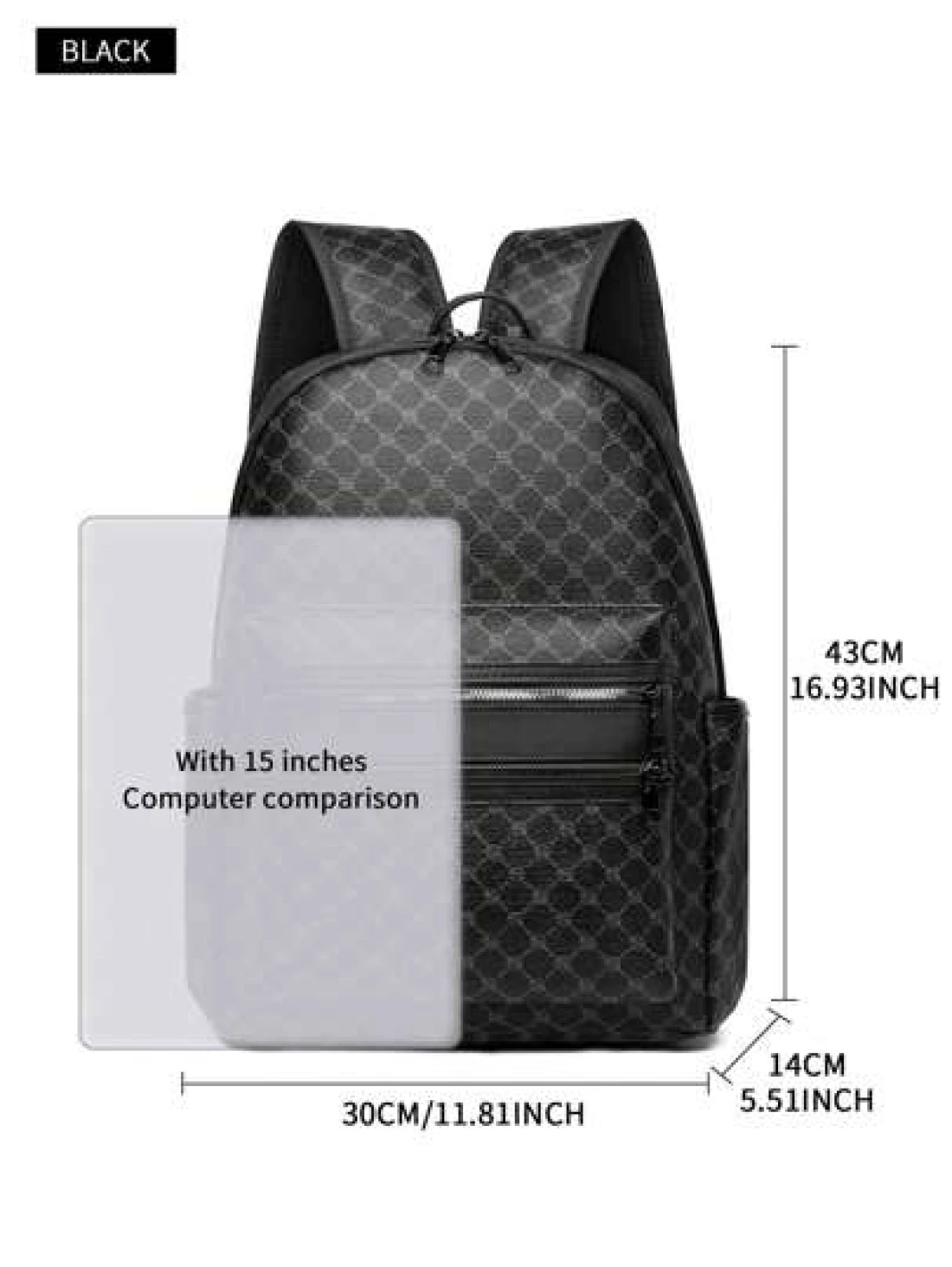 Large Capacity Printed Retro Backpack Unisex Fashion PU Leather Business Laptop College School Bag