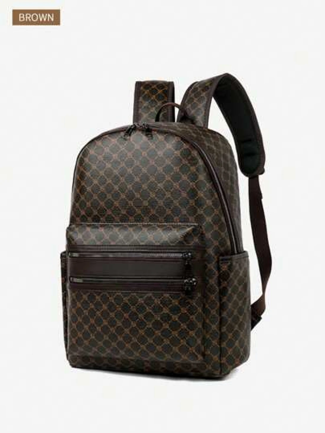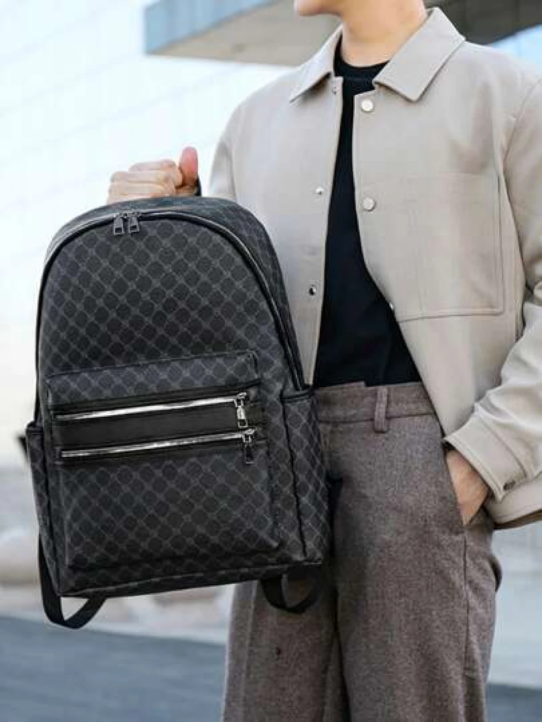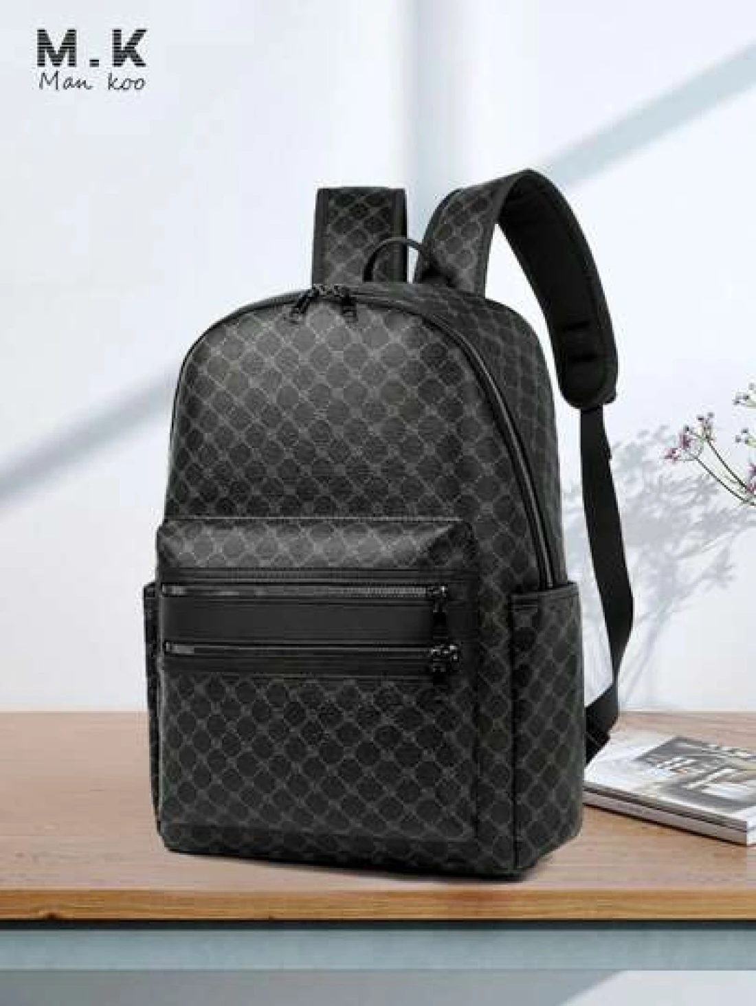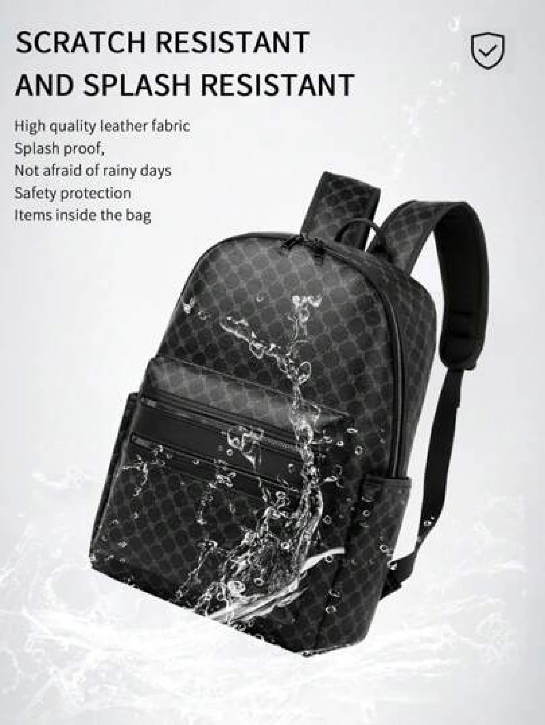 Large Capacity Printed Retro Backpack Unisex Fashion PU Leather Business Laptop College School Bag