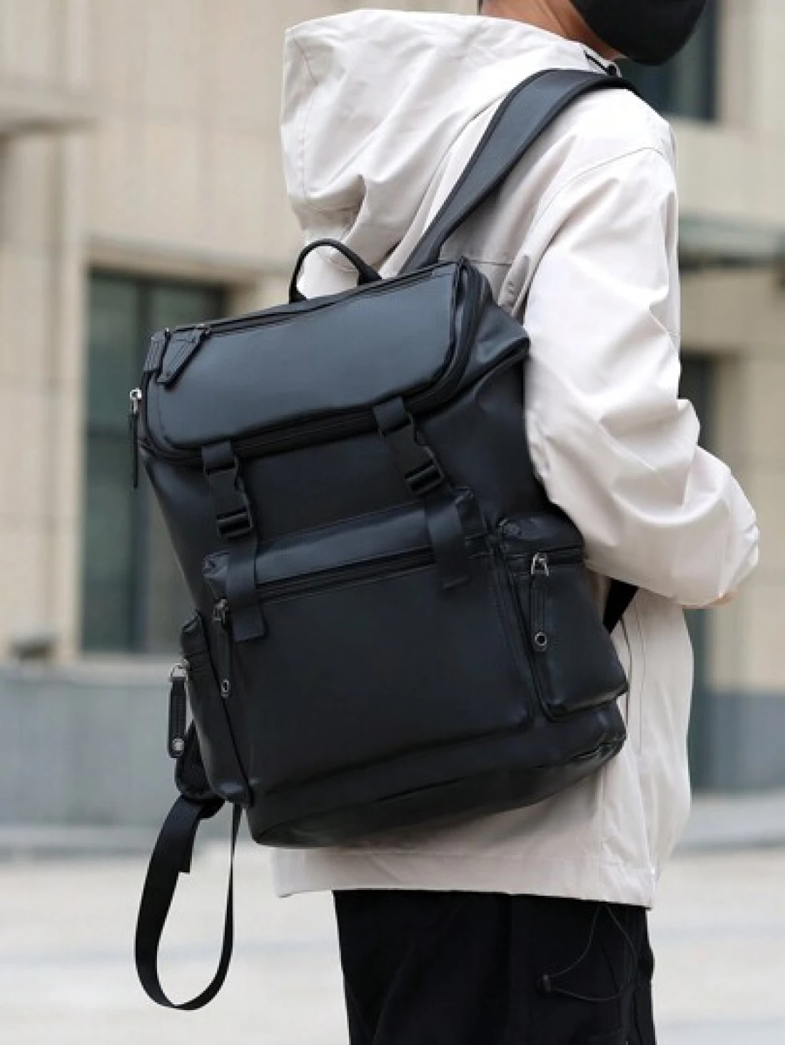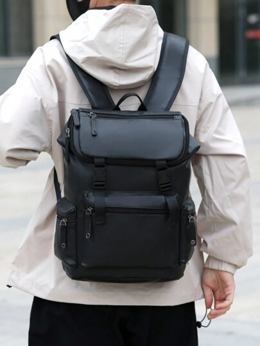 Large Capacity Pu Commuting Travel Backpack Rucksack College Bag School Bag Multi Functional British Style Flap Backpack Retro Plaid Print Computer Bag Drawstring Flap Pockets Backpack Outdoor Vacatio