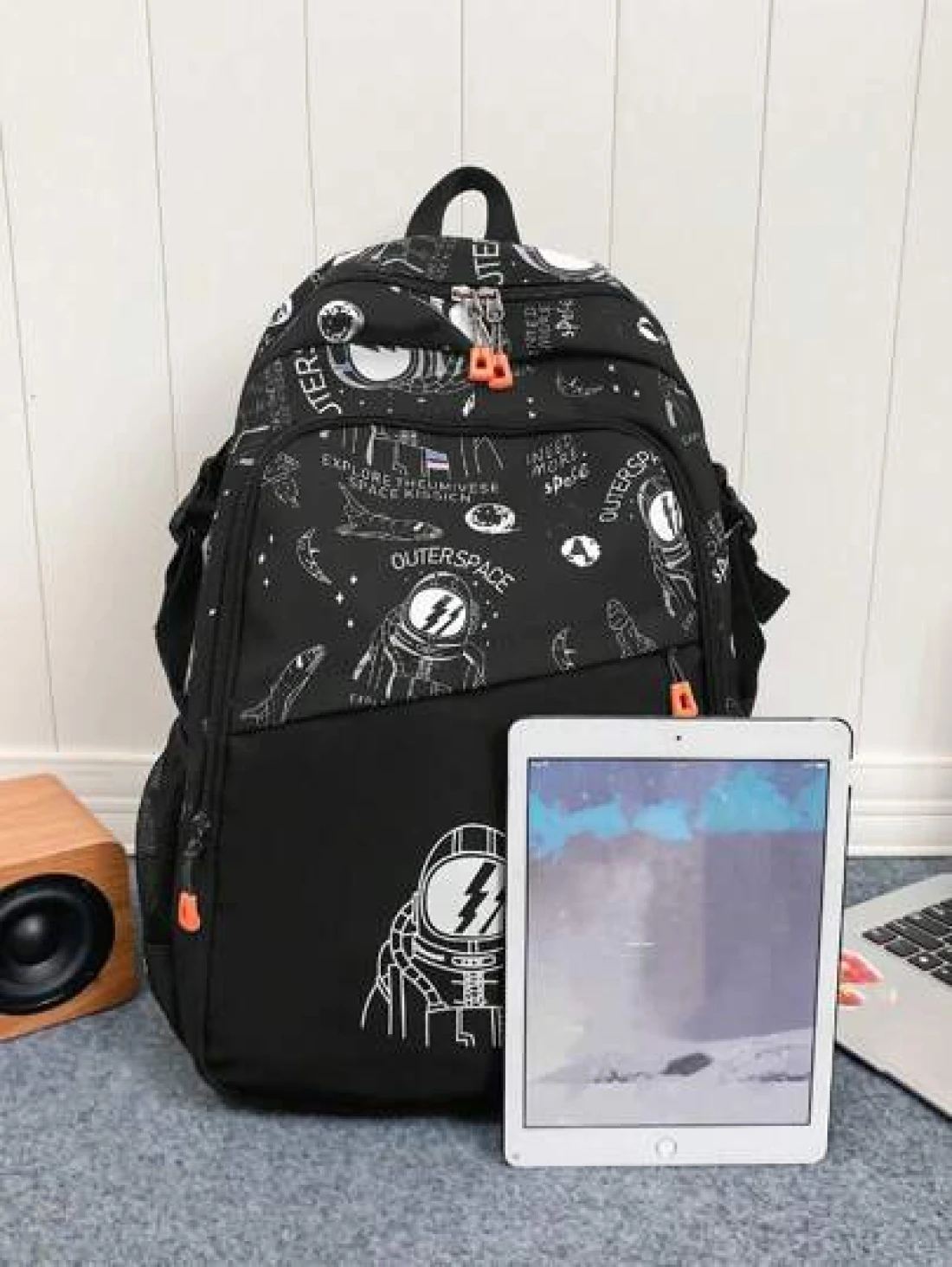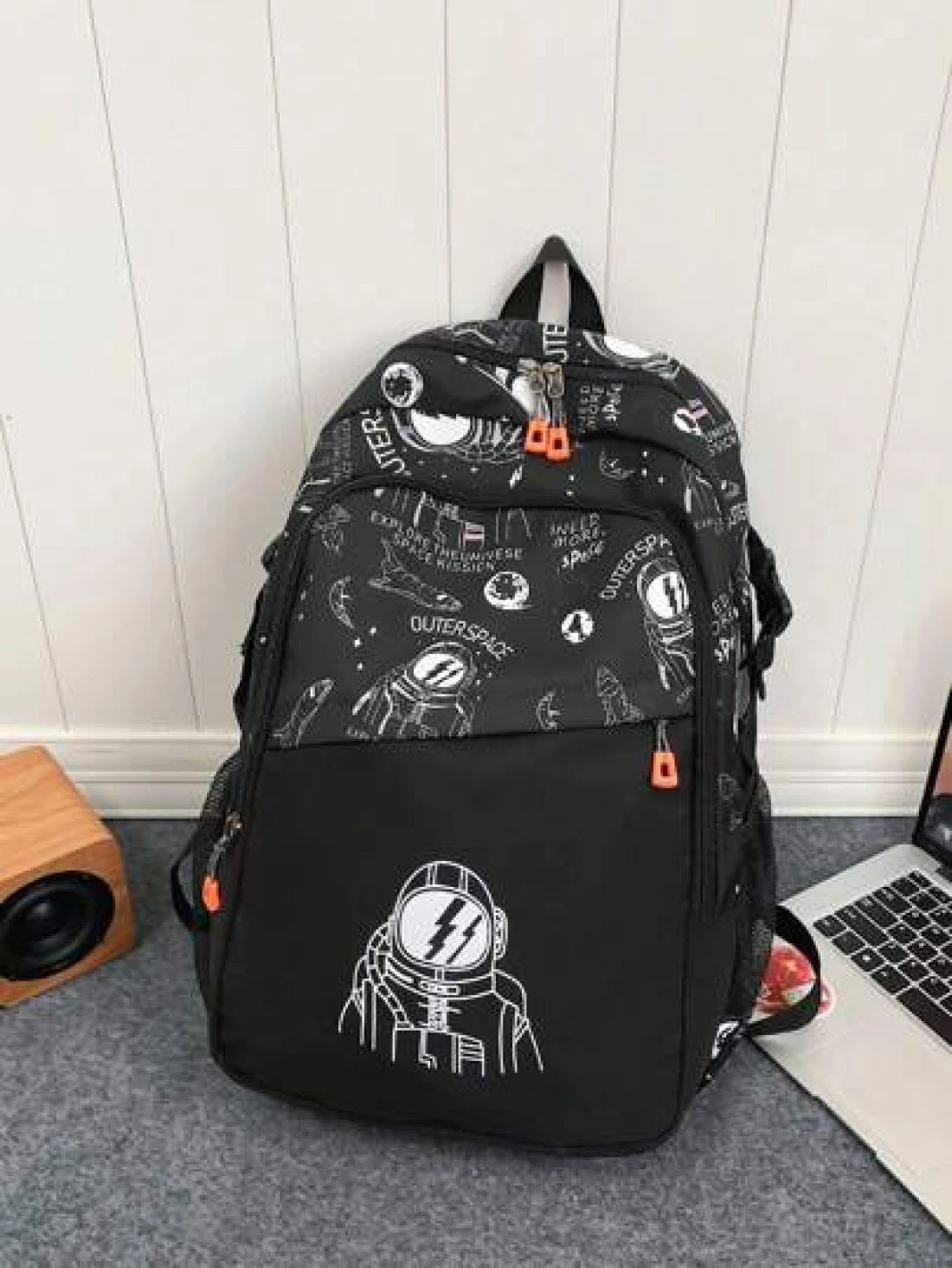 1 قطعة حقيبة ظهر منسوجة بطبعة الفضاء والرسائل ، سحاب إغلاق ، حقيبة كاجوال عصرية للمدرسة، تناسب الجنسين