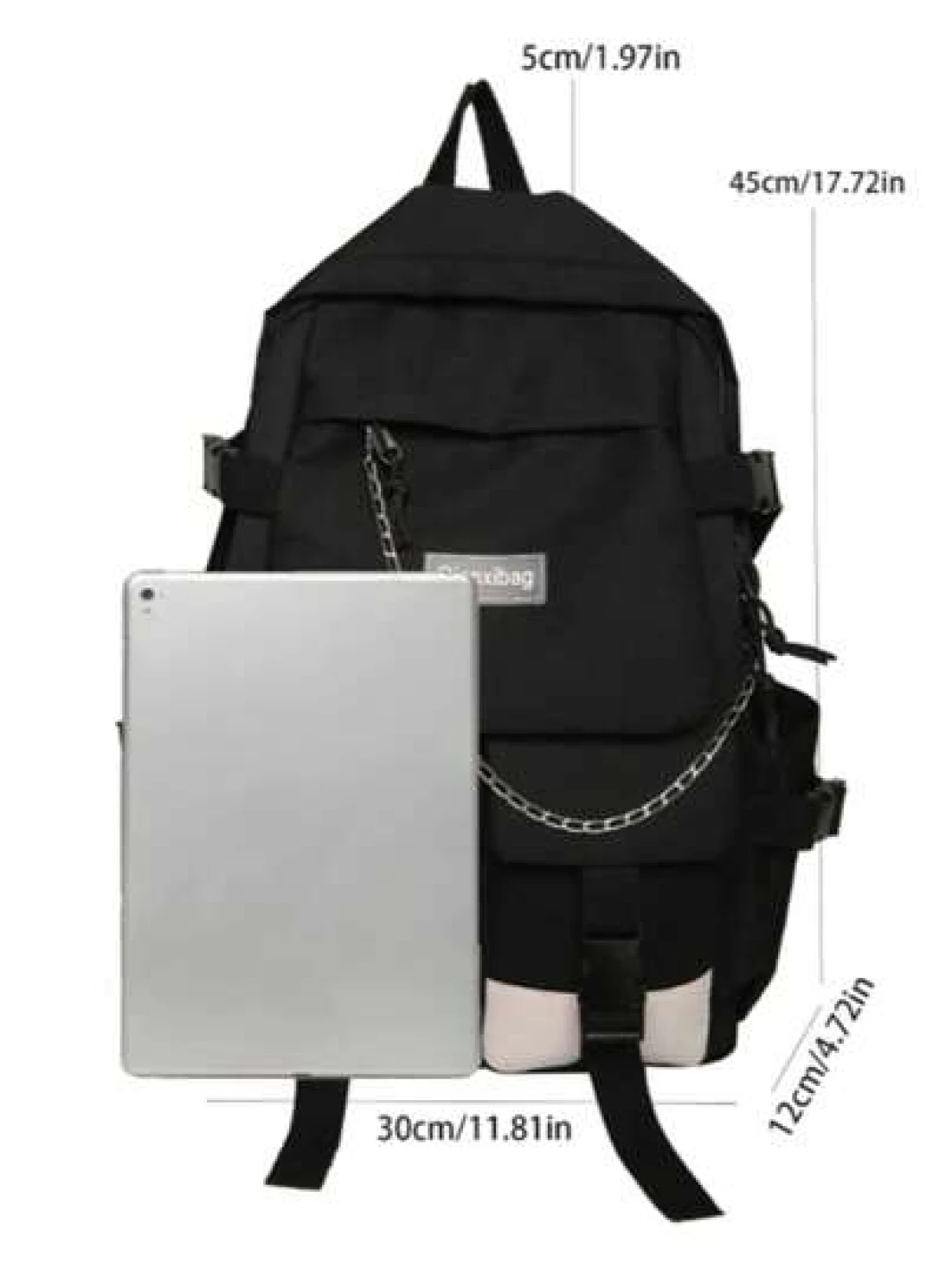 حقيبة ظهر كاجوال وعصرية للرجال مزينة بسلسلة وجيبين