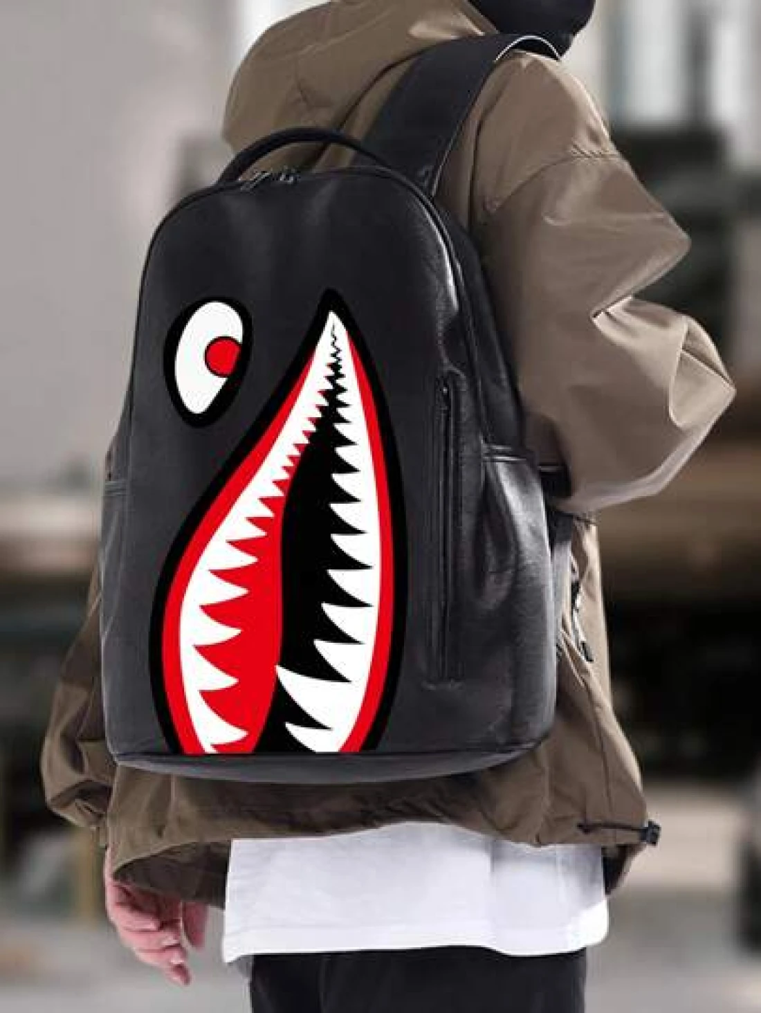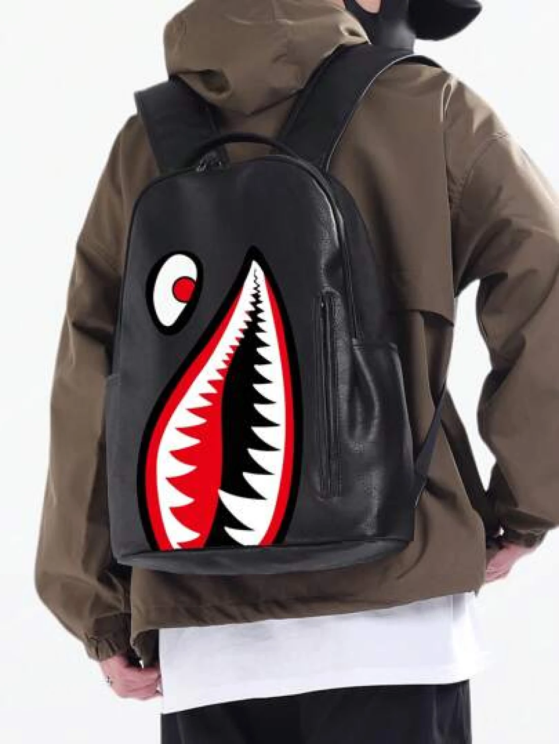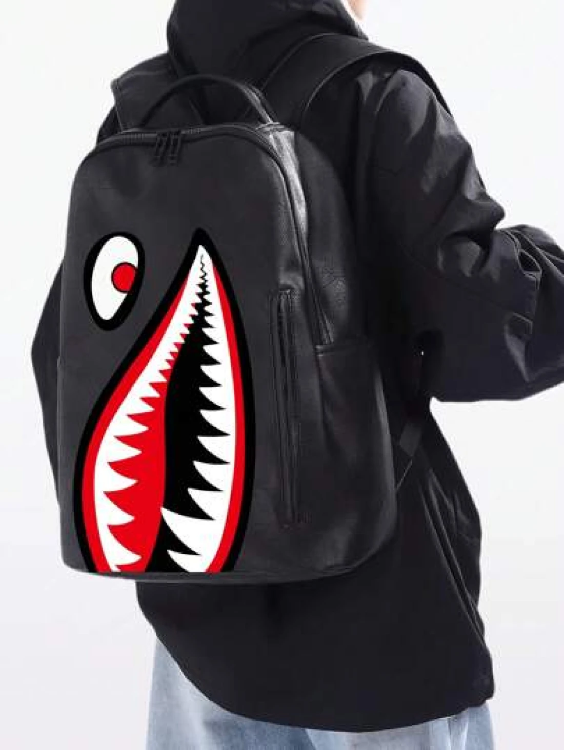peach tree Waterproof Large Capacity Shark Print Backpack Suitable For School Laptop Travel Casual Business Fitness Outdoor Hiking Multi Function Fashion Gift For Men Boyfriend Vintage