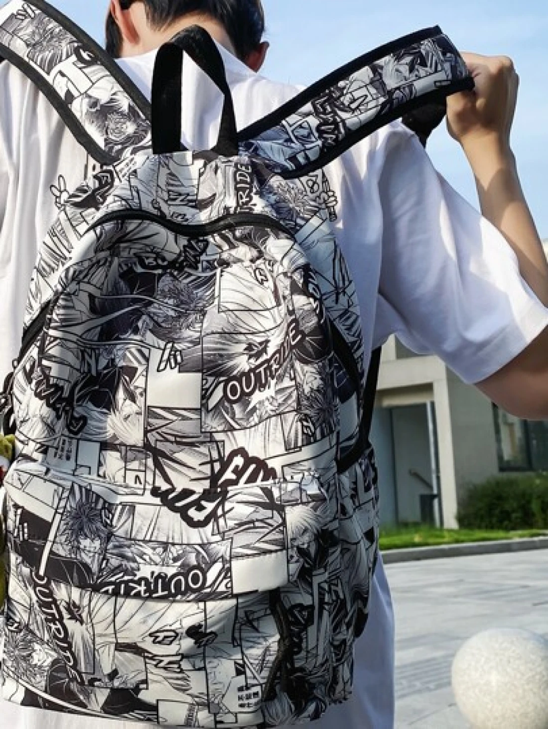 MINGHONG حقيبة ظهر نايلون جرافيتي ذات سعة كبيرة للطلاب، حقيبة ظهر للسفر والأعمال والأوقات الحرة، بناموذج الرسائل
