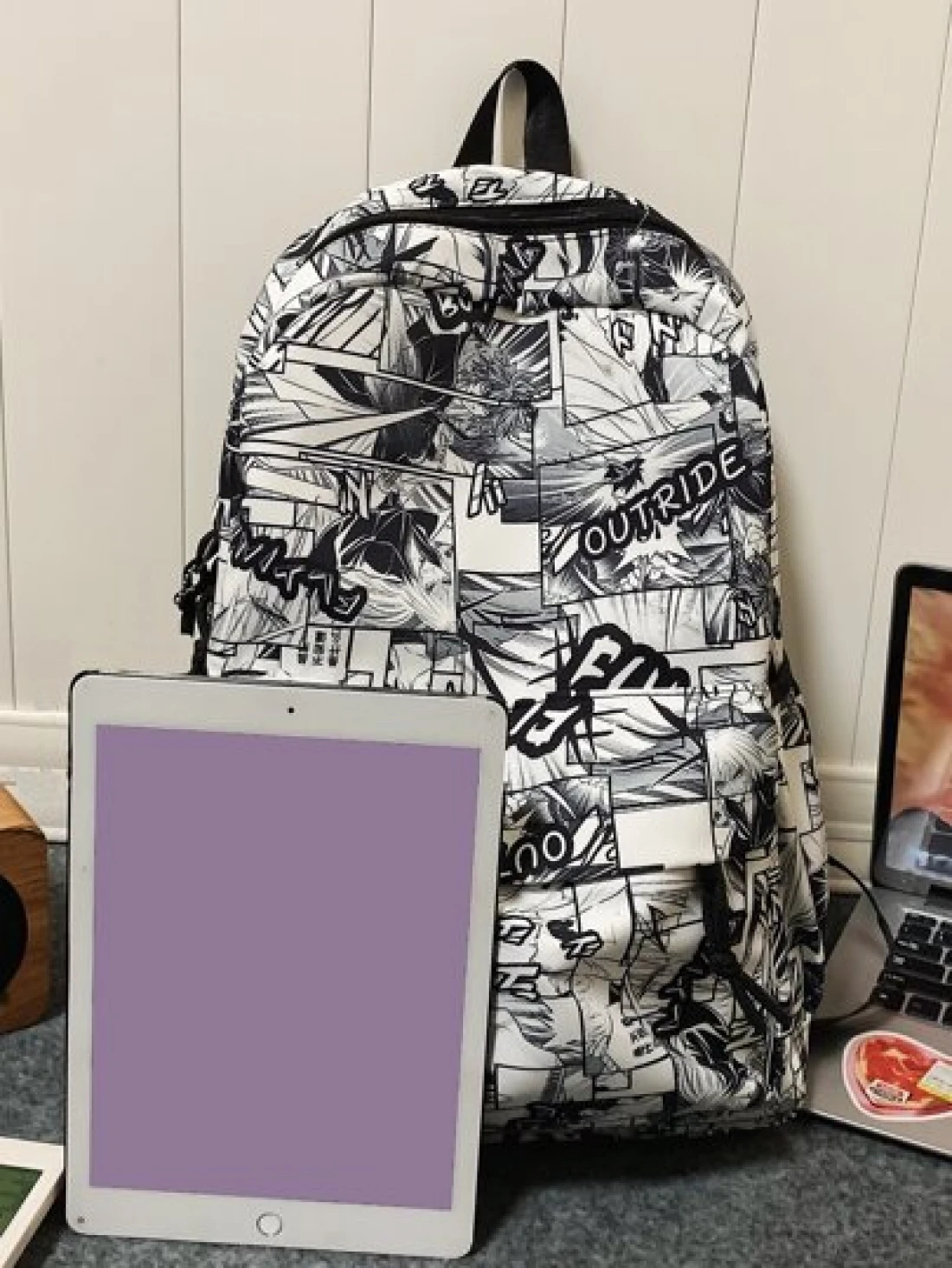 MINGHONG حقيبة ظهر نايلون جرافيتي ذات سعة كبيرة للطلاب، حقيبة ظهر للسفر والأعمال والأوقات الحرة، بناموذج الرسائل، حقيبة جامعية للرجال، يناسب طلاب السنة الأولى، متعددة الوظائف لغرفة السكن، ذات عنصر قرش غير رسمي، هدايا عيد الميلاد والعطلات الضرورية للتخييم والسفر والعودة إلى المدرسة، حقيبة كمبيوتر محمول، ذات طبيعة رياضية