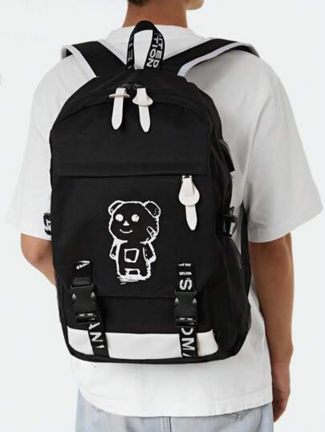 15 Inch Men Cartoon Bear Graphic School Bag School Bags Schoolbag School Backpack For School Daypack Laptop Bag Computer Bag Book Bag Rucksack Shoulder Bag Travel Bag Sport Bag College Bag Business Ou