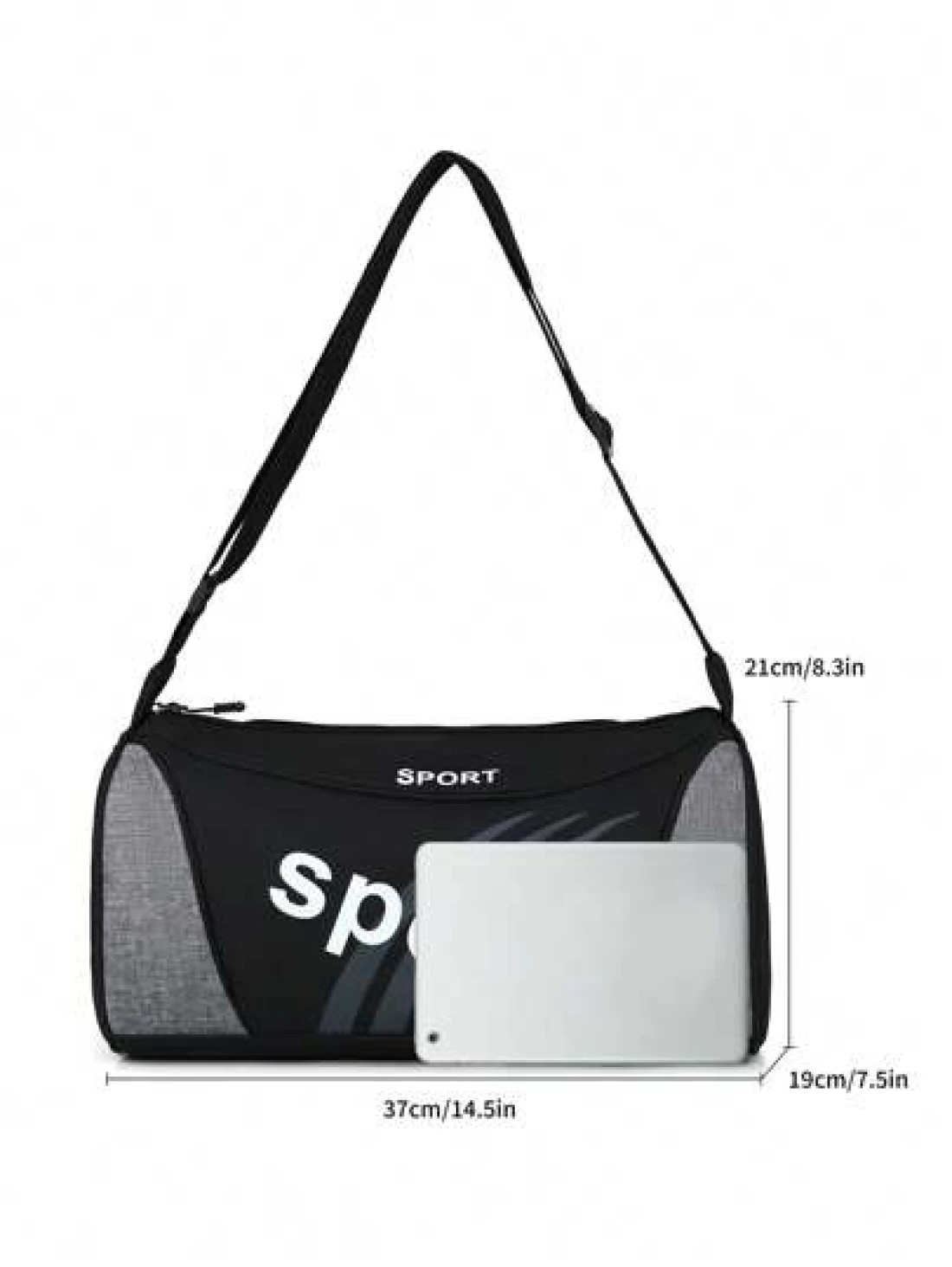 Casual Color Block Cylindrical Sports Sling Bag Leisure Letter Graphic Cylindrical Sports Gym Bag Portable Zipper Lightweight Travel Handbag Fashionable For Daily Use Large Capacity Luggage Bag Workou