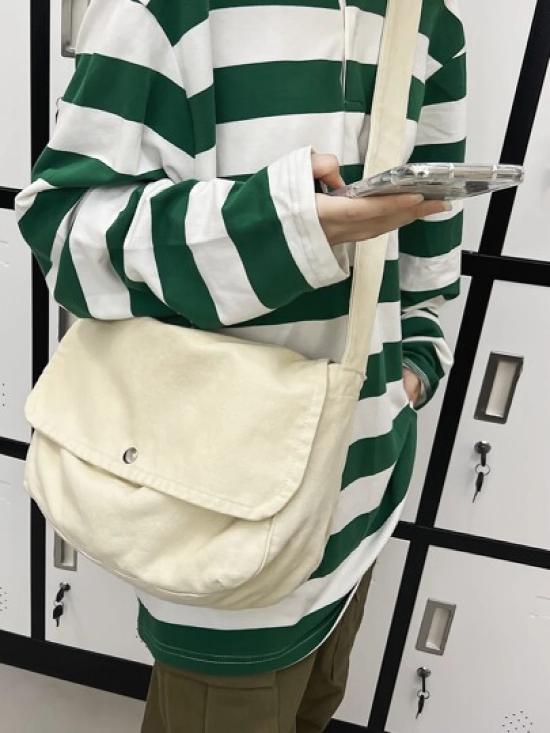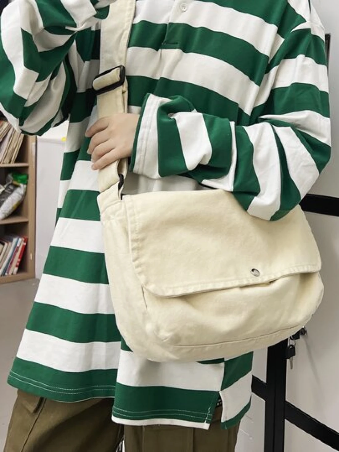 peach tree 1 قطعة حقيبة رسول كانفاس أحادي اللون، حقيبة كتف عبر الجسم للرجال، حقيبة كتف كاجوال سعة كبيرة، حقيبة كروس