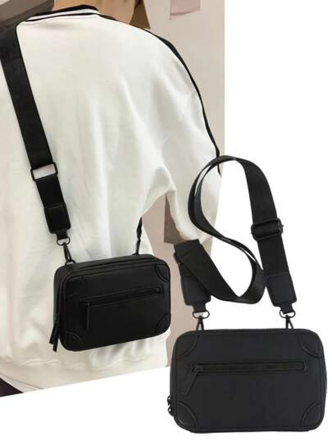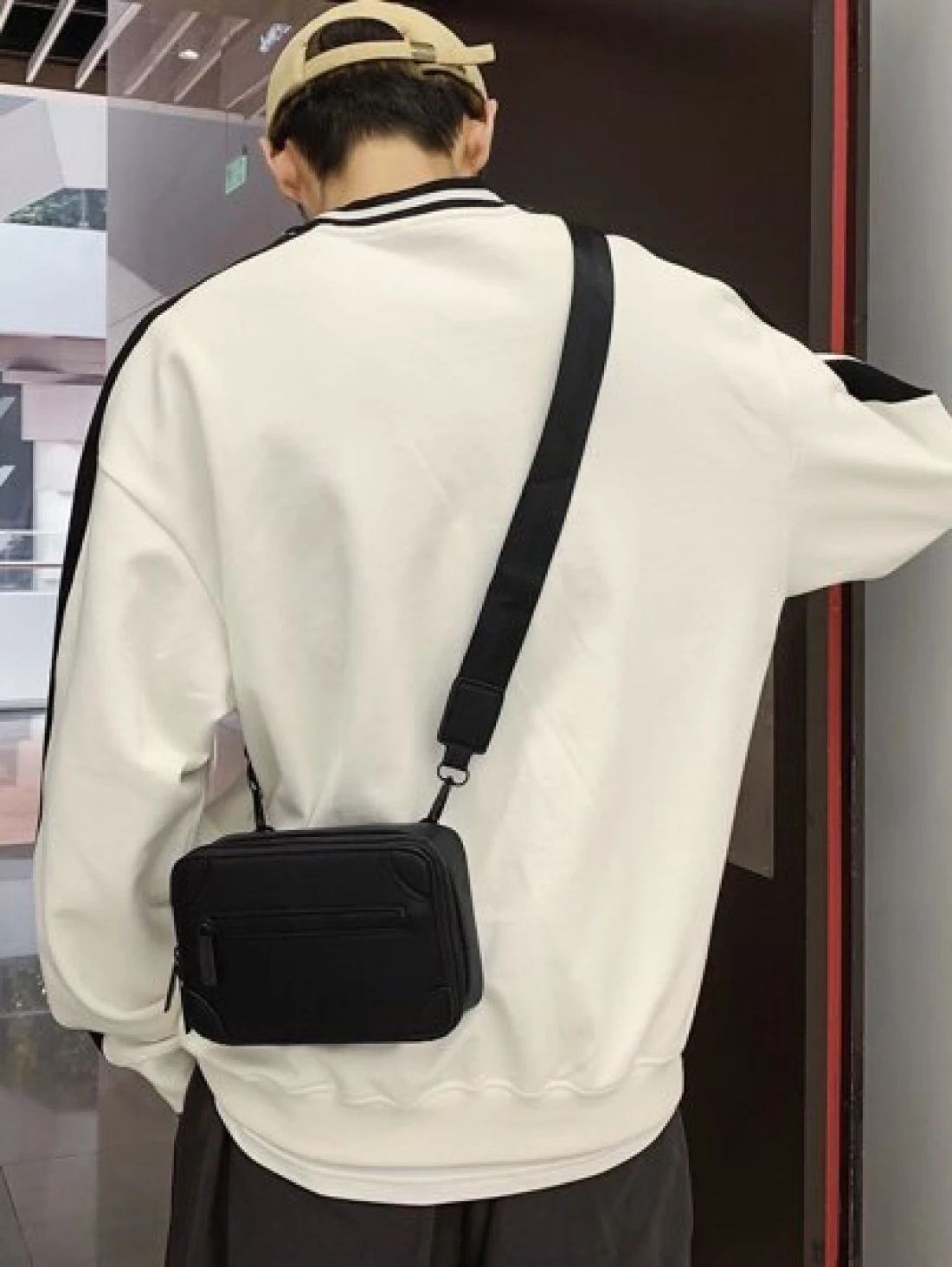 peach tree 1pc Fashionable Solid Color Mini Box Shoulder Bag PU Leather Casual Asymmetrical Neck Messenger Bag Peach Tree Minimalist Solid Color Men Crossbody Bag Geometric Square Box Waterproof Trave