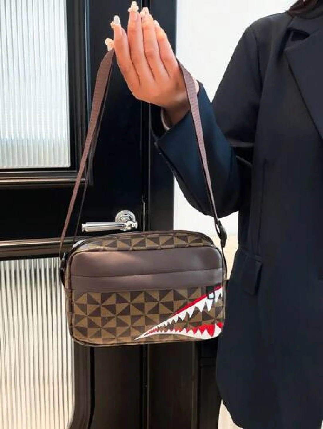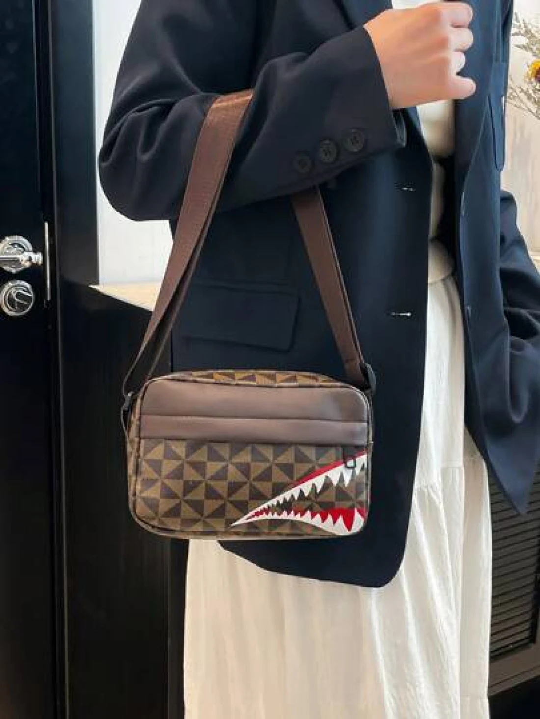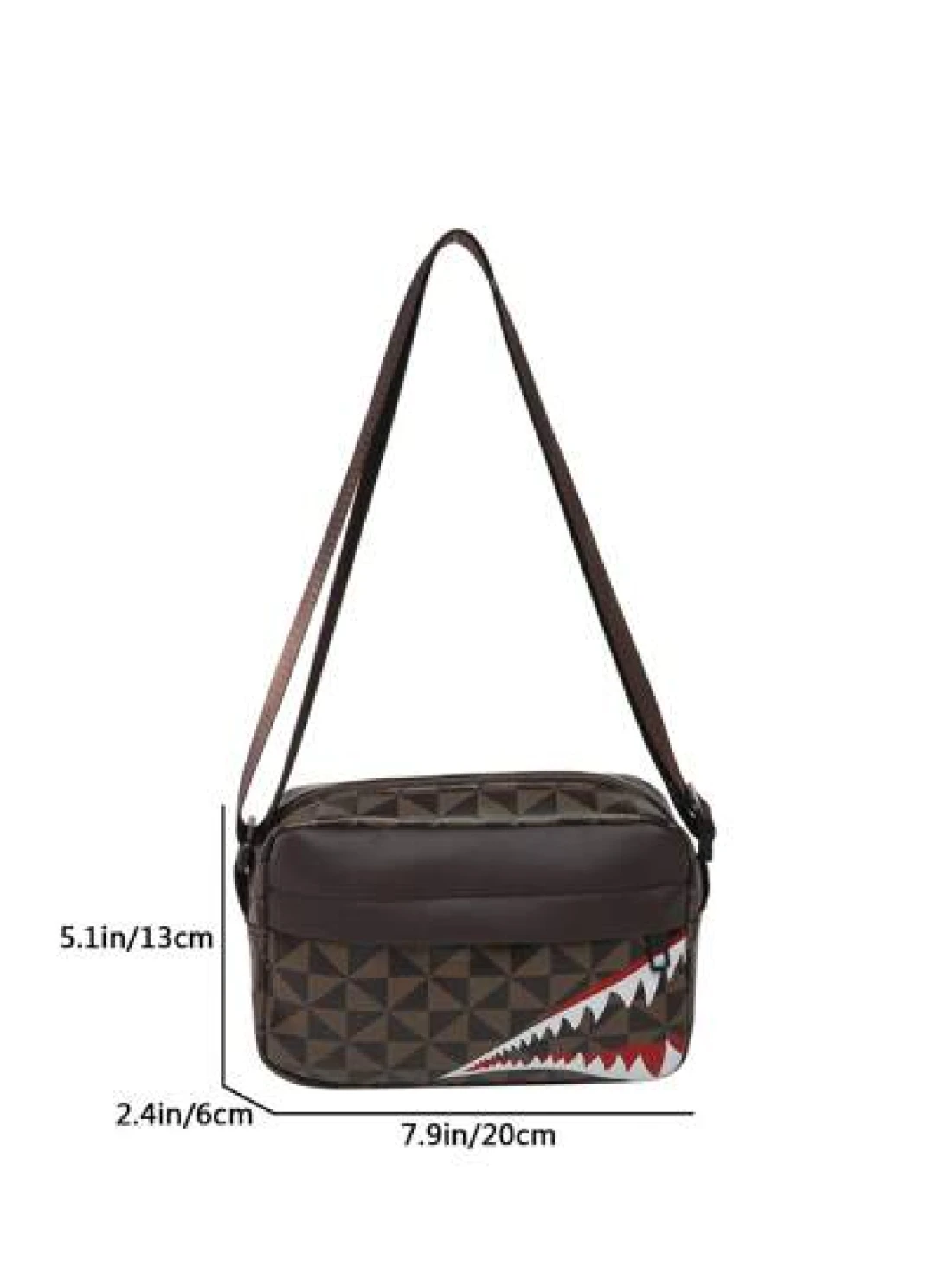 Fashionable Men s Casual Plaid Shoulder Sports Sling Bag Personality Small Square Men s Bag Business Personality Shark Mouth Anime Luxury Bags