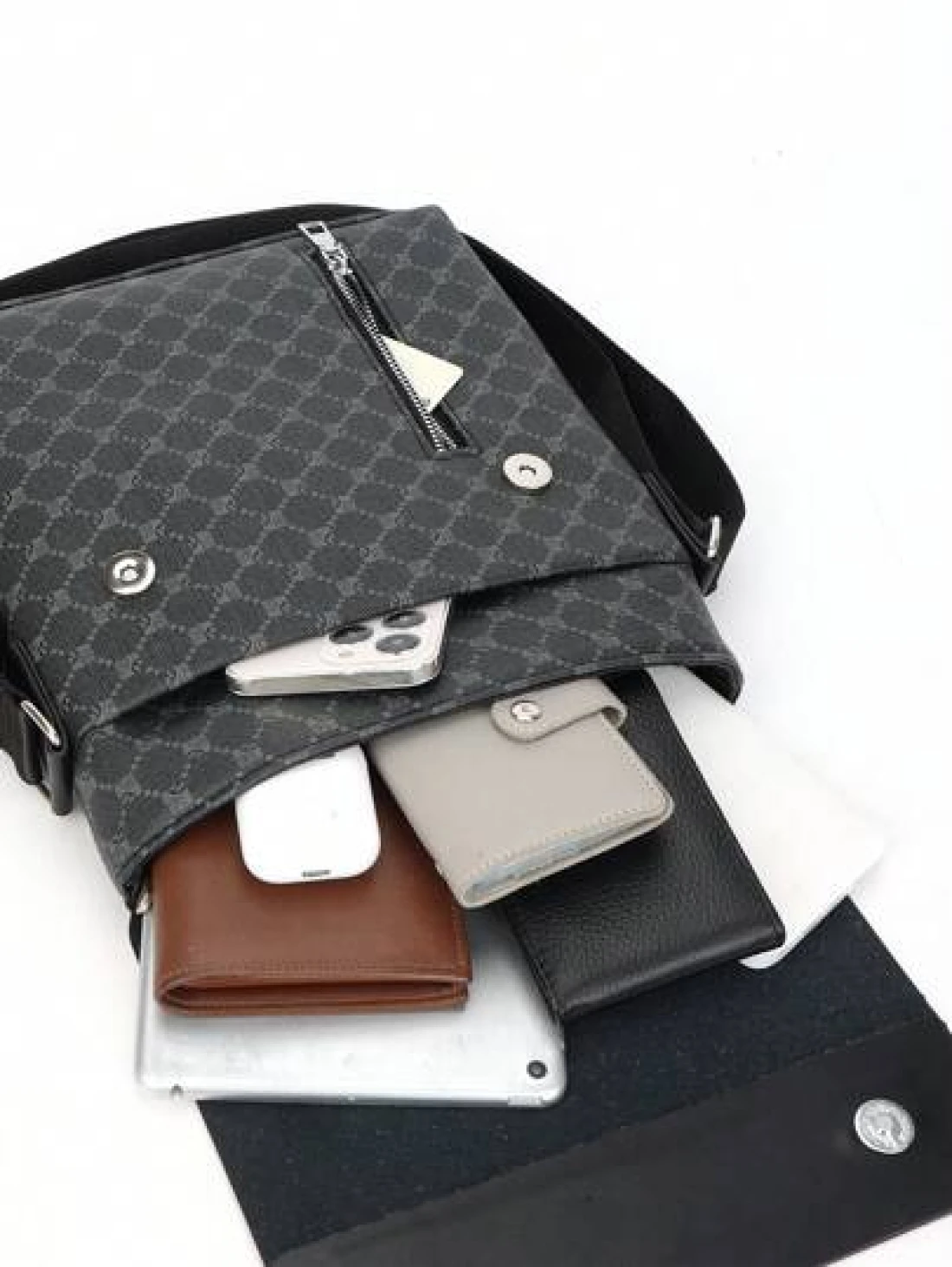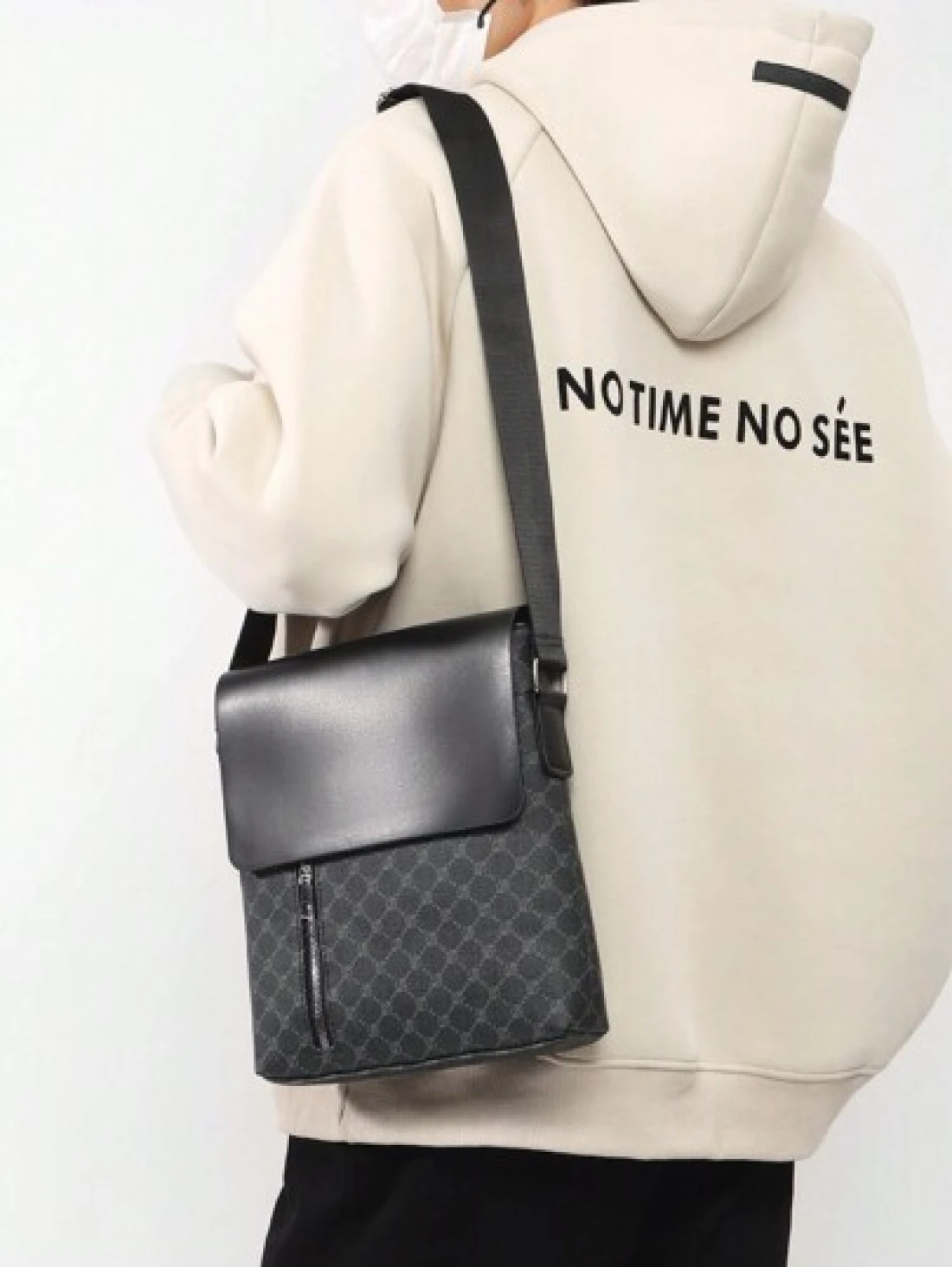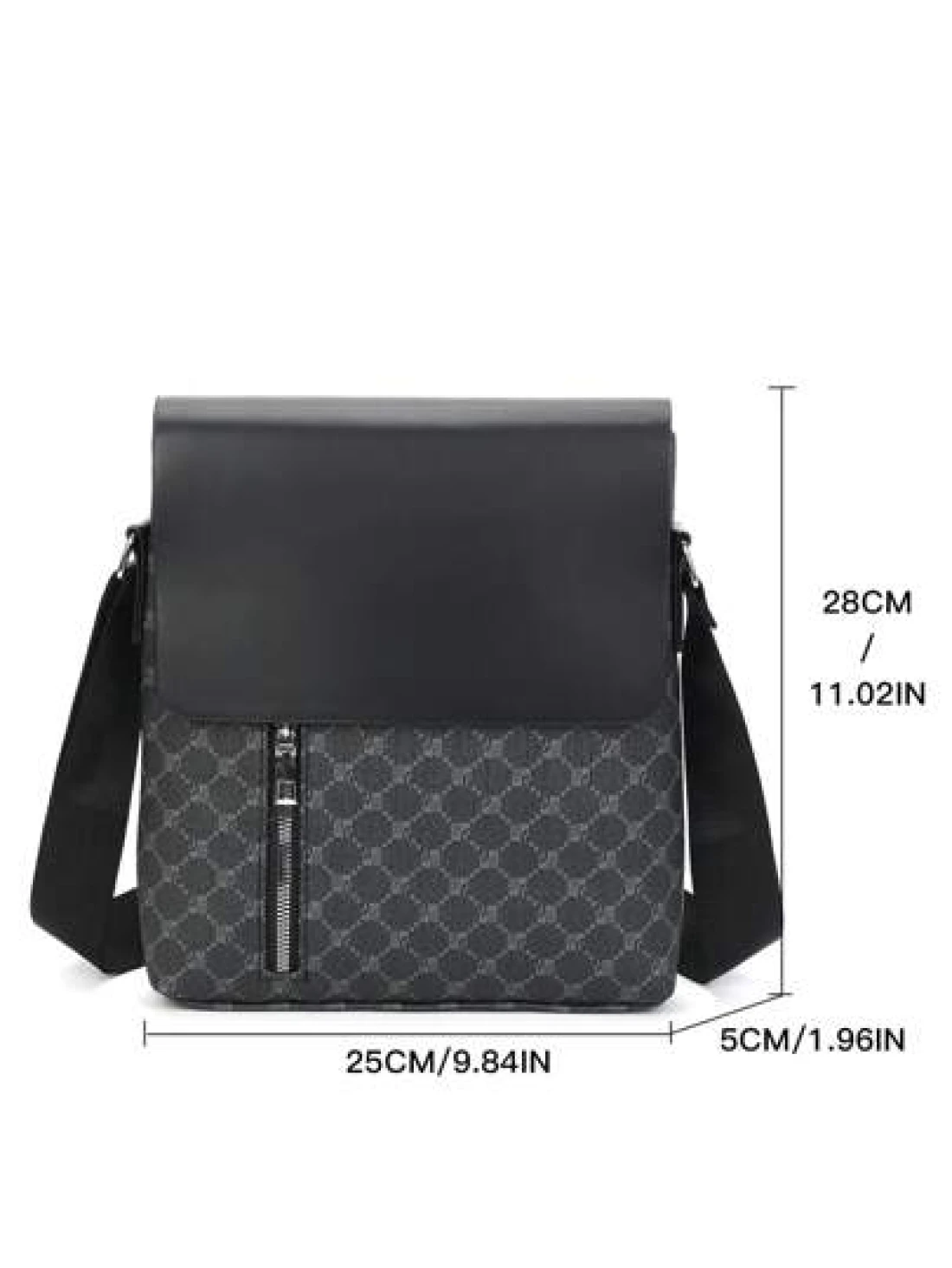 Men s Pu Leather Messenger Shoulder Bags Single Strap Flap Crossbody Bag College Valentine s Day Gift Vintage Old Money Bag For Valentines Day Gift Bag Classic Retro Printed Vintage Print Black Bag Hi
