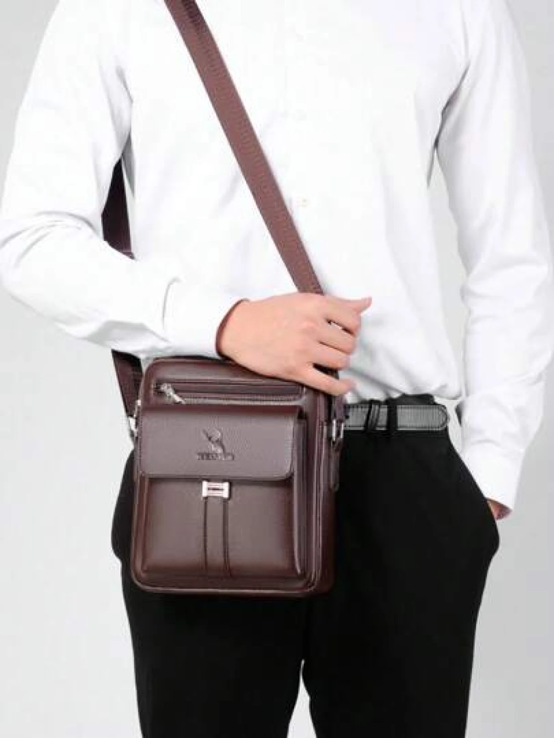 1pc Men s Shoulder Crossbody Waist Hand Chest Bag PU Water Proof Wear Resistant Material With Large Capacity Pockets Adjustable Strap Convenient And Portable New Fashionable Business Bag Ideal Gift Si