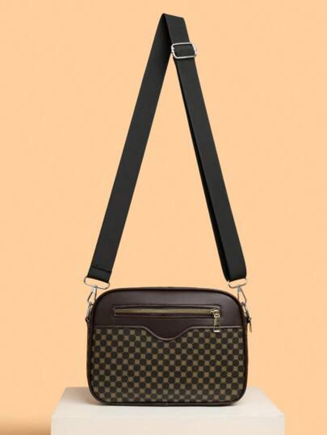 Men s Casual Checkered Shoulder Bag New Korean Leather Crossbody Bag Fashionable Small Square Bag Brand Splicing Small Backpack