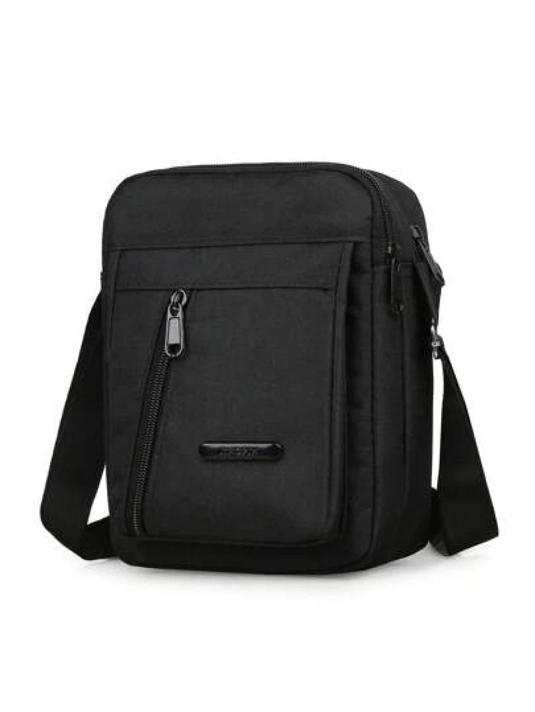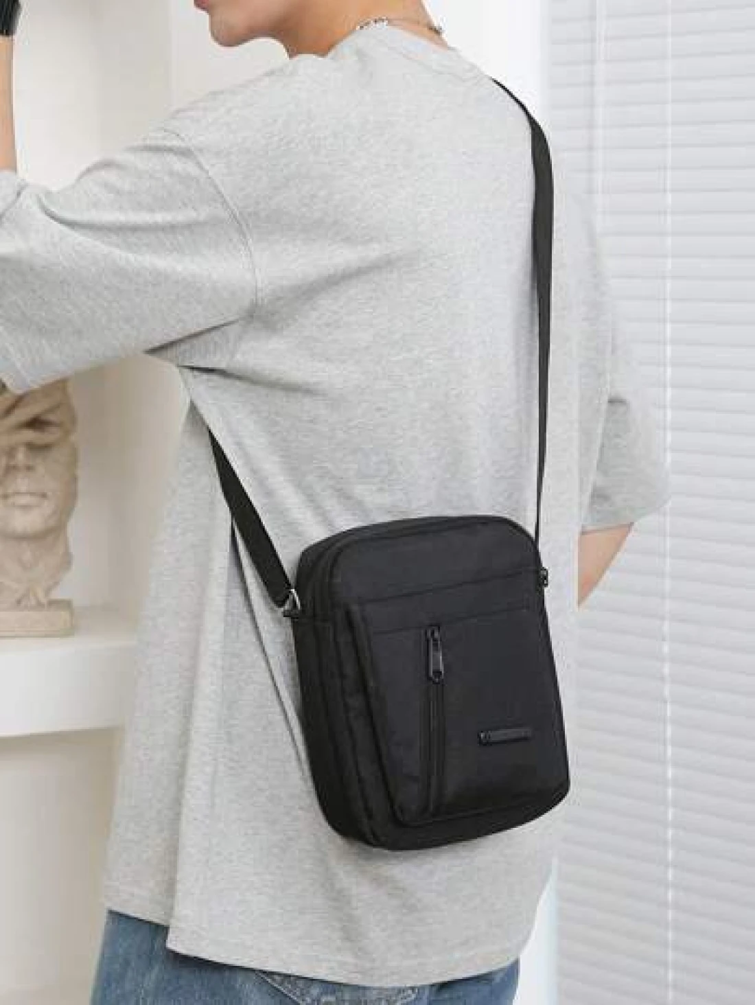 حقيبة كتف قماشية متعددة الجيوب للرجال، أحادية اللون (بزخارف معلقة)، حقيبة رجالية بأسلوب الشارع، حقيبة تتنقل،