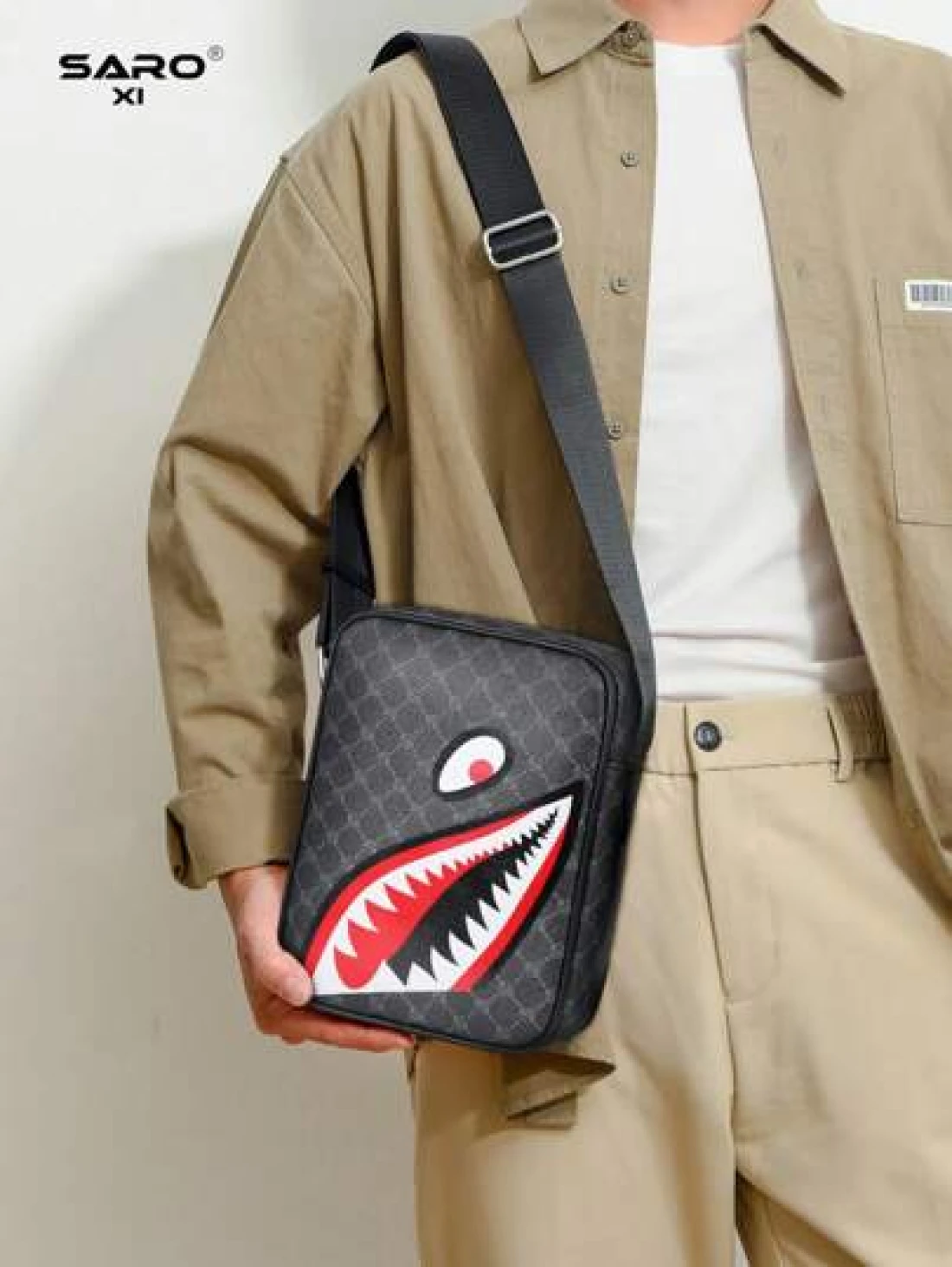 Men s Slanted Shoulder Bag With Side Pocket Crossbody Bag Shoulder Bag Square Bag Multi Function Suitable For Commuting PVC Casual Bag Simple Style Black Floral Gift For Men Boyfriend Luxury Bags