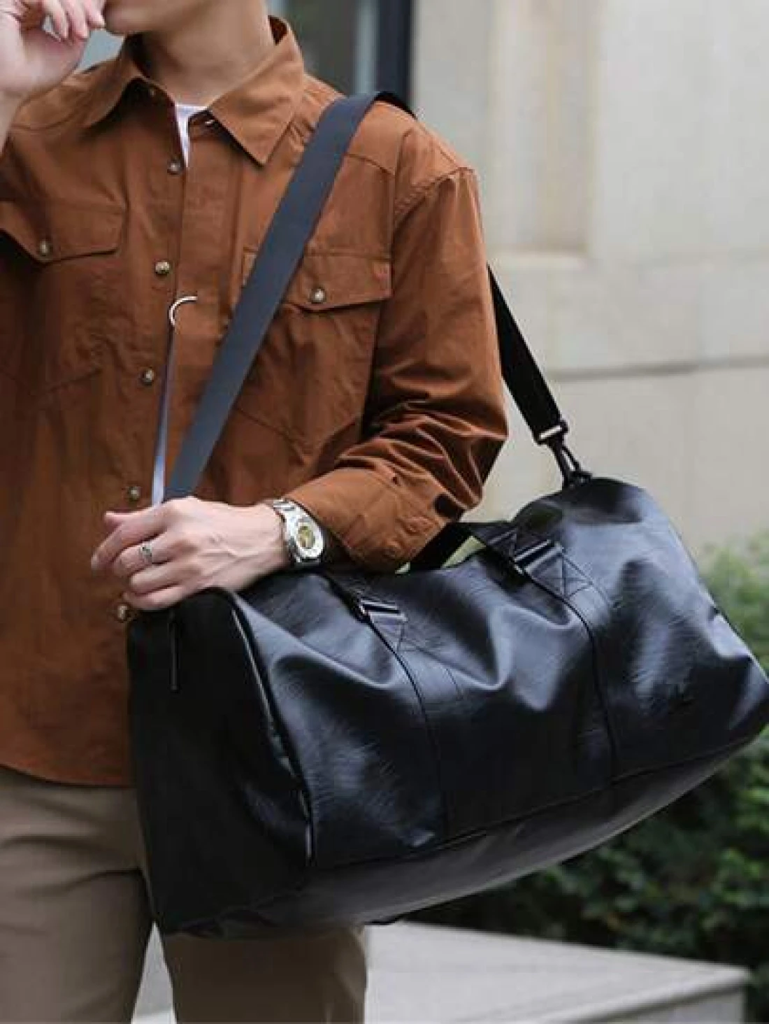 Fashion Soft Leather PU Large Capacity Duffel Bag Dry And Wet Separation Travel Bag Independent Storage Shoes Fitness Bag Multi Function Boarding Bag Necessary Mommy Bag With Children Suitable For Sch
