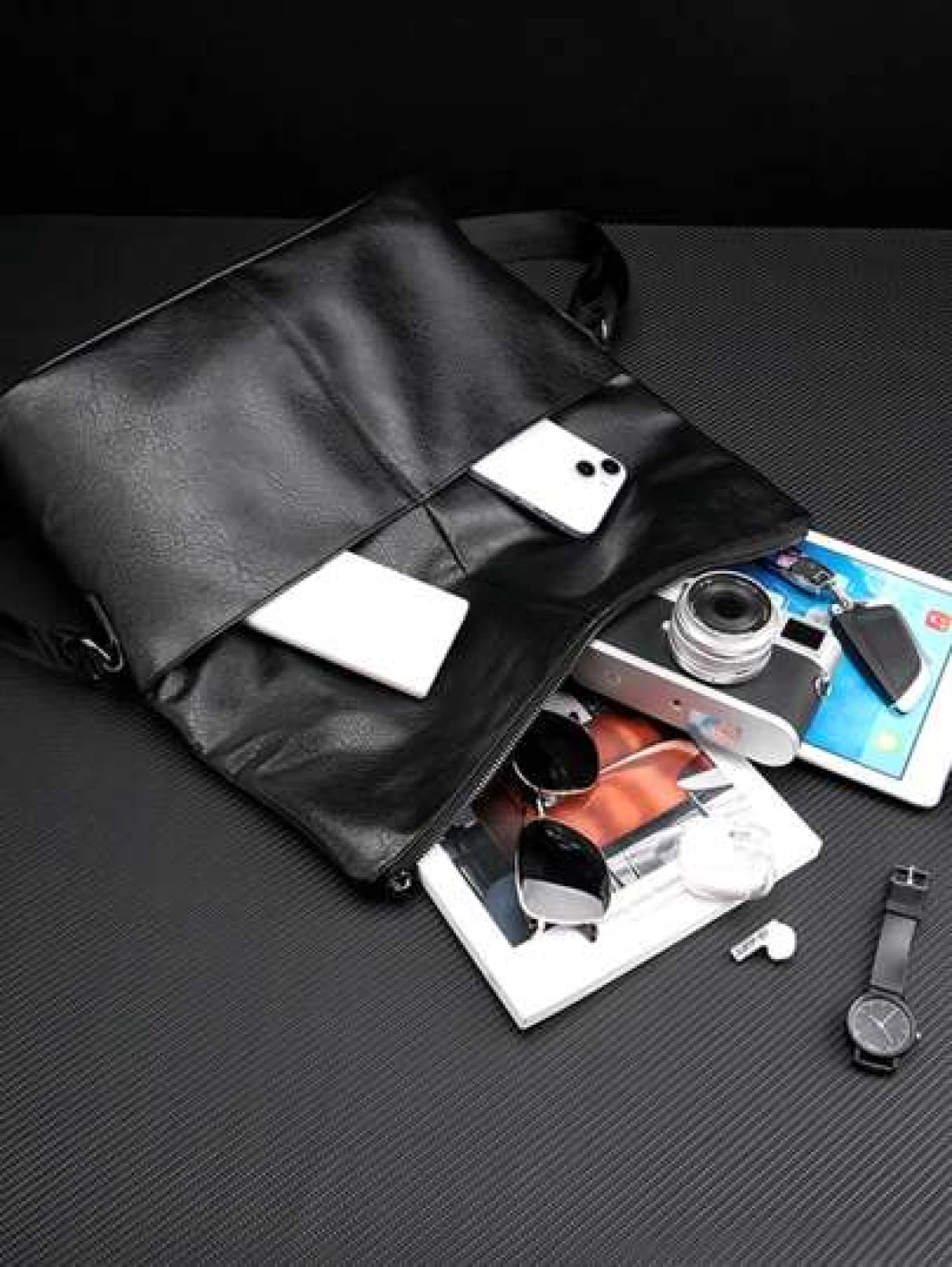 New Men s Commuter One Shoulder Diagonal Crossbody Bag Lightweight PU Soft Leather Small Bag Minimalist Design Foldable High End Handbag