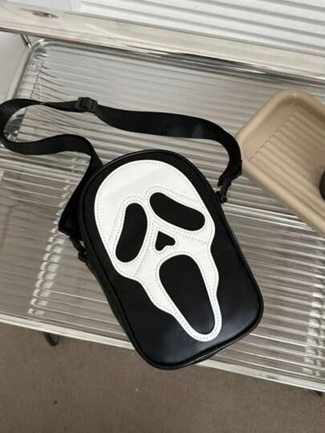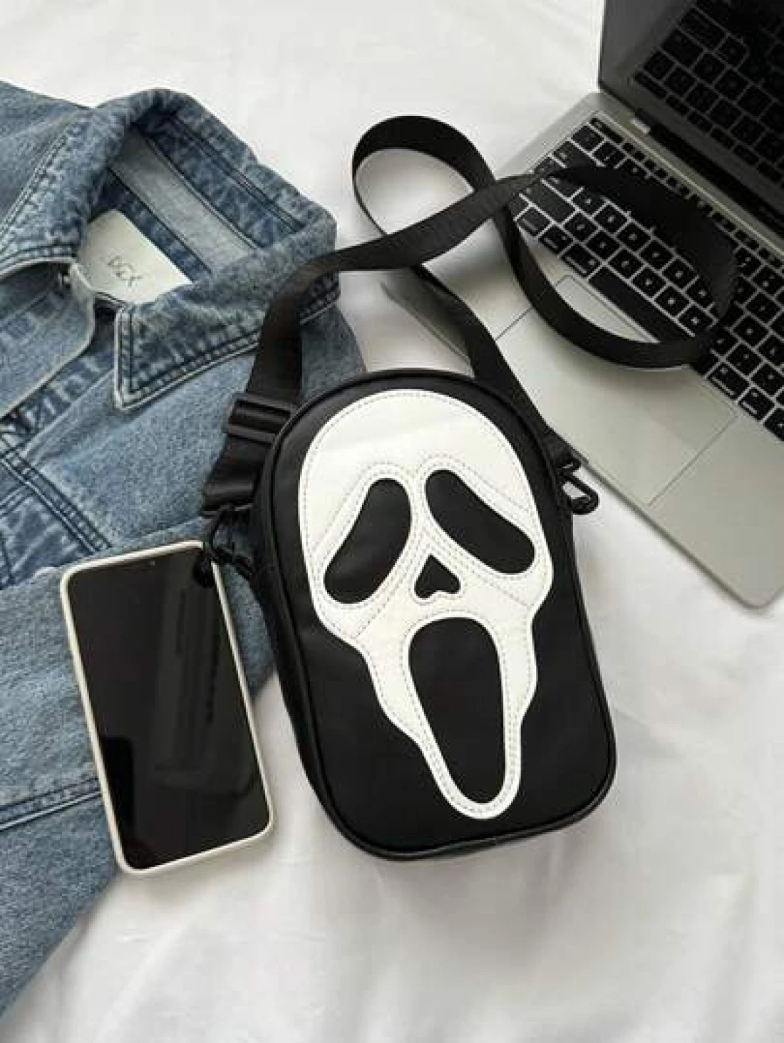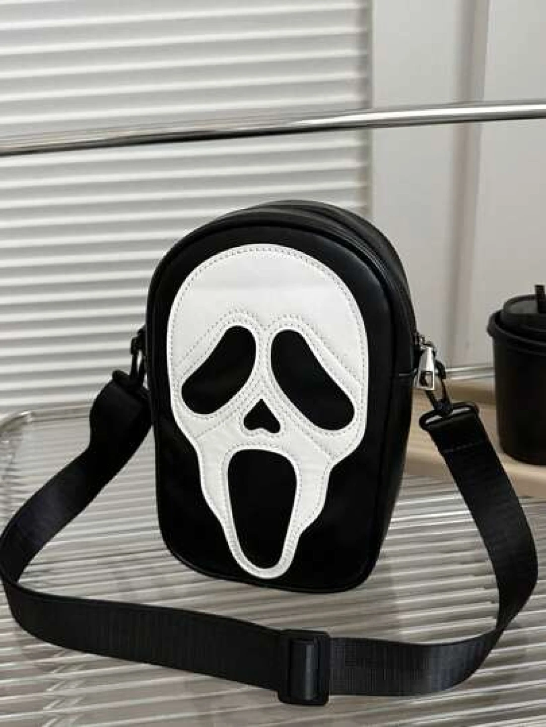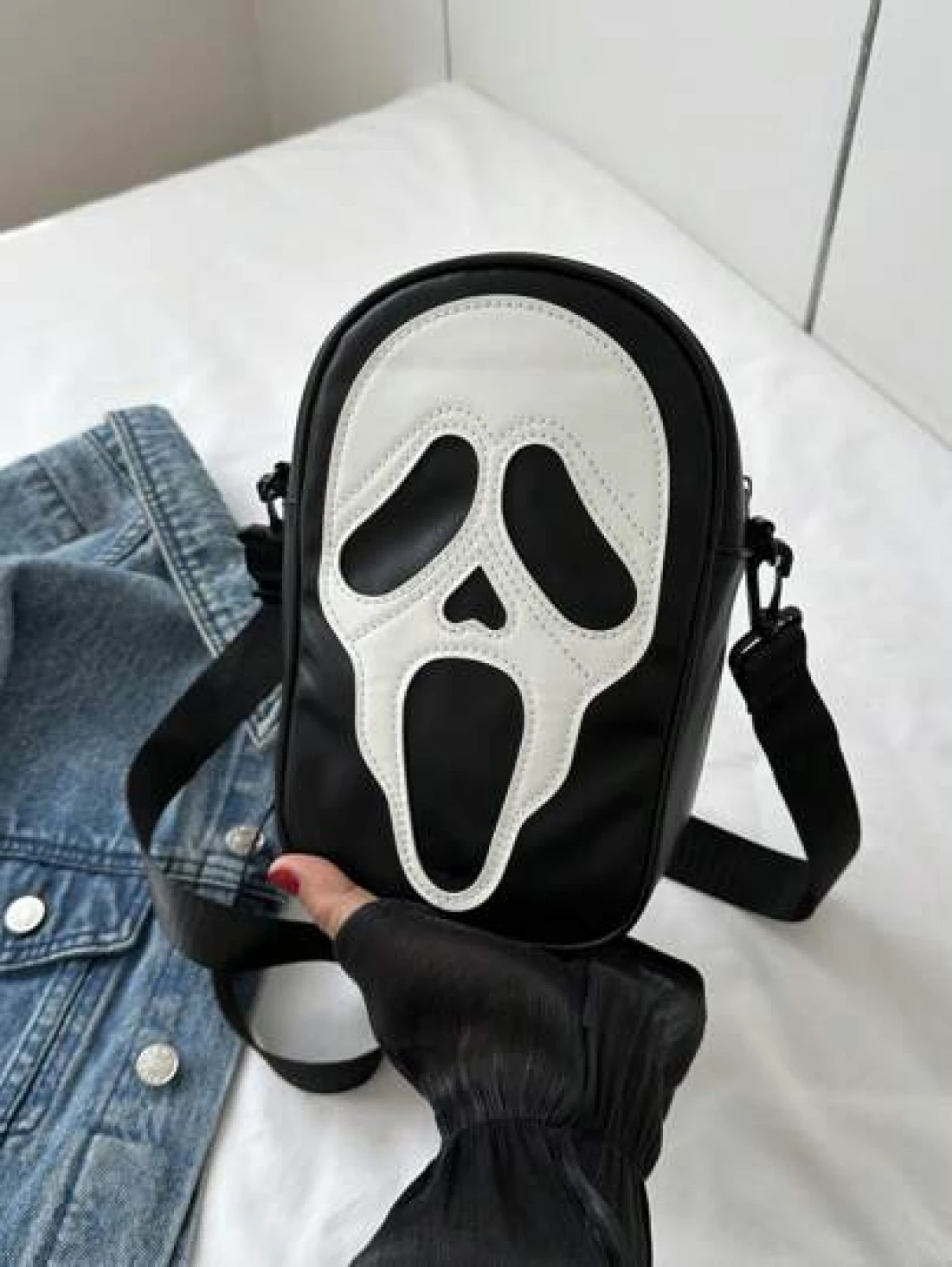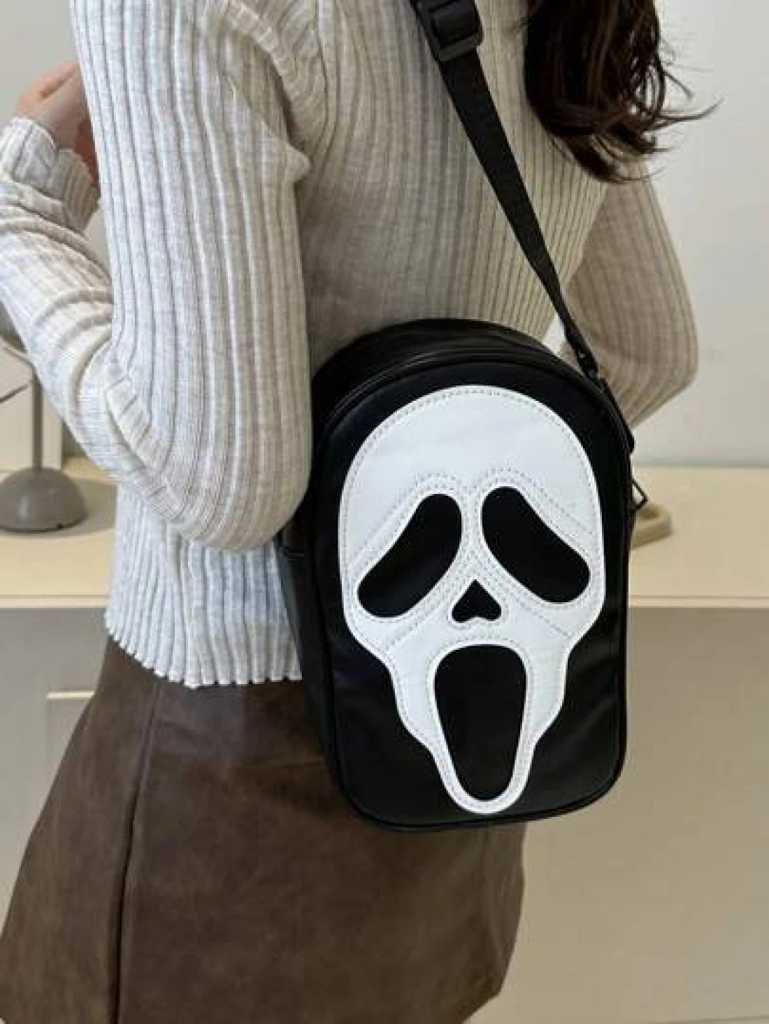 حقيبة كروس بو جلدية مع سحاب للتخزين الخارجي لعيد الهالوين