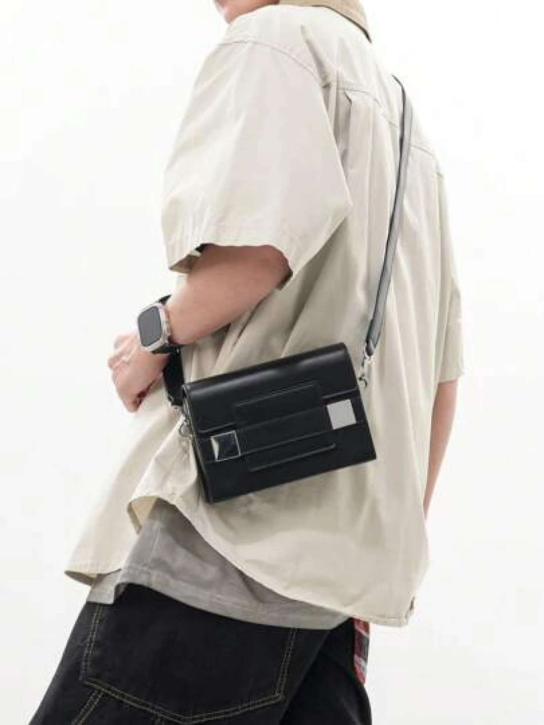 peach tree حقيبة صندوق رجالية، حقيبة كروس بودي، حقيبة كتف، حقيبة مربعة، محفظة جلد مقاوم للماء مع غطاء مقلوب، حقيبة تخزين محايدة للعمل مناسبة للرحلات العمل، مستحضرات التجميل، تخزين الأدوات، سعة كبيرة