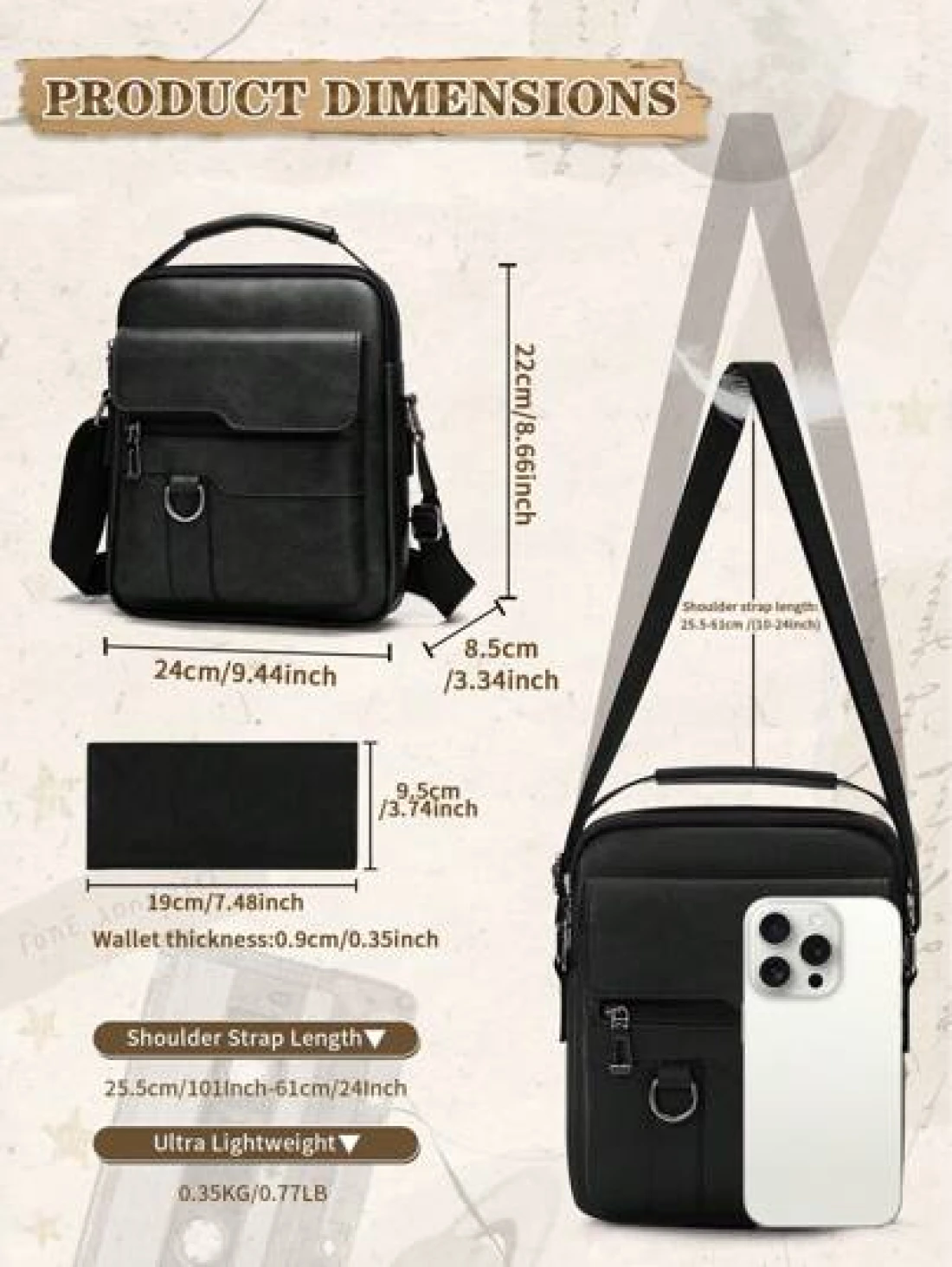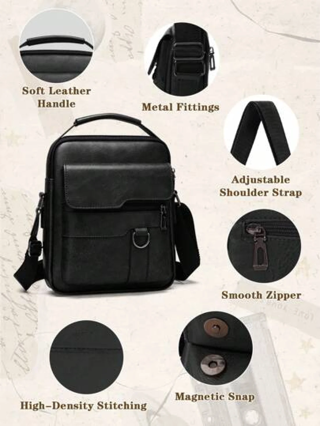 NEWHEY حقيبة كتف رجالية ، حقيبة جلد PU متقاطعة جديدة ، حقيبة يد رأسية جلد PU رجعية محمولة ، حقيبة كتف للعمل ، هدية عيد الحب ، هدية للزوج/الحبيب ، أسلوب عتيق ، حقائب محفظة شنطة جانبية ، عناصر حياة جديدة للطلاب ، مستلزمات محفظة ، حقائب رجالية موضة