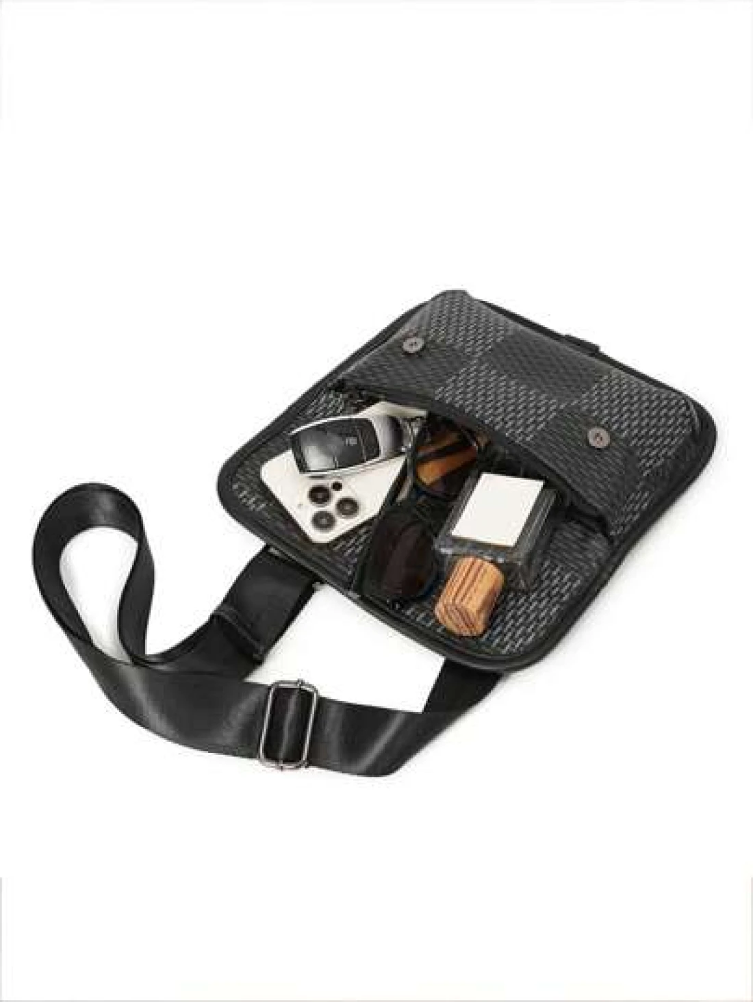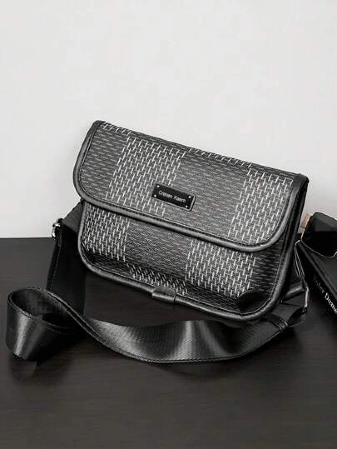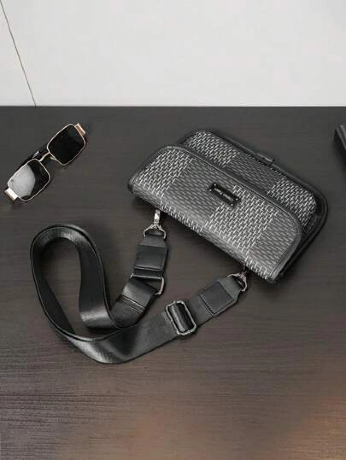 New Men s Flip Cover Mailman Bag Large Capacity Fashionable Checkered Embossed Small Chest Bag Versatile Outdoor Men s Crossbody Bag PU Waterproof Small Square Bag Men s Shoulder Bag Wear Resistant Co