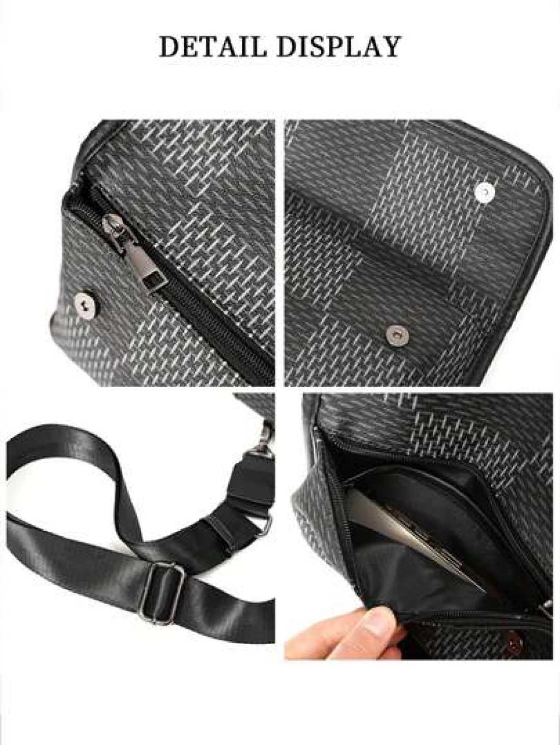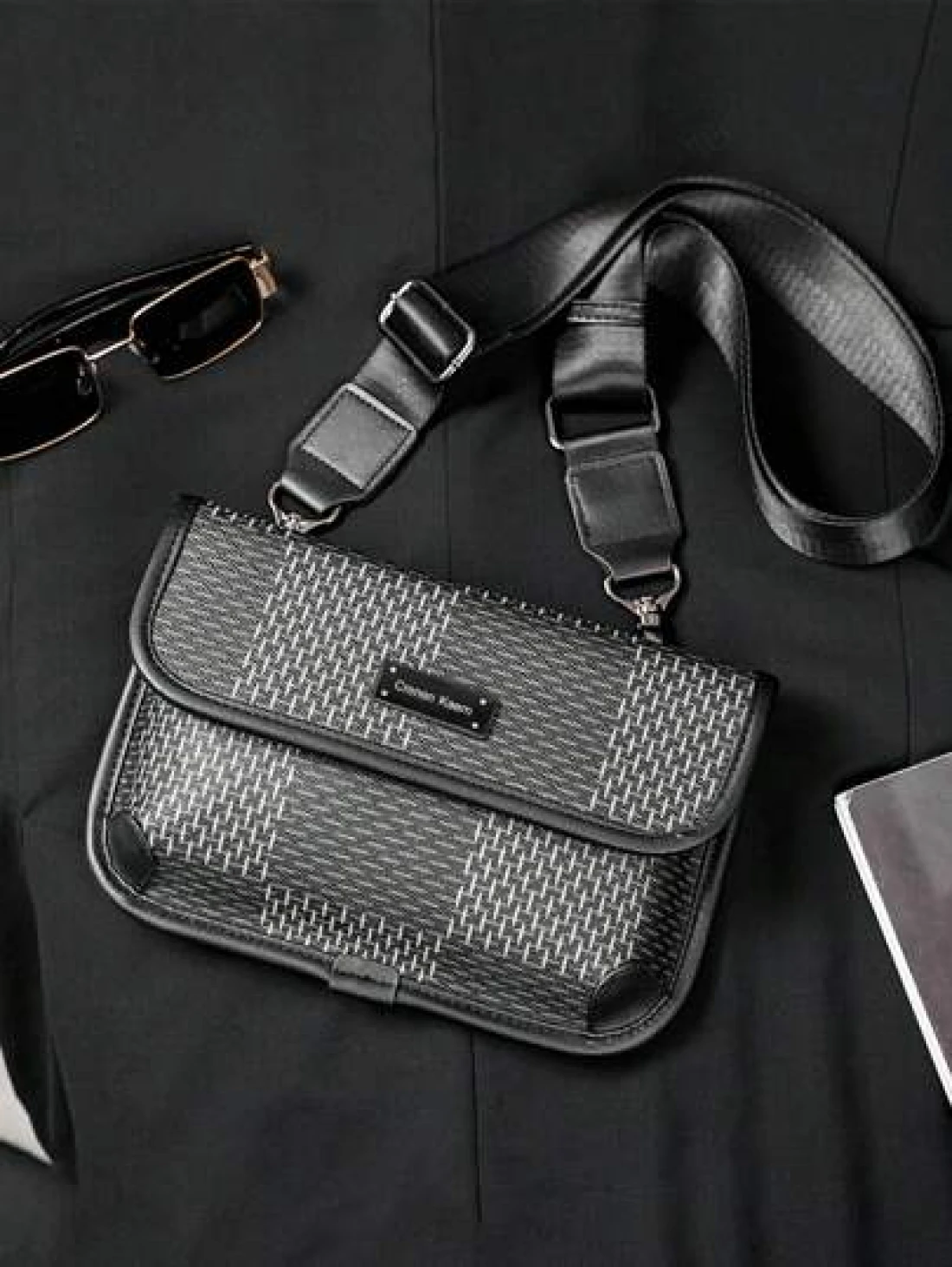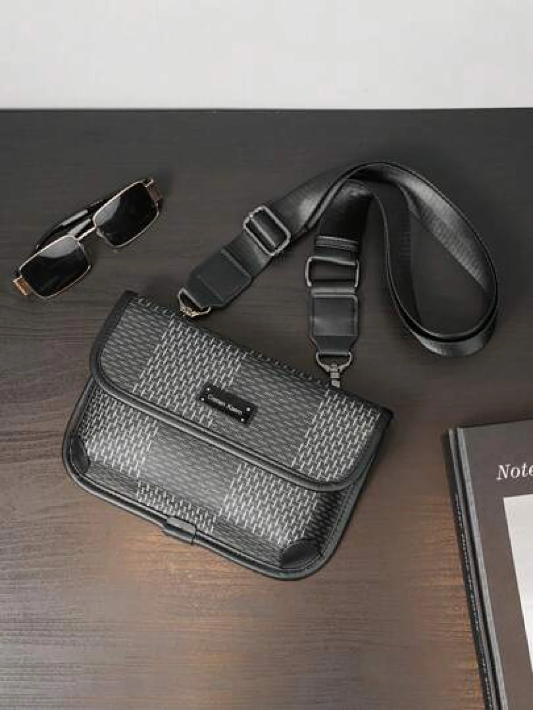 New Men s Flip Cover Mailman Bag Large Capacity Fashionable Checkered Embossed Small Chest Bag Versatile Outdoor Men s Crossbody Bag PU Waterproof Small Square Bag Men s Shoulder Bag Wear Resistant Co