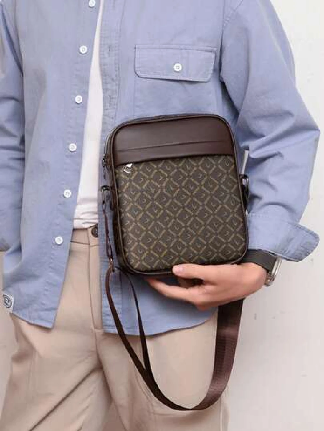 حقيبة كتف للرجال بطراز أوروبي وأمريكي، حقيبة جلد بقري كاجوال للتنقل عبر الجسم، حقيبة رسائل لأعمال