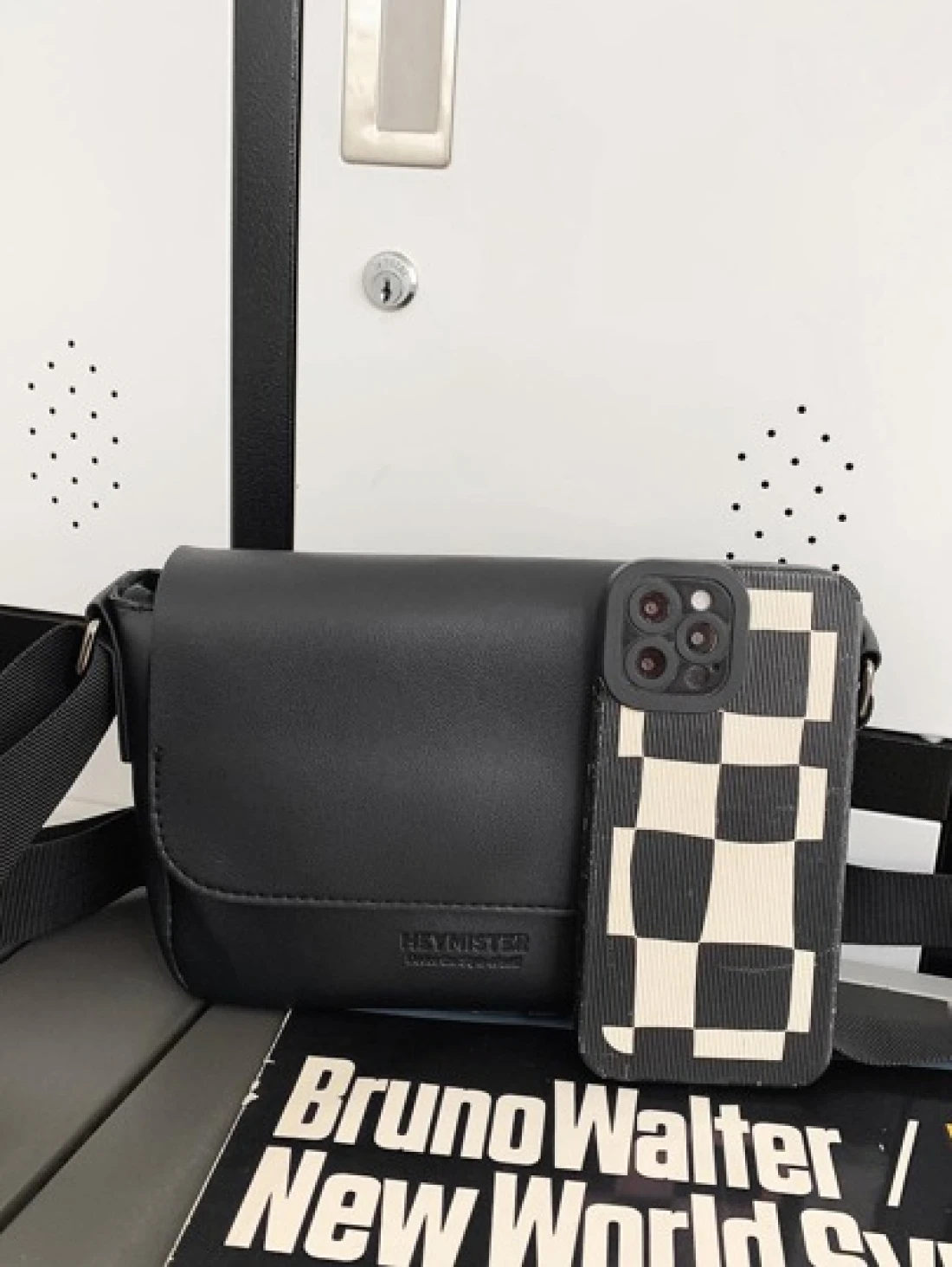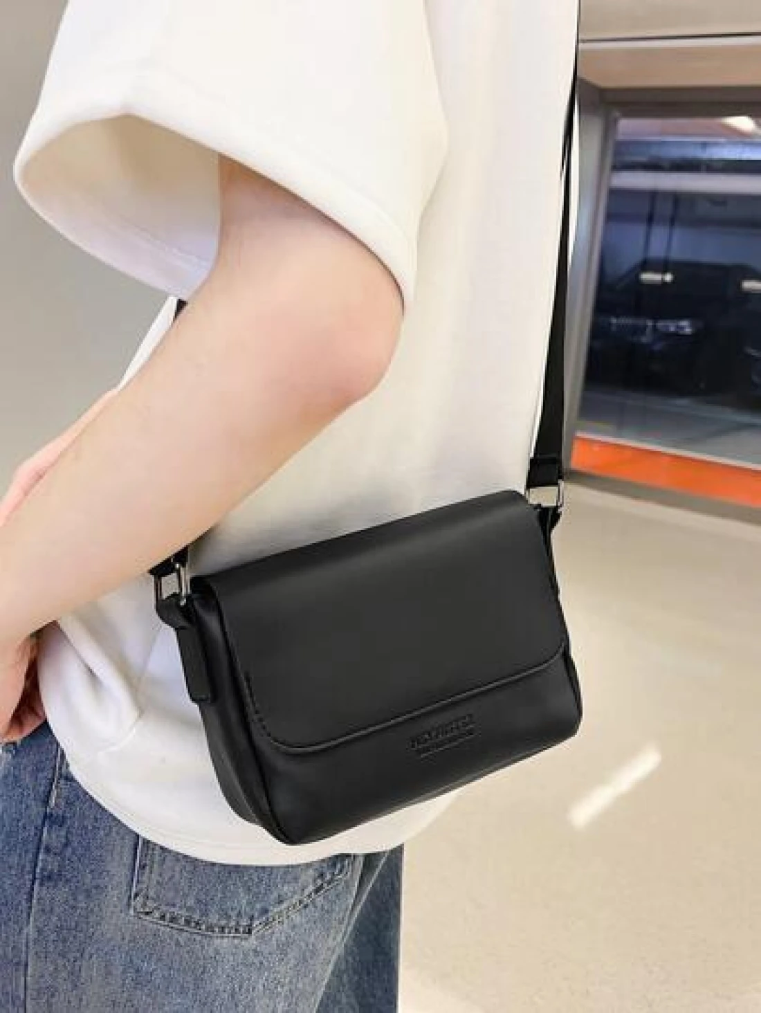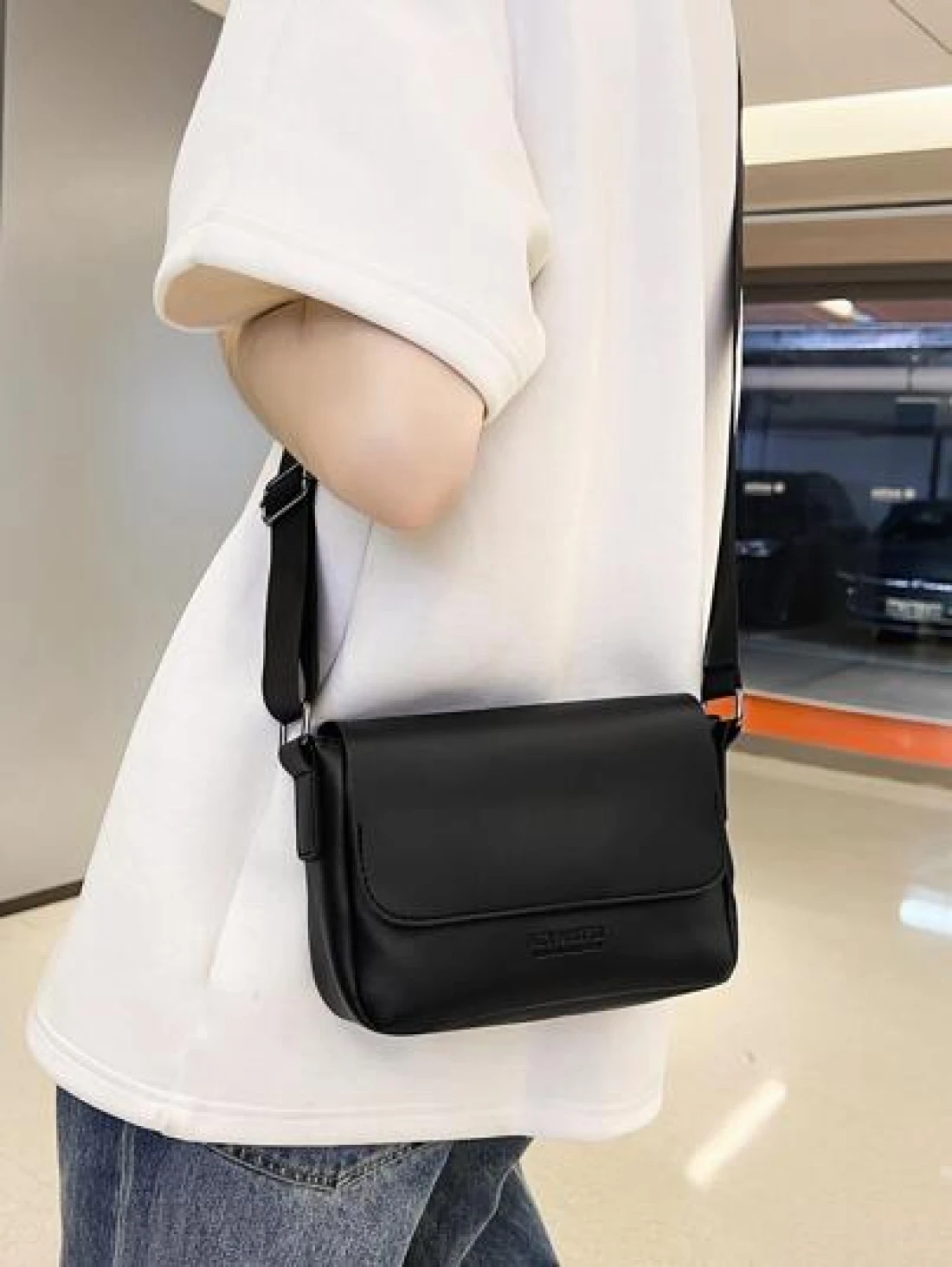 حقيبة كروسبودي بنمط أعمال رجالي بطبعة حرفية بسيطة مع غطاء جلد ، حقيبة كاجوال للكتف ، حقيبة جانبية ، حقيبة معلق