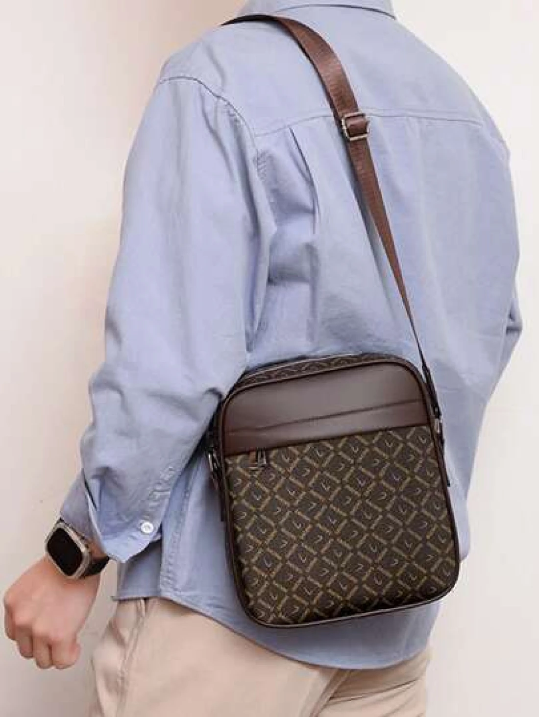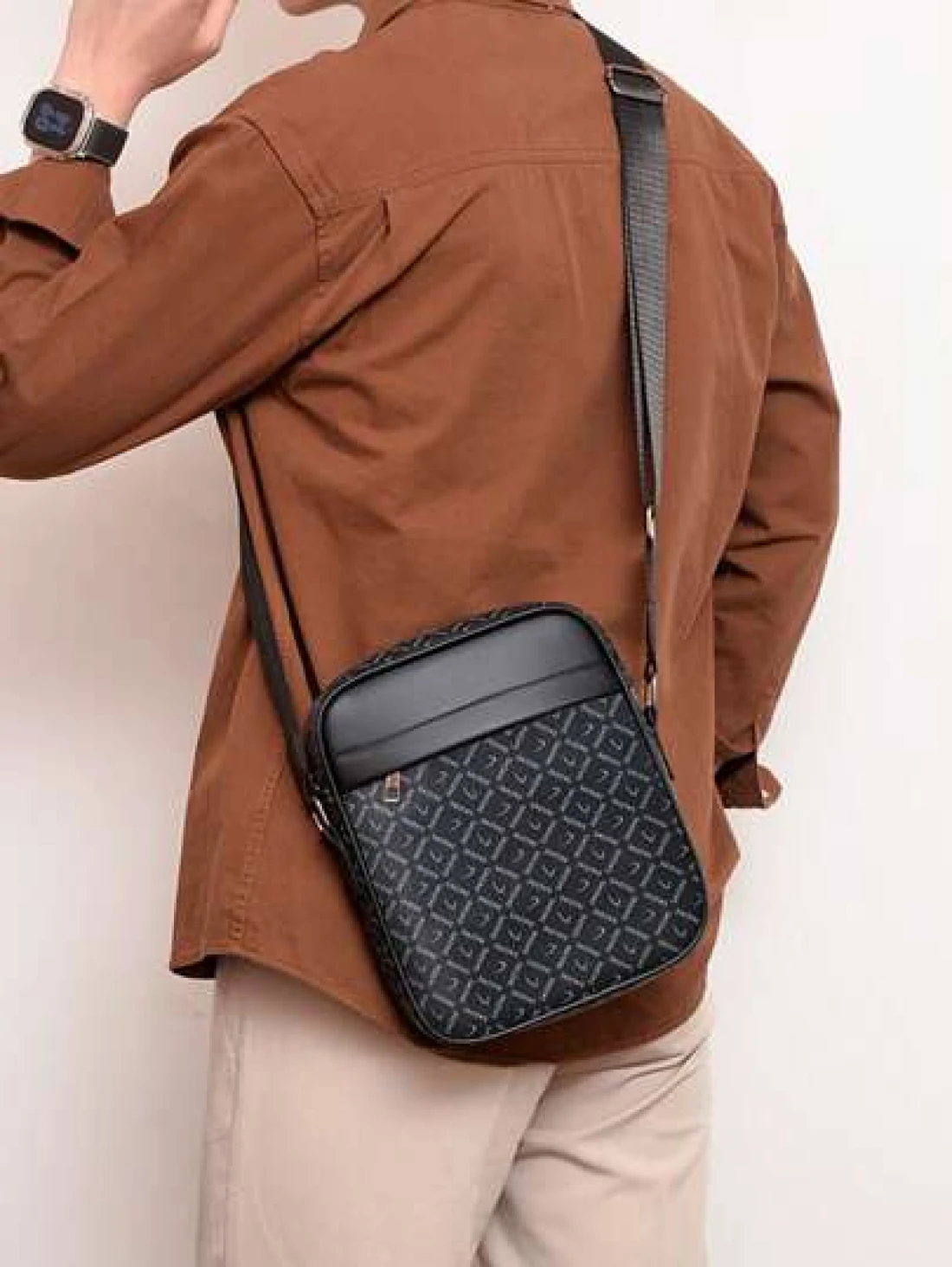 حقيبة رجالية أنيقة للأعمال من مادة البولي يوريثان والجلد الاصطناعي، حقيبة صغيرة مربعة، حقيبة كتف متقاطعة، حقيبة للهاتف المحمول، محفظة نقود، طباعة ماركة، سحاب معدني، حزام كتف قابل للتعديل، خياطة دقيقة، تخزين للأغراض اليومية، بسيطة وأنيقة، خفيفة الوزن ومقاومة للاهتراء، للسفر اليومي والتنقل والتسوق والرياضة، حقائب فاخرة