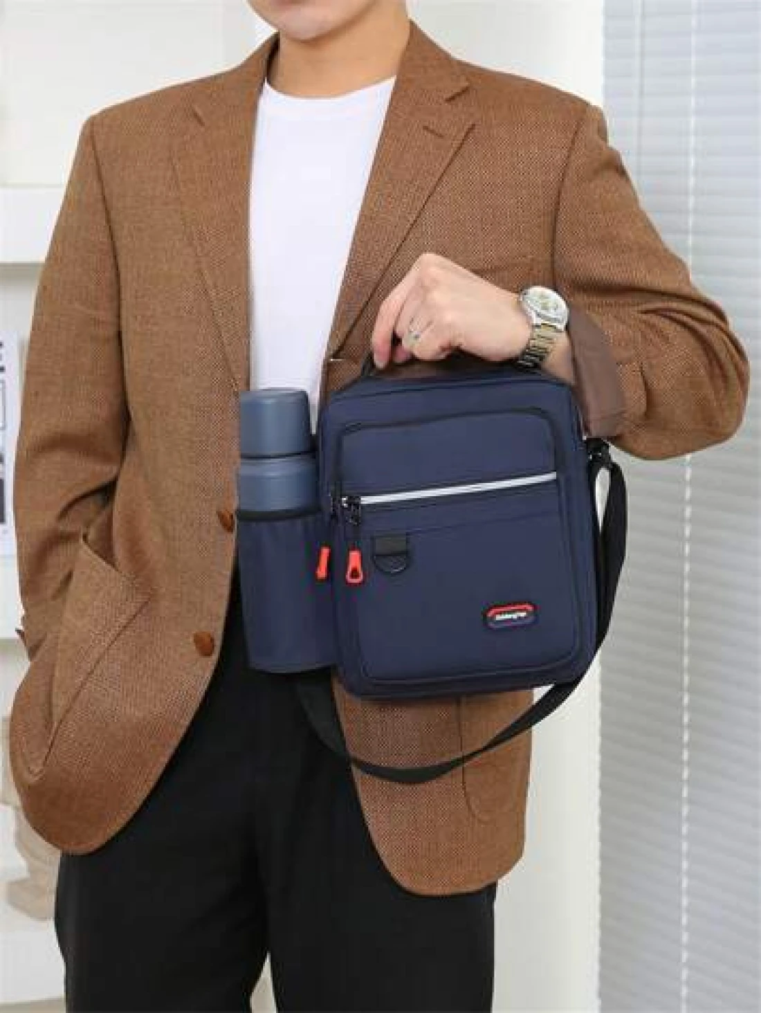 Multi Pocket Fashion Casual Outdoor Travel Backpack With Water Bottle Holder Reflective Stripe Soft For Men Fits Tablet Power Bank Wallet Umbrella