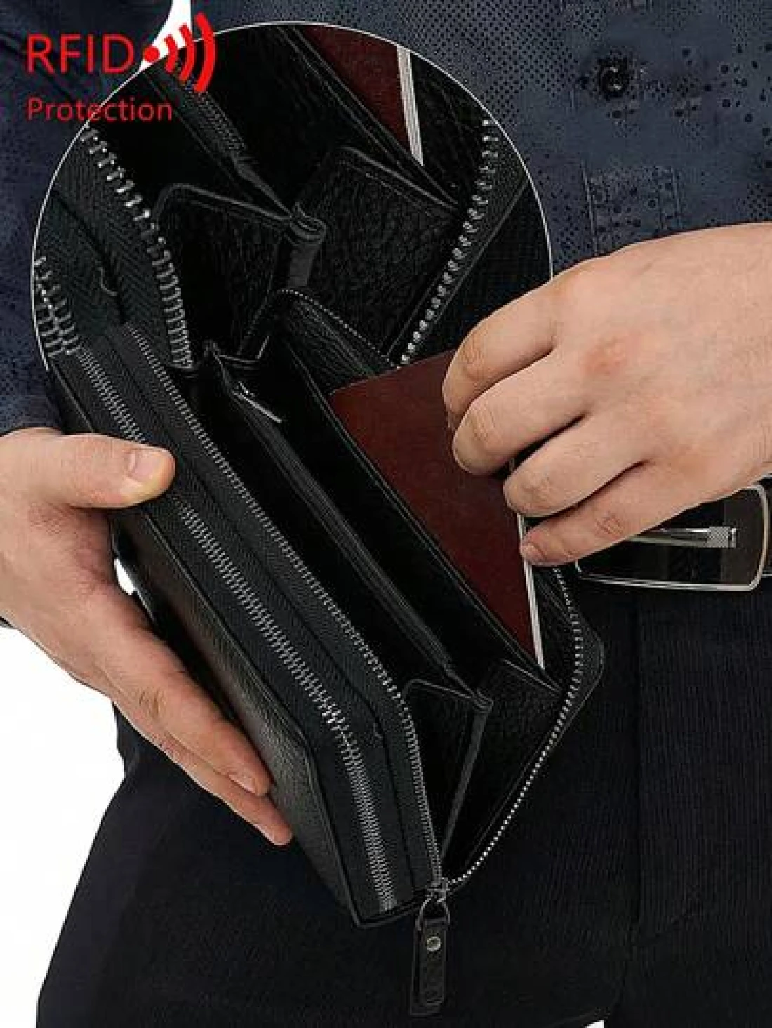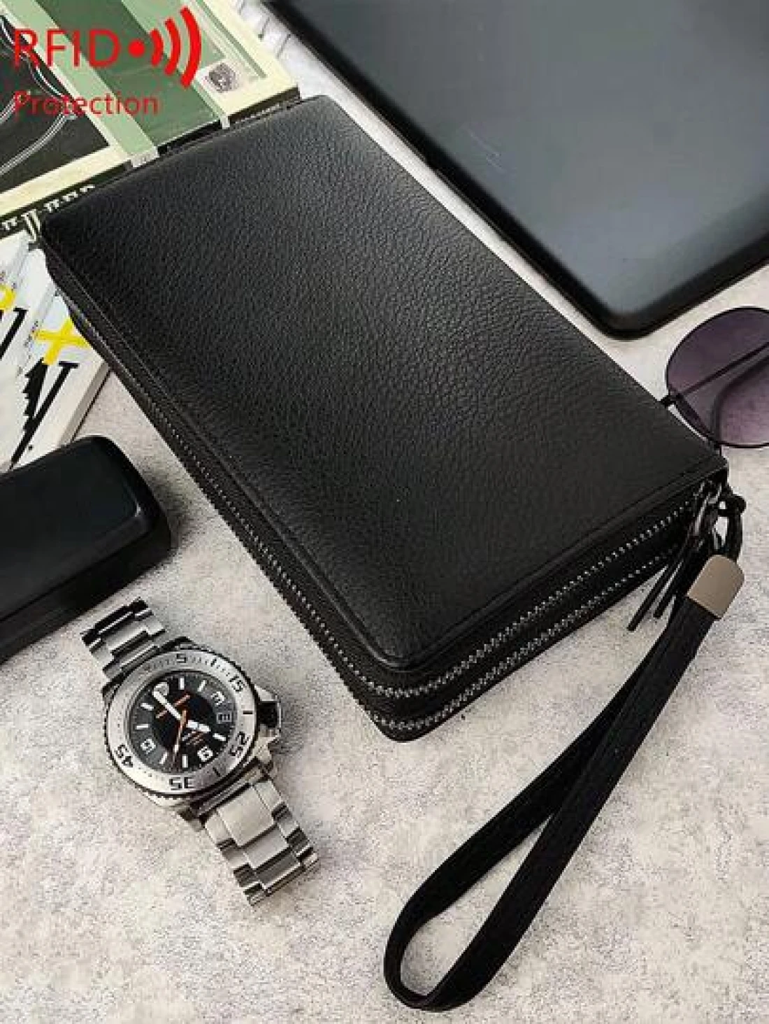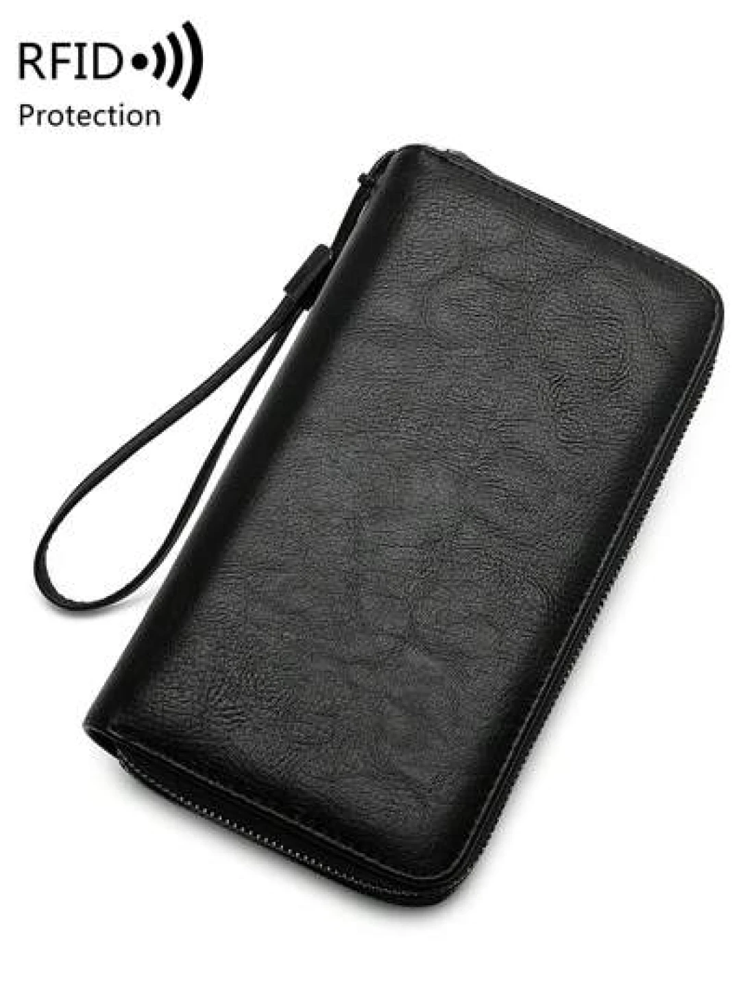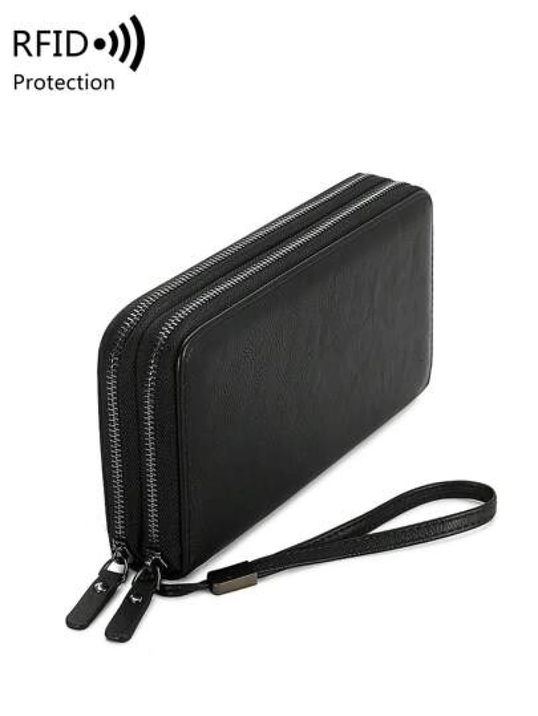 محفظة رجالية مانعة للقراءة لأجهزة RFD ذات لون أحادي بسيط مع معصم، حقيبة يد مصنوعة من جلد صناعي عصري مفرغة ذات طب