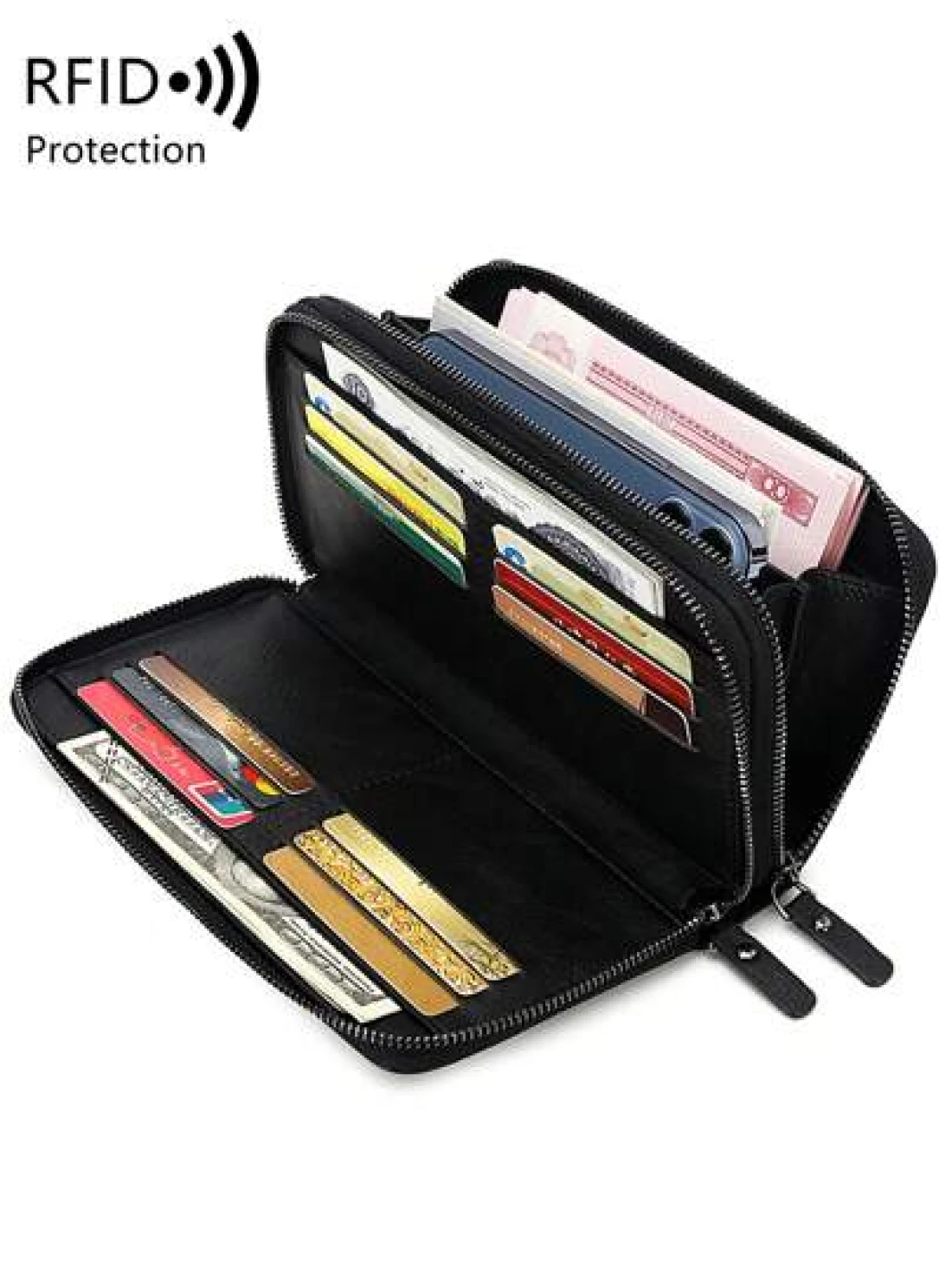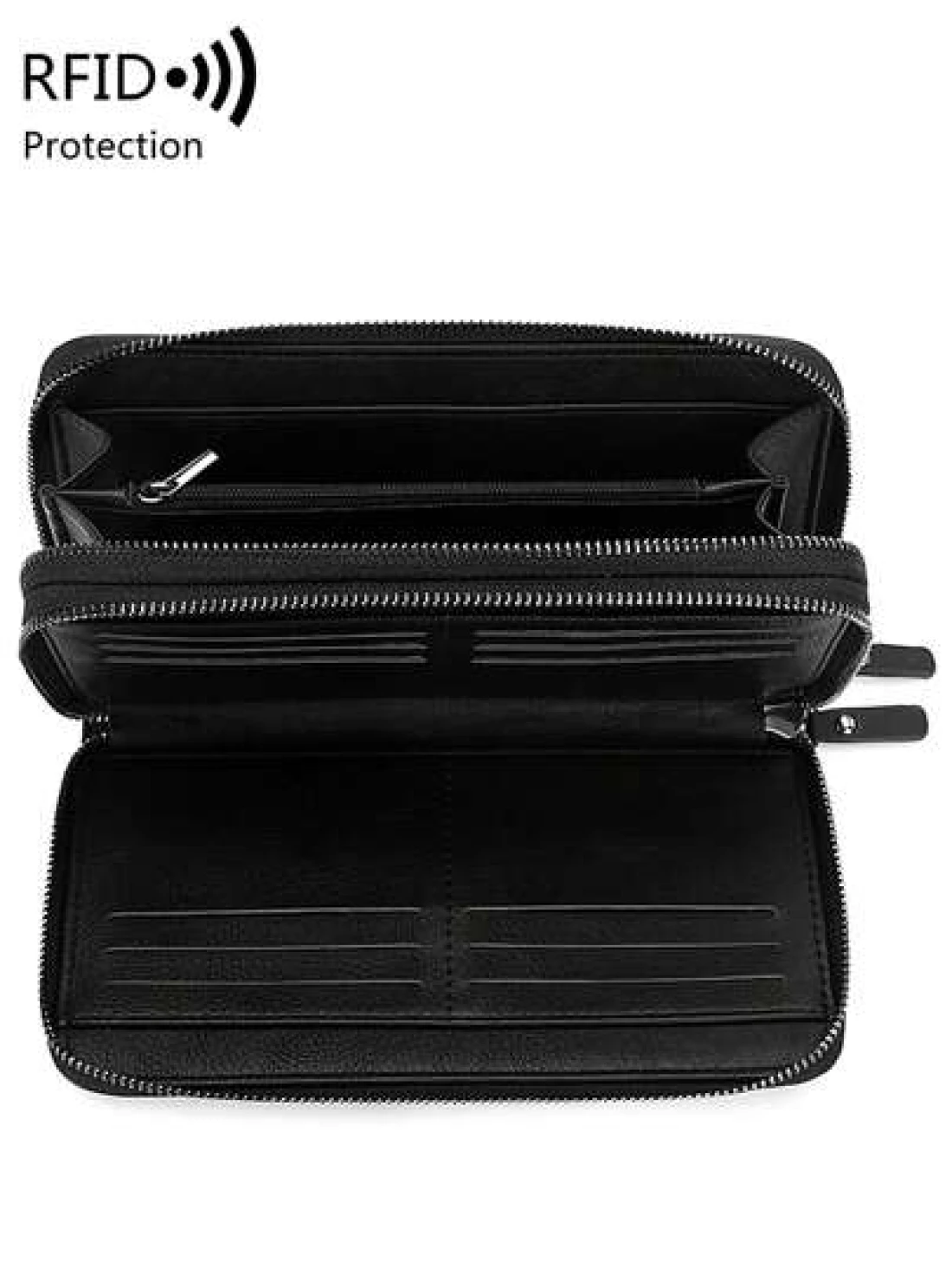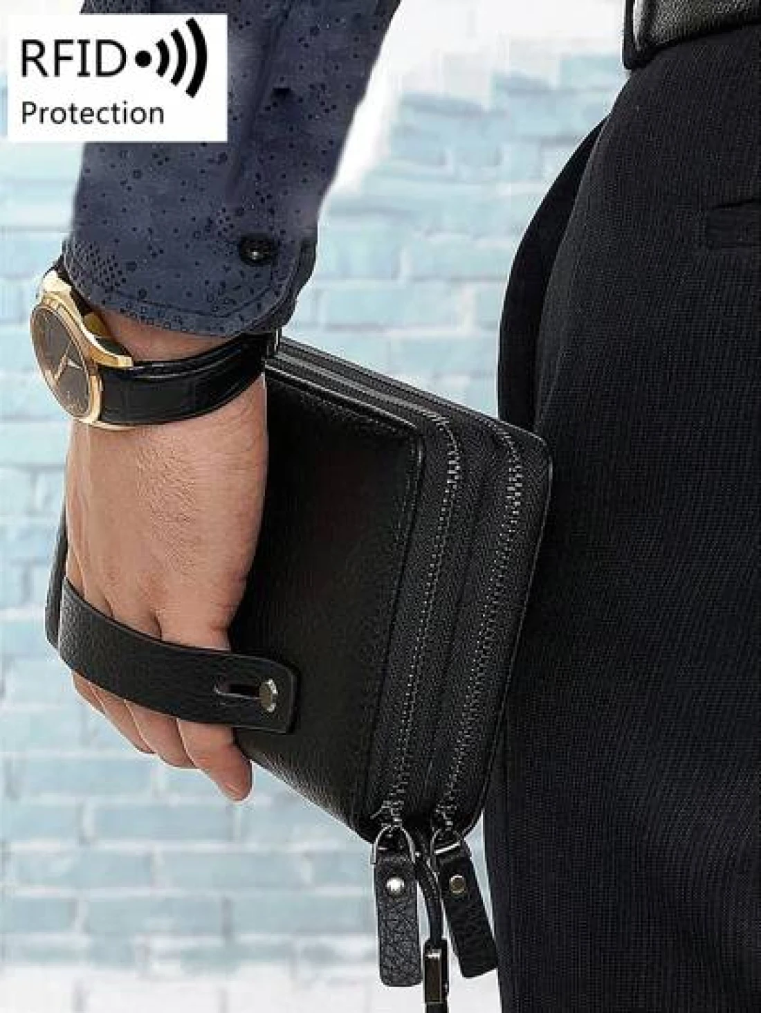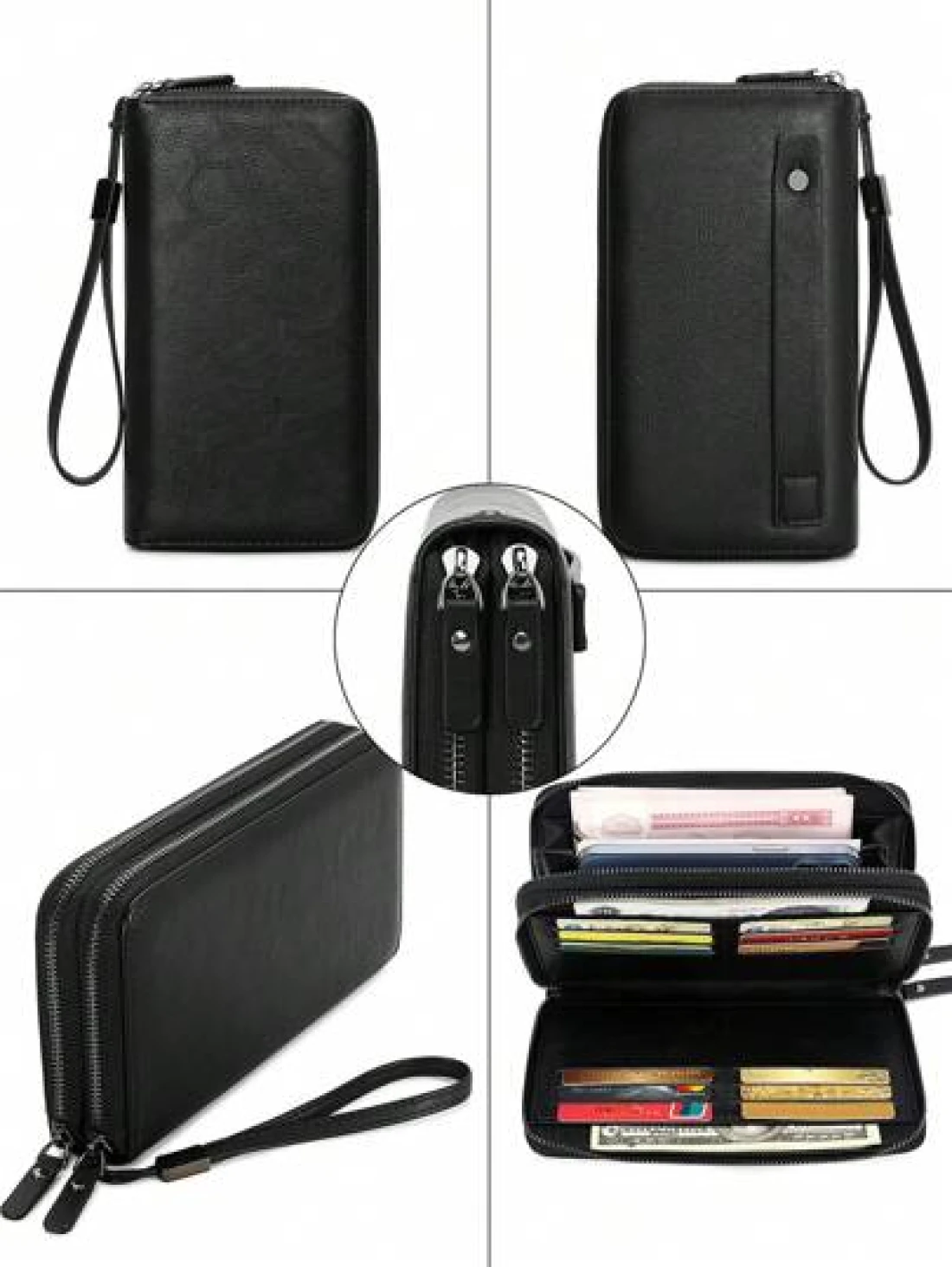 محفظة رجالية مانعة للقراءة لأجهزة RFD ذات لون أحادي بسيط مع معصم، حقيبة يد مصنوعة من جلد صناعي عصري مفرغة ذات طبقتين وسعة كبيرة متعددة الوظائف لتخزين البطاقات الائتمانية و البطاقات الشخصية والنقود والأموال والجواز، هدايا عيد الحب، حقائب جلدية رجعية، هدايا عيد الحب الشتوية