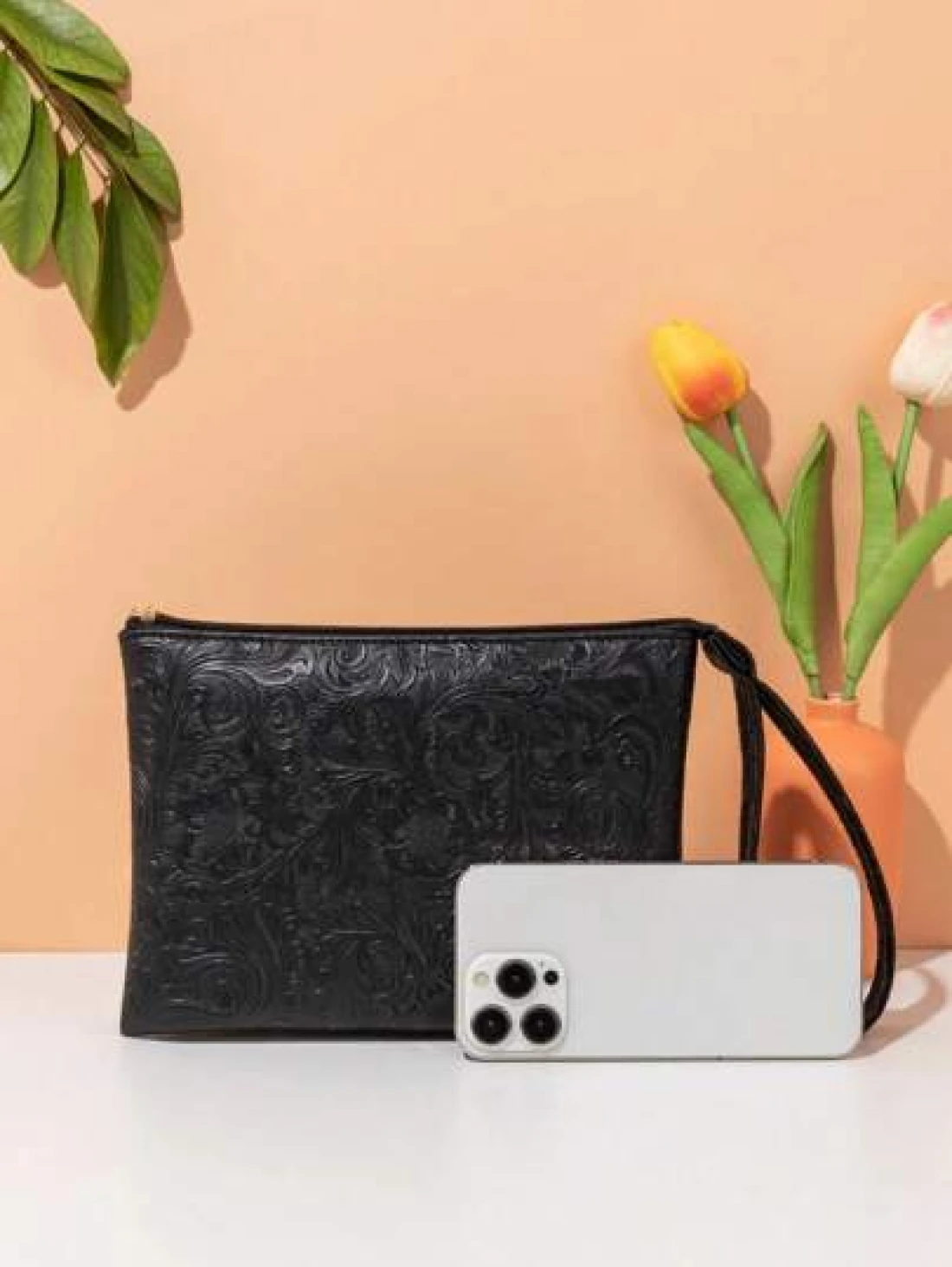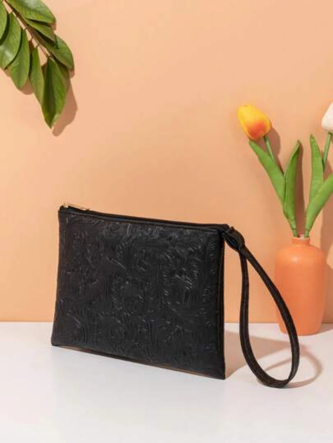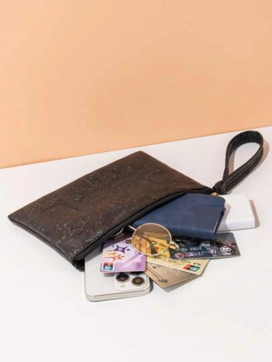 حقيبة يد مزخرفة بنقشة جلدية، حقيبة معصم بسيطة، حامل بطاقات سعة كبيرة، متعددة الاستخدامات للاستخدام اليومي والسفر