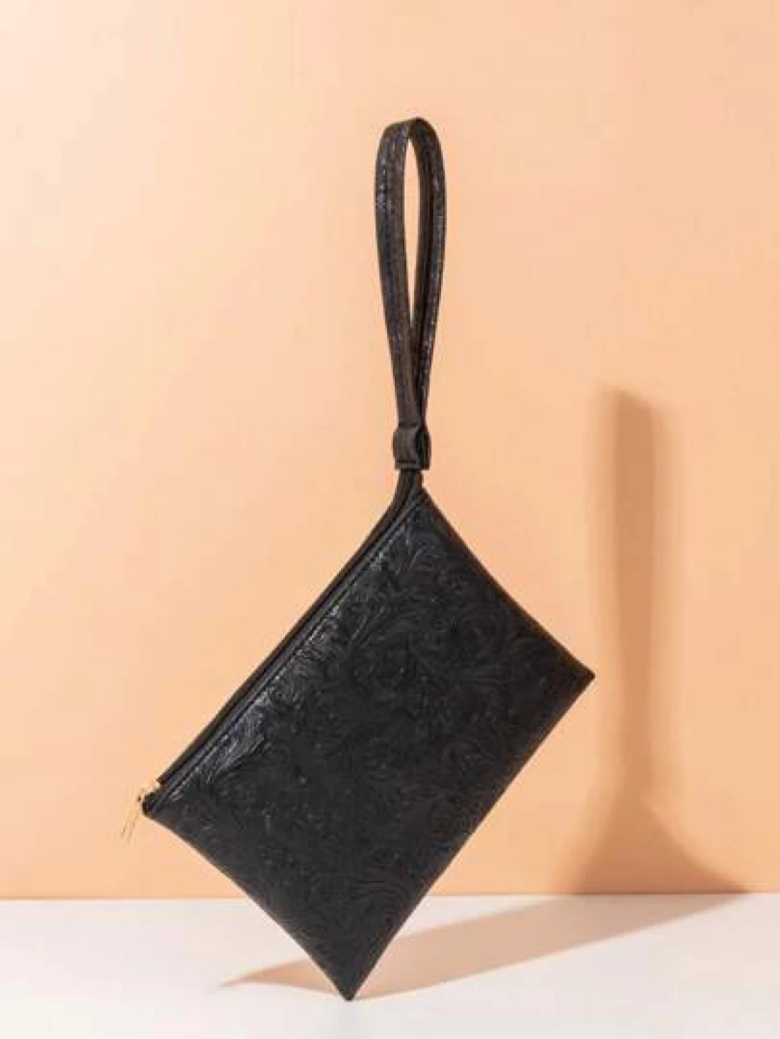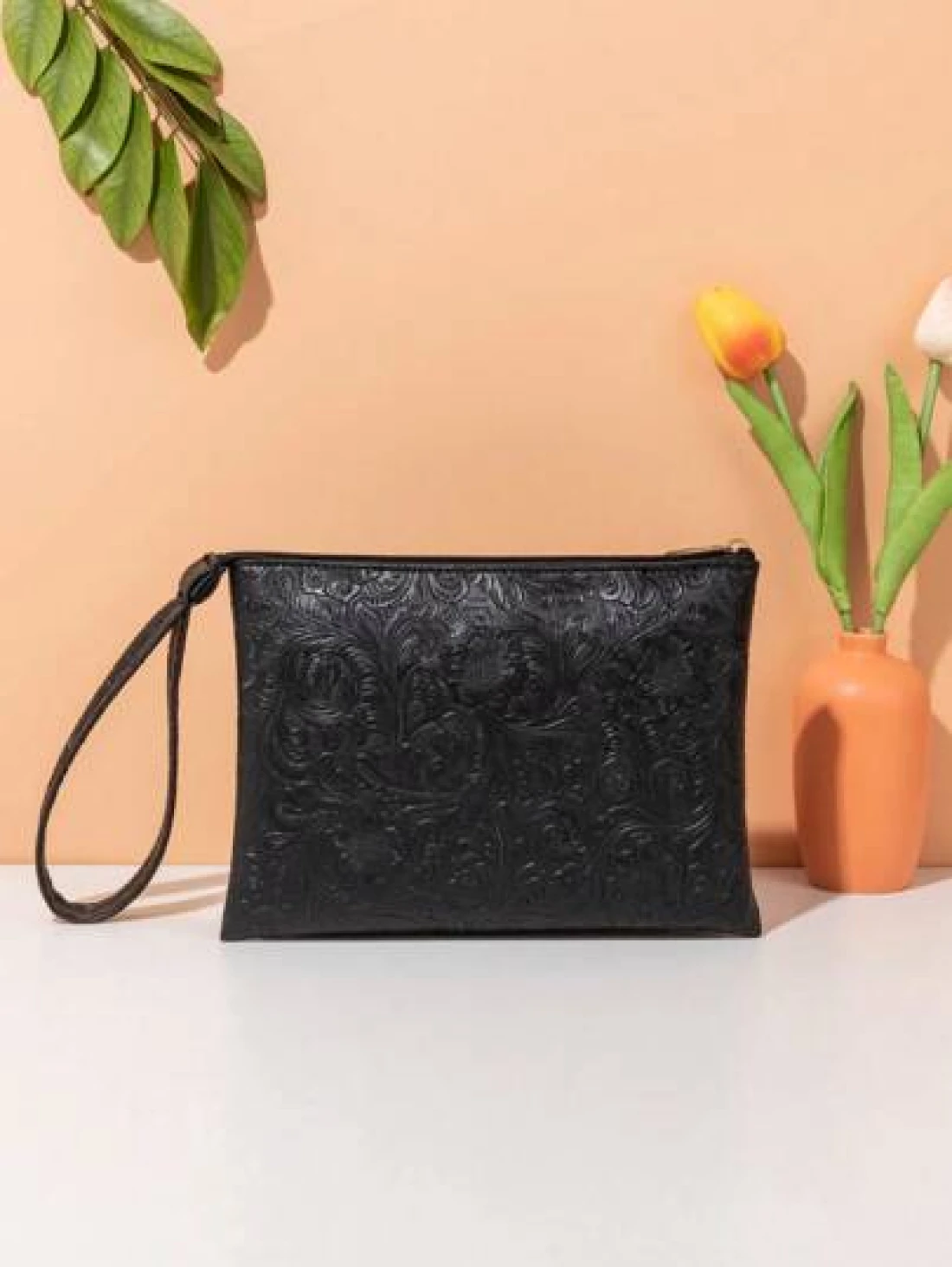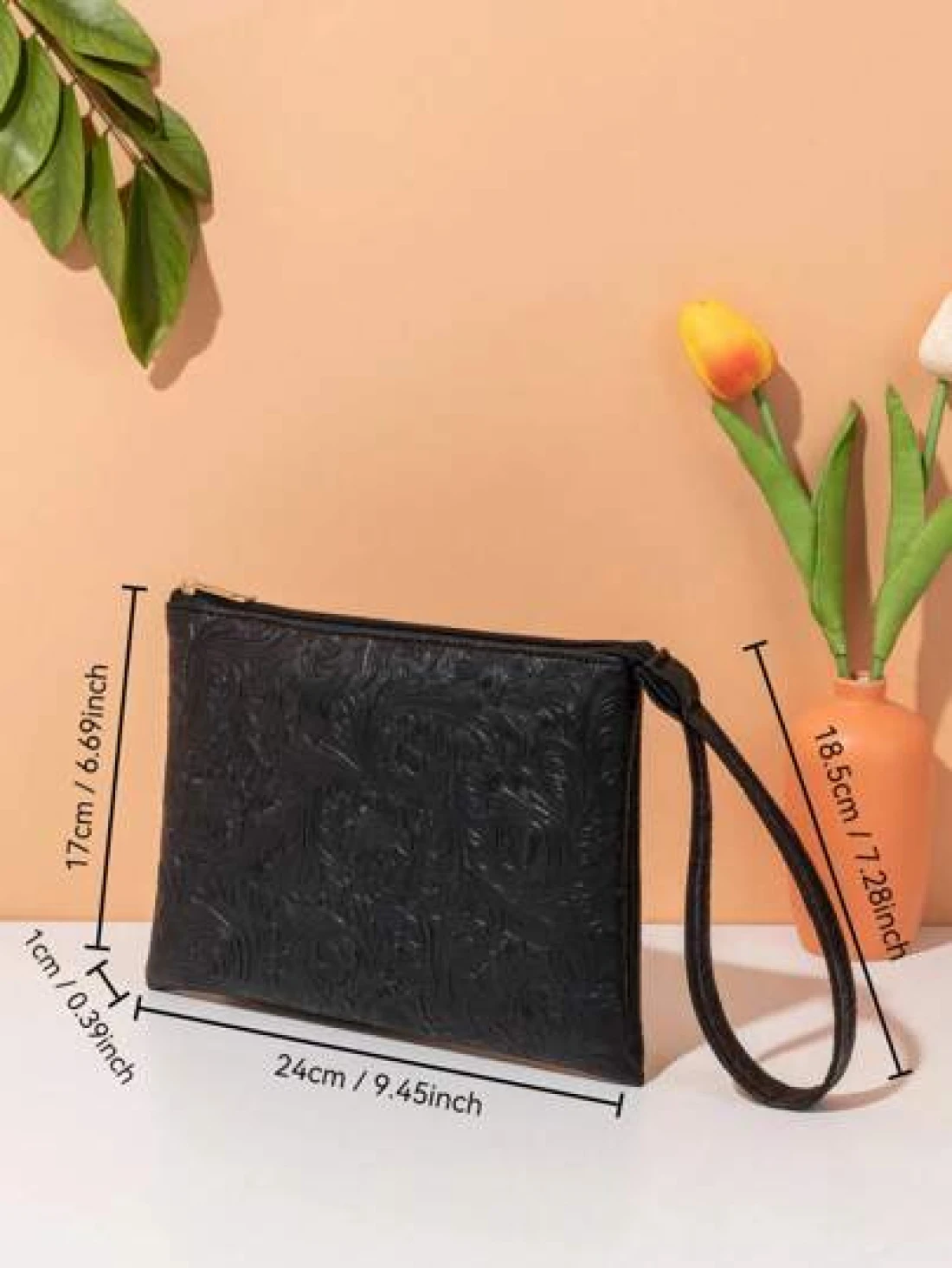 حقيبة يد مزخرفة بنقشة جلدية، حقيبة معصم بسيطة، حامل بطاقات سعة كبيرة، متعددة الاستخدامات للاستخدام اليومي والسفر