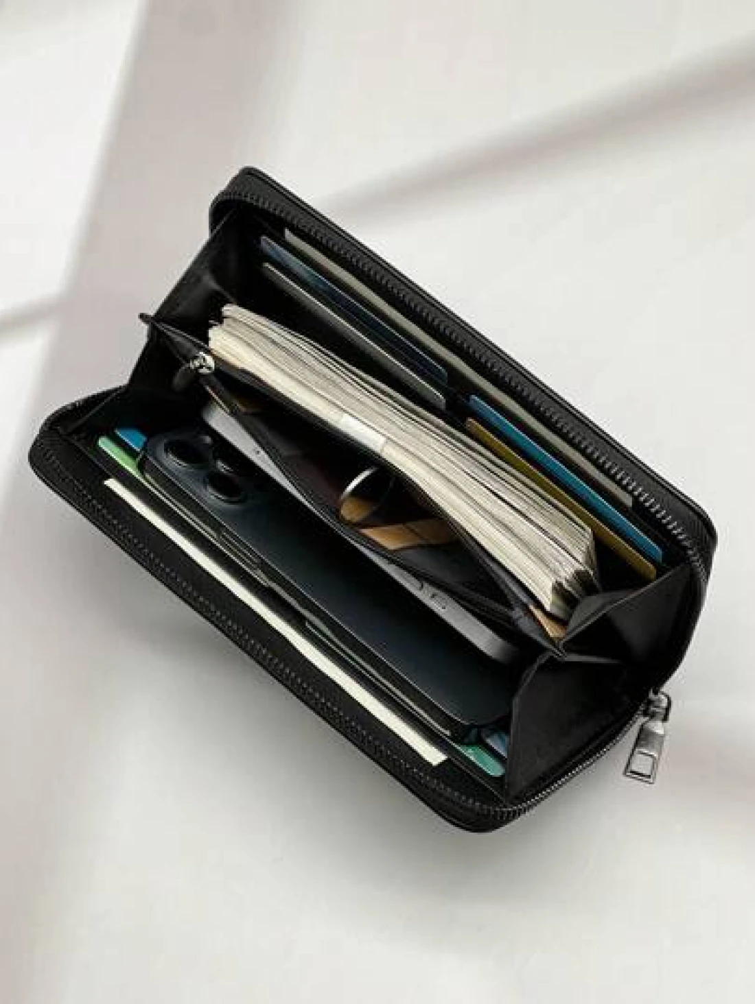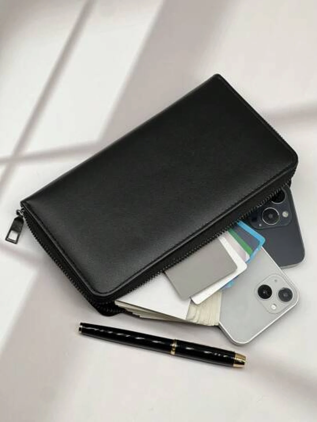 حقيبة جلد معالج طويلة بسوستة ، هدايا موضة حقائب كاجوال فاخرة في فصل الشتاء والميلاد، حقيبة يد رجالية بسوستة ،