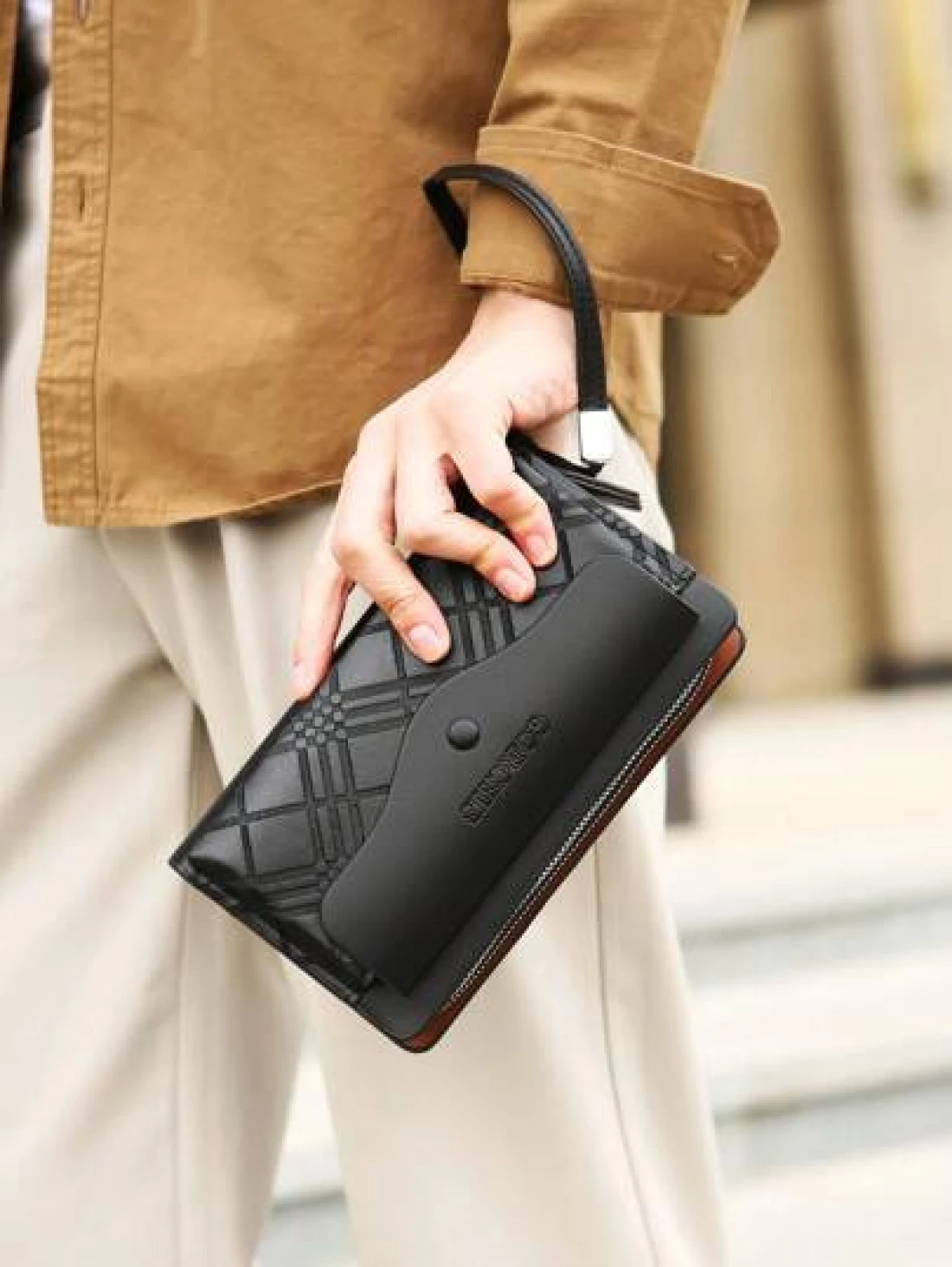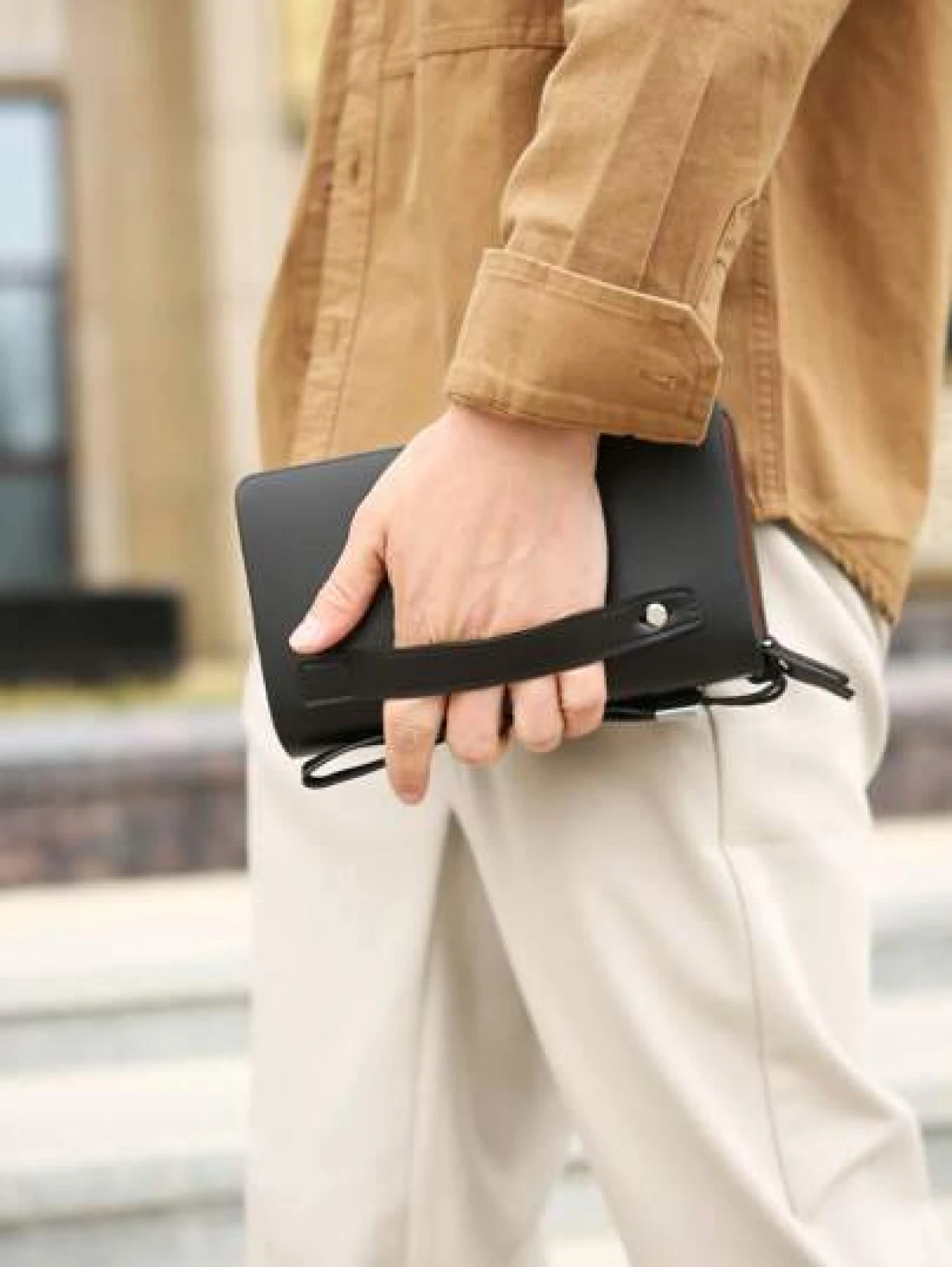 حقيبة كلاتش جلد صناعي واحدة باللون الأحادي للرجال، حقيبة معصم متعددة الأقسام مزودة بإغلاق مغناطيسي وسحاب، متعددة الاستخدامات للسفر والتسوق والمكتب والمدرسة والعمل والعمل والتنقل والأنشطة الخارجية والرحلات