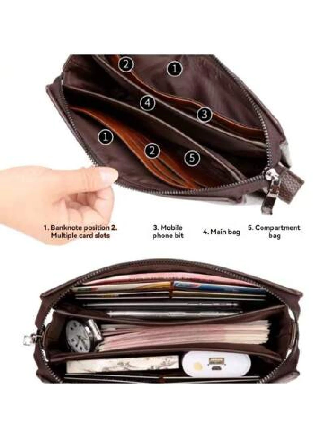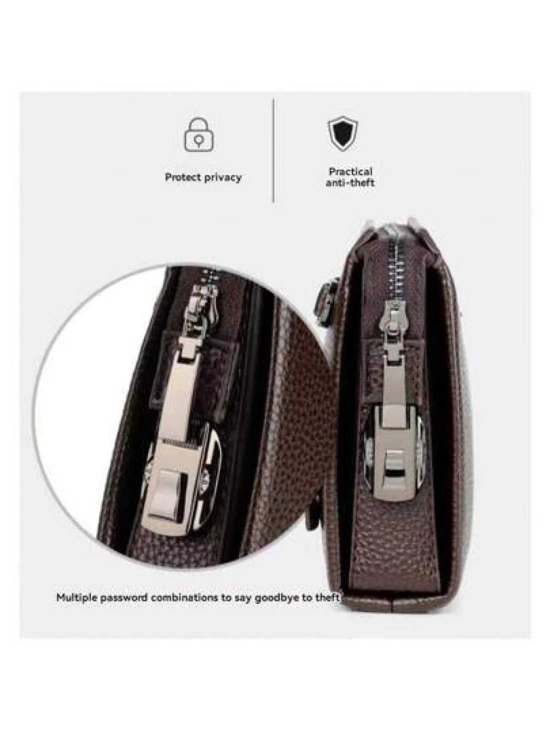 Leather Men Clutch Bag Wallet Business Men Password Lock Wallet Theft Proof Handbag With Cell Phone Holder Travel Bag Coffee Color School Bag Commute Freshmen High School College Dorm Practical Gifts