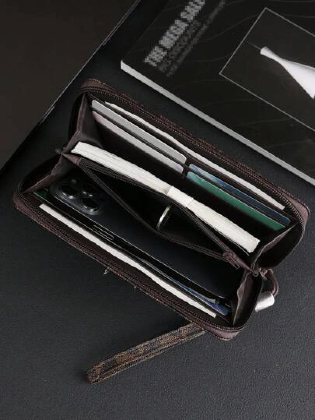 HOVI'S حقيبة اليد الرجالية الأنيقة والبسيطة، كبيرة السعة، متعددة فتحات البطاقات، حقيبة رسغ محمولة، هدية رائعة ل