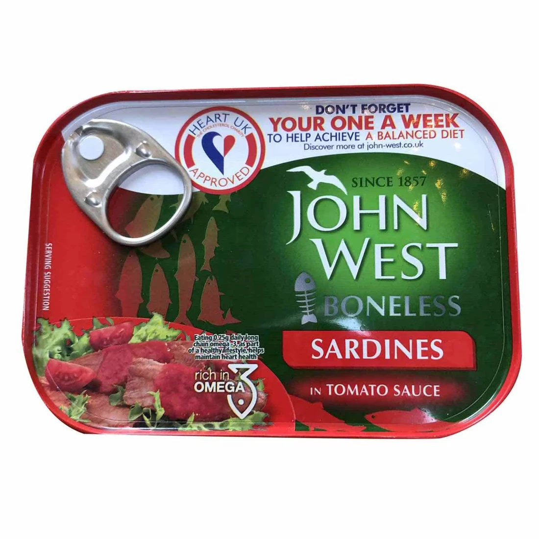 جون ويست سردين بدون عظم في صلصة الطماطم 95 غرام