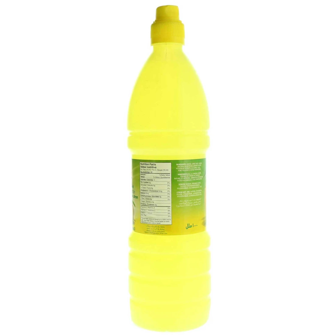 ingredients : ماء، حامض الستريك، سكر، نكهة الليمون الطبيعية والإصطناعية، سوربات البوتاسيوم، حمض الأسكوربيك، Fd وC أصفر N5 (E102-تارترازين)