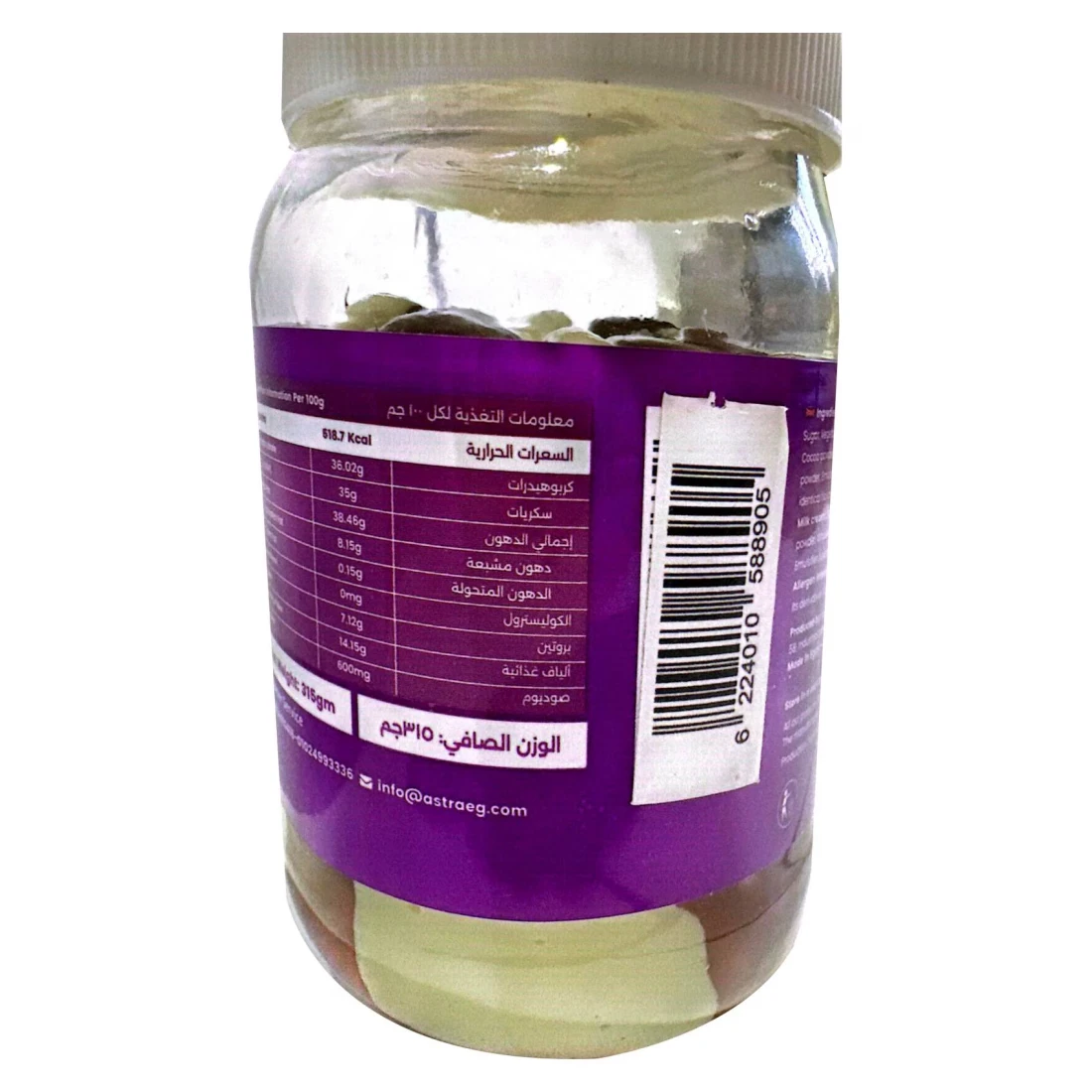 ingredients : سكر ، زيت نباتي ، بندق 8٪ ، مسحوق مصل اللبن ، مسحوق كاكاو ، مسحوق حليب كامل الدسم ، مسحوق حليب منزوع الدسم ، مستحلب (ليسيثين الصويا E3221) ، ملح ، نكهات طبيعية متطابقة (بندق وفانيلين). كريمة الحليب: سكر ، زيت نباتي ، مسحوق حليب منزوع الدسم ، مسحوق حليب كامل الدسم ، مسحوق حليب مصل اللبن ، مستحلب (ليسيثين E3221) ، ملح ، نكهة فانيلين