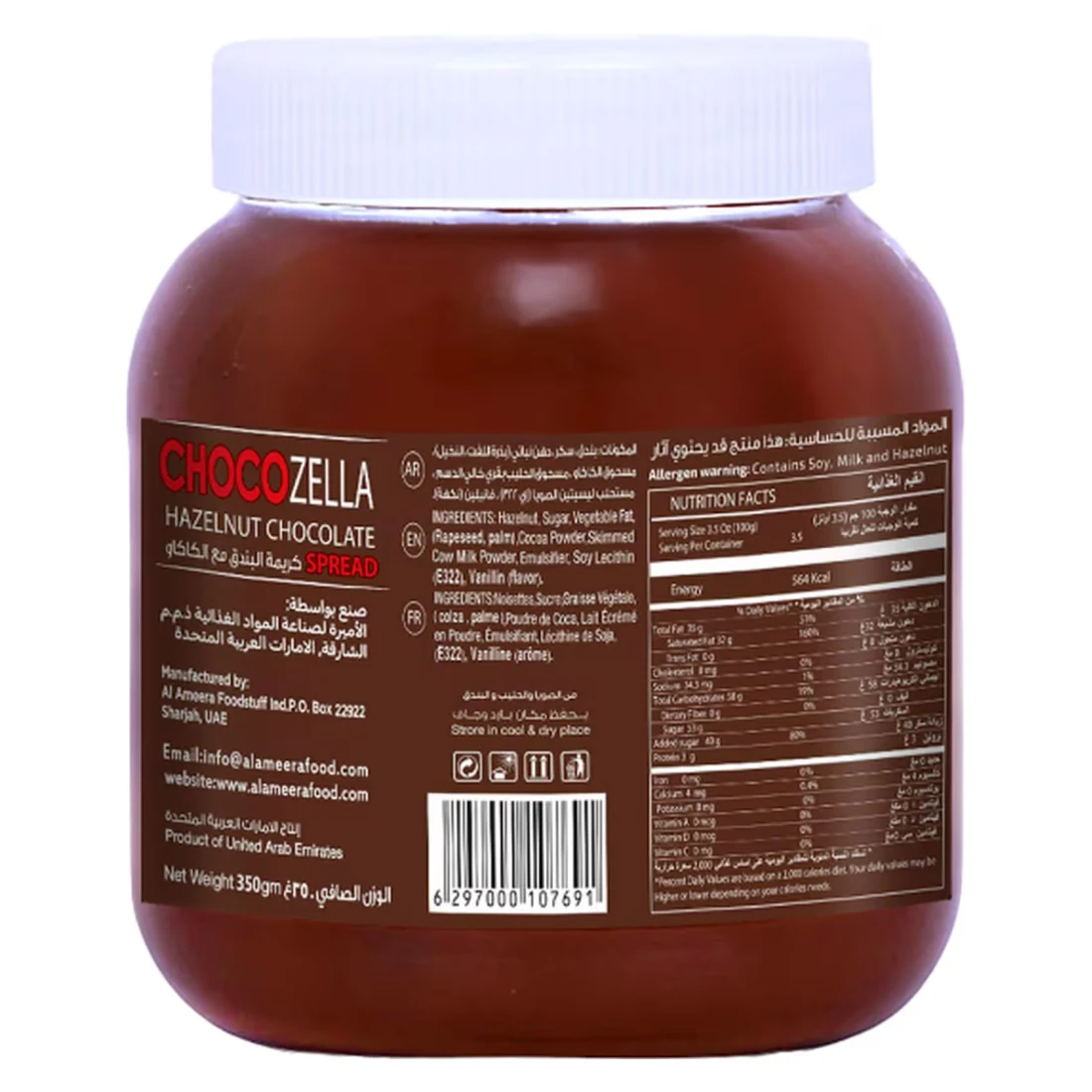 شوكولاتة البندق من تشوكوزيلا 350 غرام هي شوكولاته لذيذة وكريمية مصنوعة من البندق الحقيقي والشوكولاتة الغنية. مثالية لدهنها على الخبز المحمص أو الفطائر أو استخدامها كغموس للفاكهة.