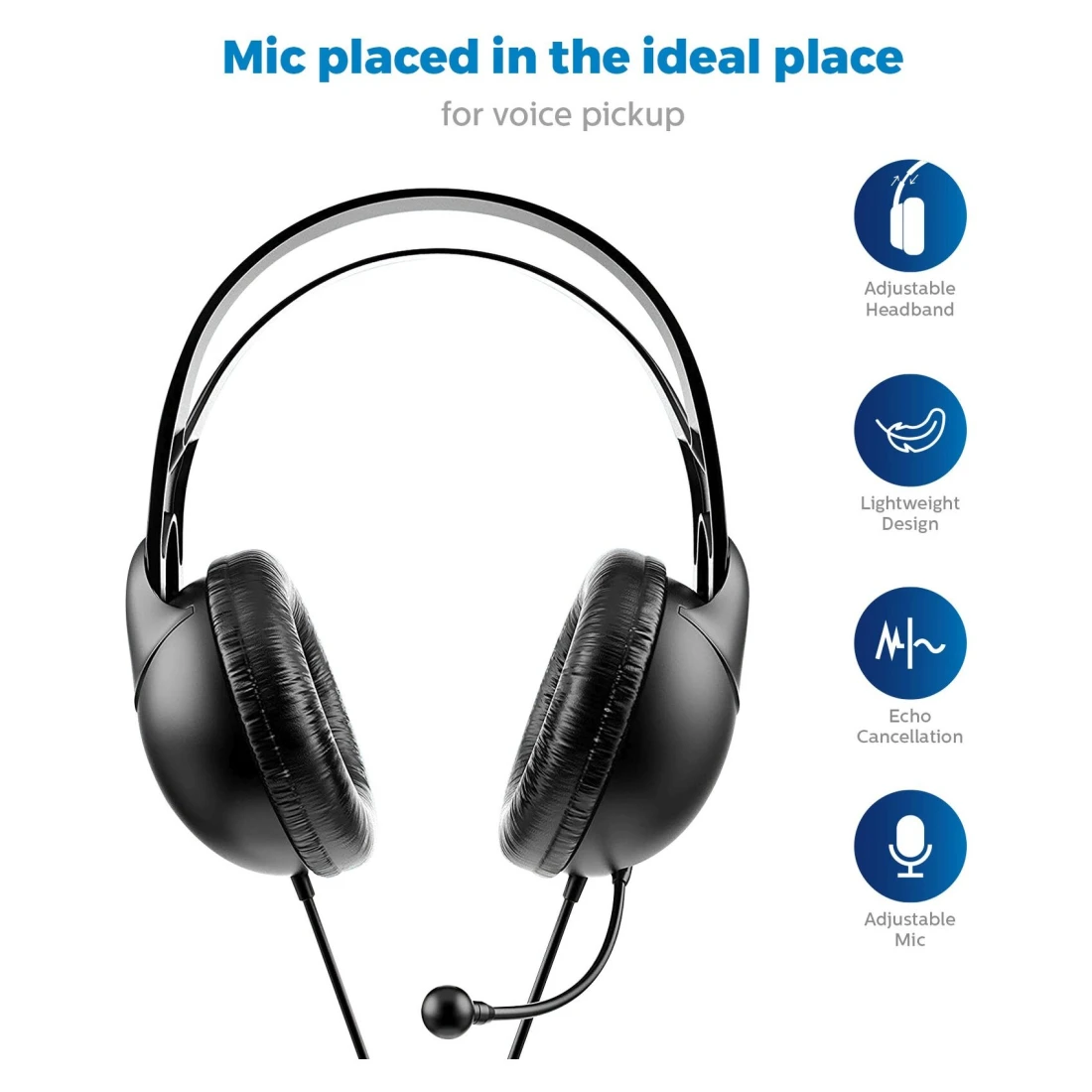 فيليبس إيزي تشات سماعات رأس سلكية فوق الأذن SHM1900 - أسود