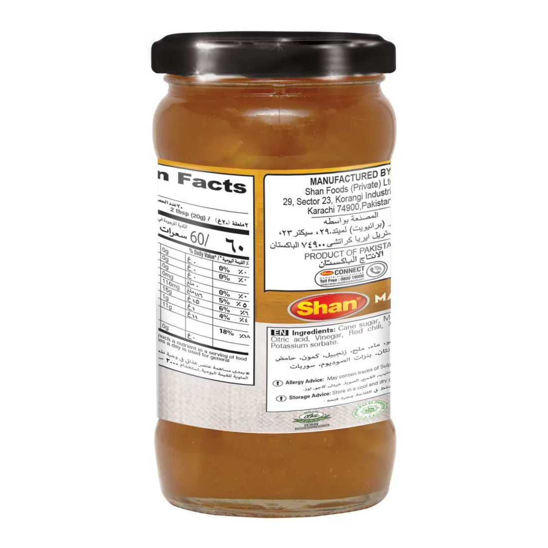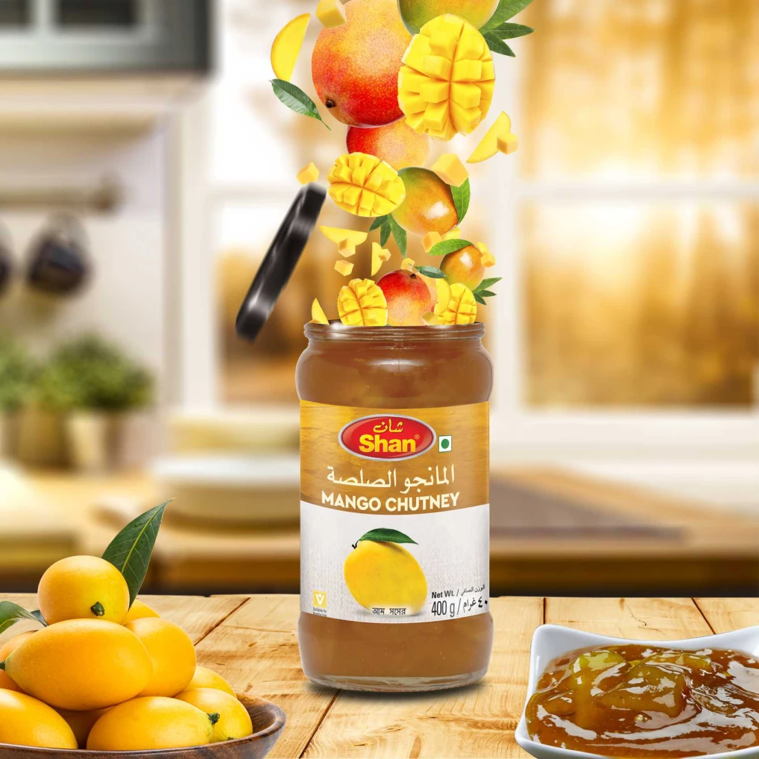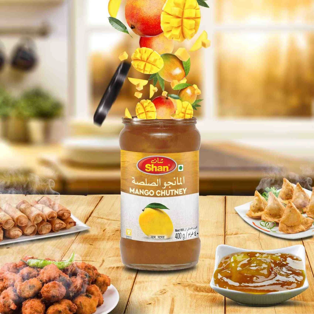 تشاتني المانغو من شان هو توابل لذيذة ولاذعة، مصنوعة من المانغو الناضجة والعصيرية ومزيج من التوابل العطرية. مثالية للتقديم مع الأطباق الهندية والآسيوية، مما يضفي نكهة وحلاوة مميزة على كل لقمة. هذه الصلصة مصنوعة من مكونات عالية الجودة وخالية من الألوان والنكهات والمواد الحافظة الاصطناعية. يمكن استخدامها كصلصة أو طبق جانبي لإضفاء نكهة مميزة على أطباقك المفضلة. تحتوي كل عبوة على 400 غرام من تشاتني المانغو شان، مما يضمن لك دائمًا توابلًا غنية بالنكهة ومتعددة الاستخدامات.