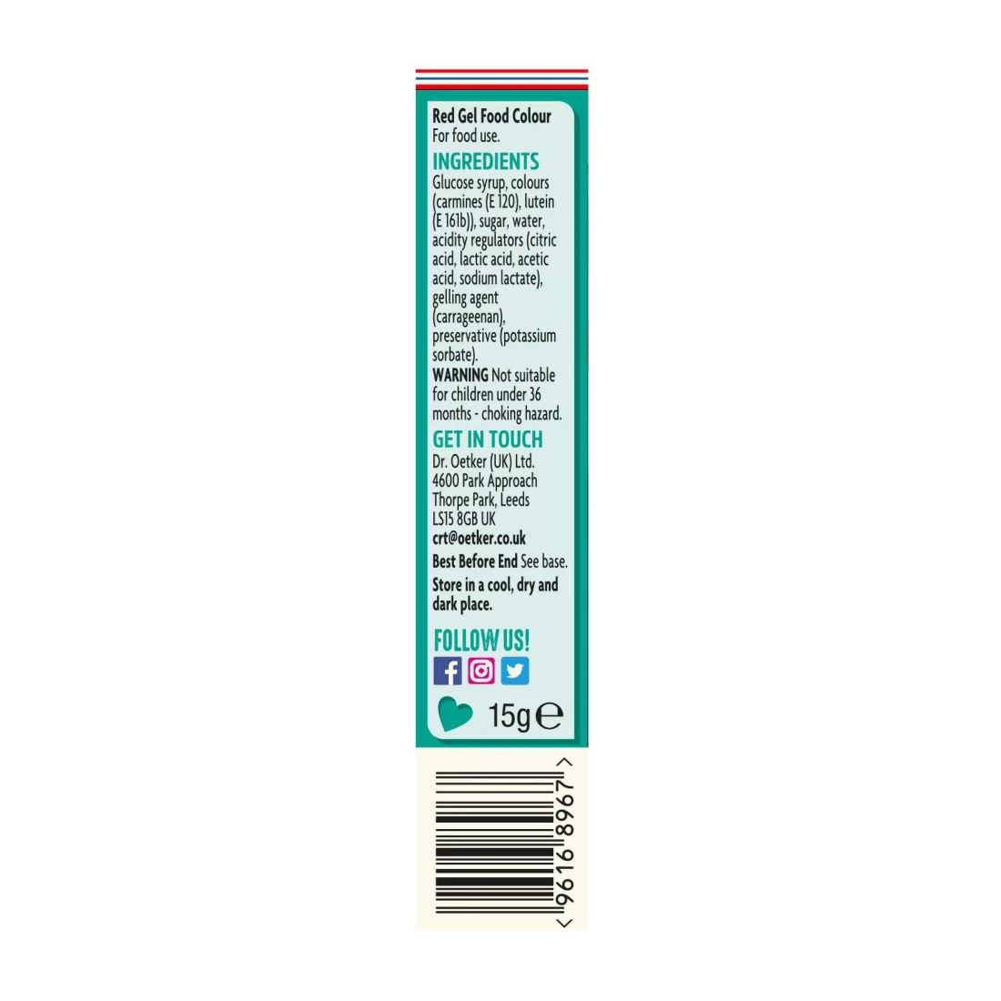 جل تلوين الطعام الأحمر القوي من د. أوتكر هو جل تلوين عالي الجودة مثالي لإضافة لون أحمر زاهي إلى المخبوزات والحلويات. بفضل تركيبته القوية، يوفر هذا الجل لونًا مكثفًا وزاهيًا باستخدام كمية صغيرة فقط، مما يساعدك على تحقيق الظل المطلوب دون تغيير قوام وصفتك. هذا الجل متعدد الاستخدامات ويمكن استخدامه في التغطيات والفوندان والحلويات وغيرها من الإبداعات الطهوية. التغليف على شكل أنبوب ضغط يسهل استخدامه بدقة وبدون فوضى. عزز جمالية أطباقك بهذا الجل الأحمر القوي من د. أوتكر.