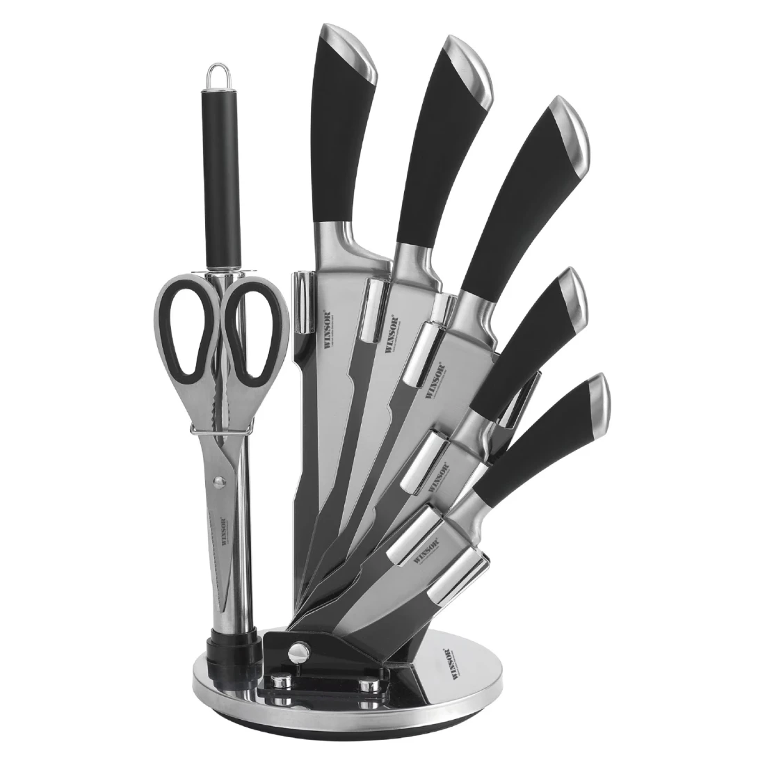 وينسور طقم سكين من الفولاذ المقاوم للصدأ مع حامل - أسود وفضي