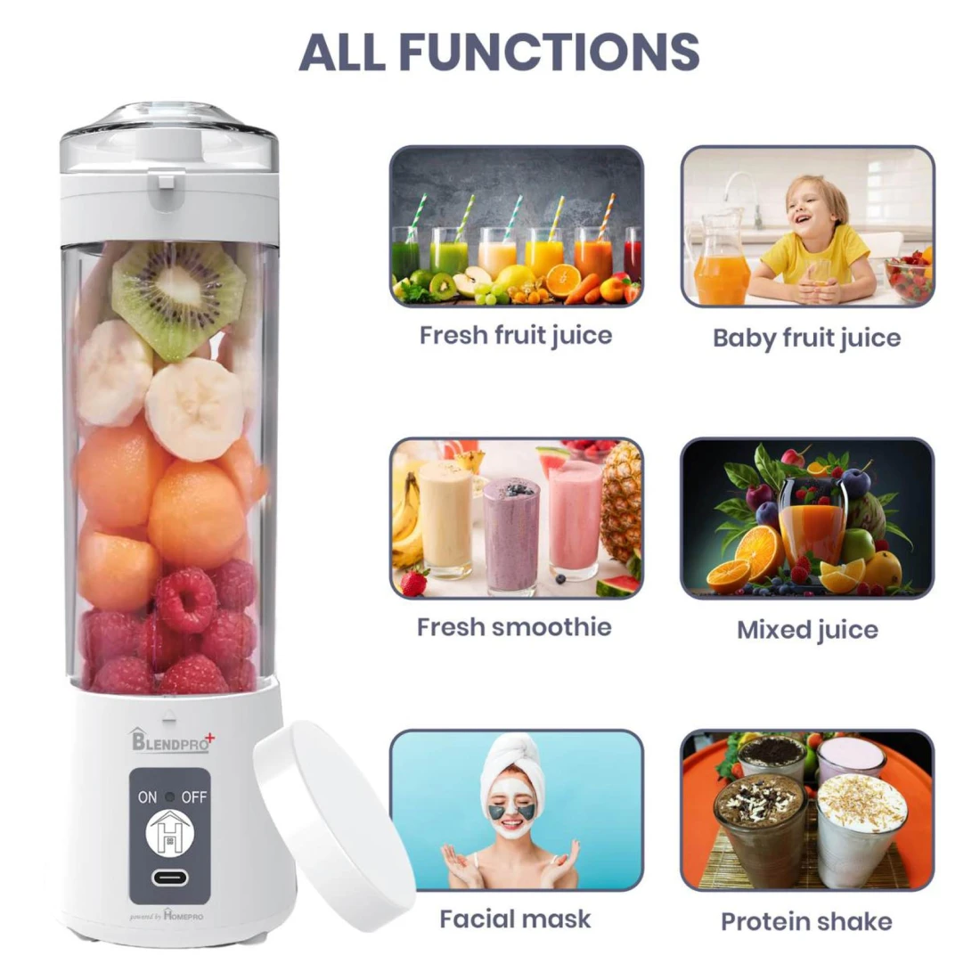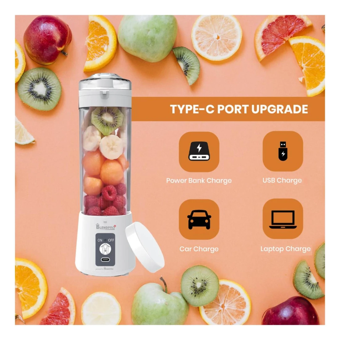 هوم برو بلاند برو بلس خلاط عصير كهربائي بمنفذ يو إس بي-سي أبيض 400 ملل
